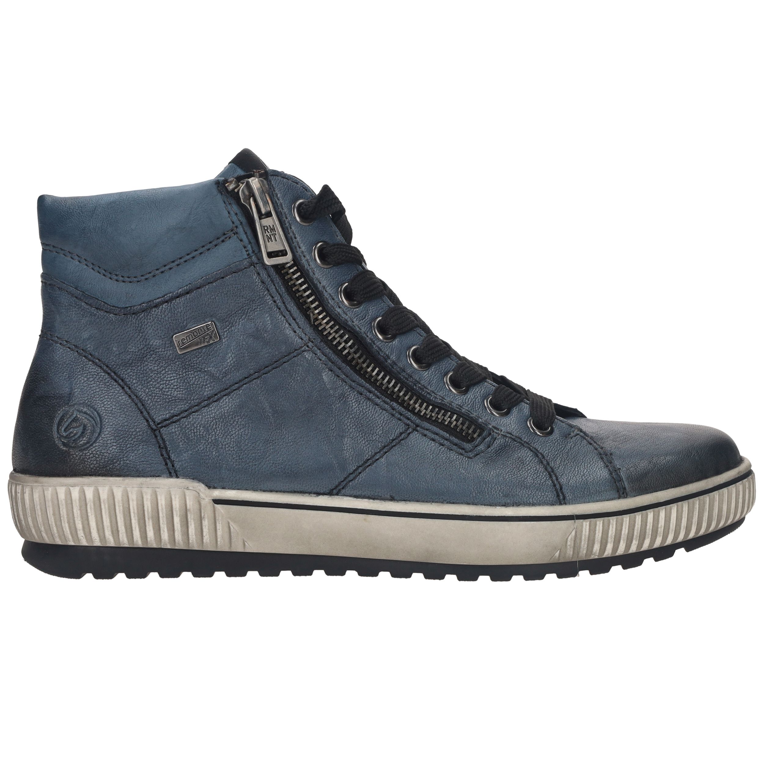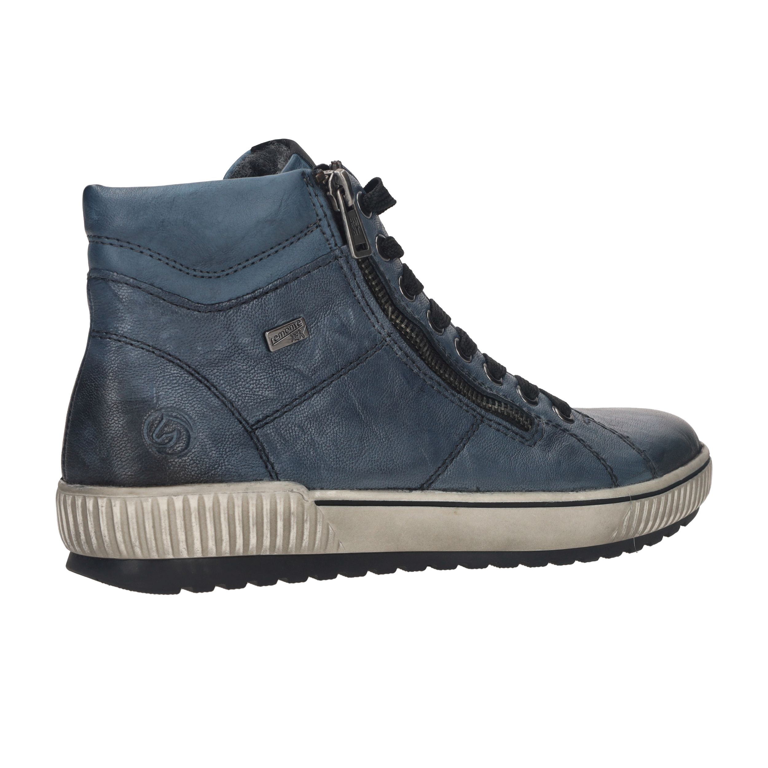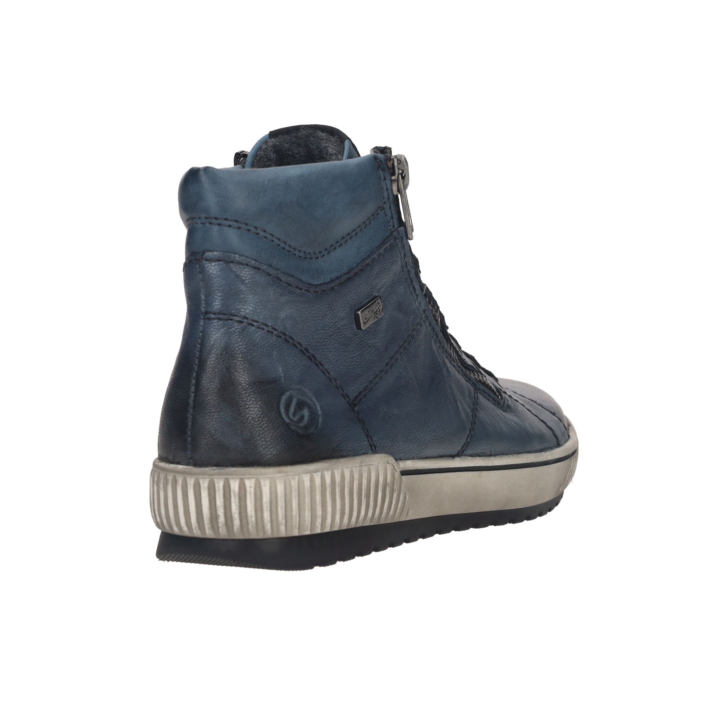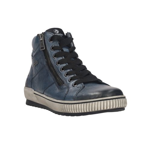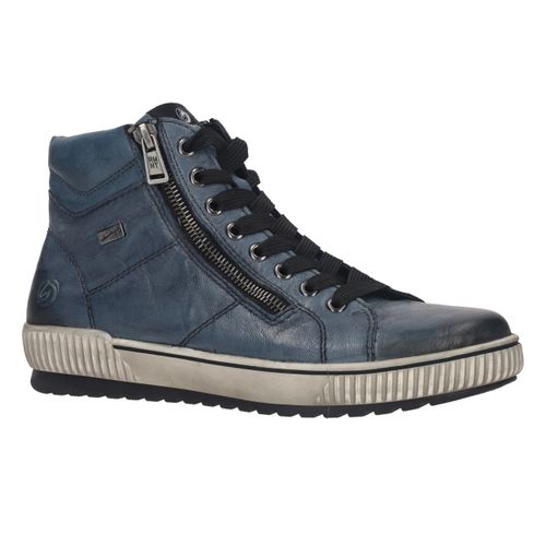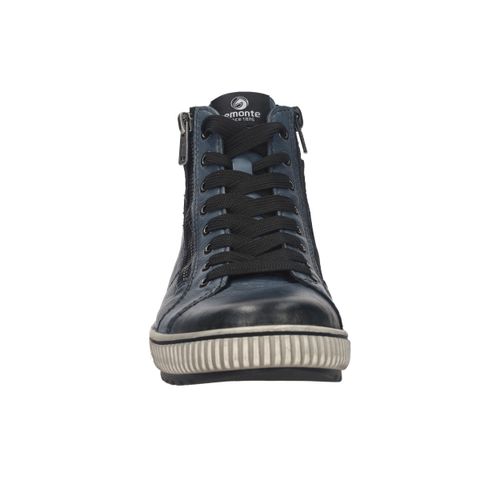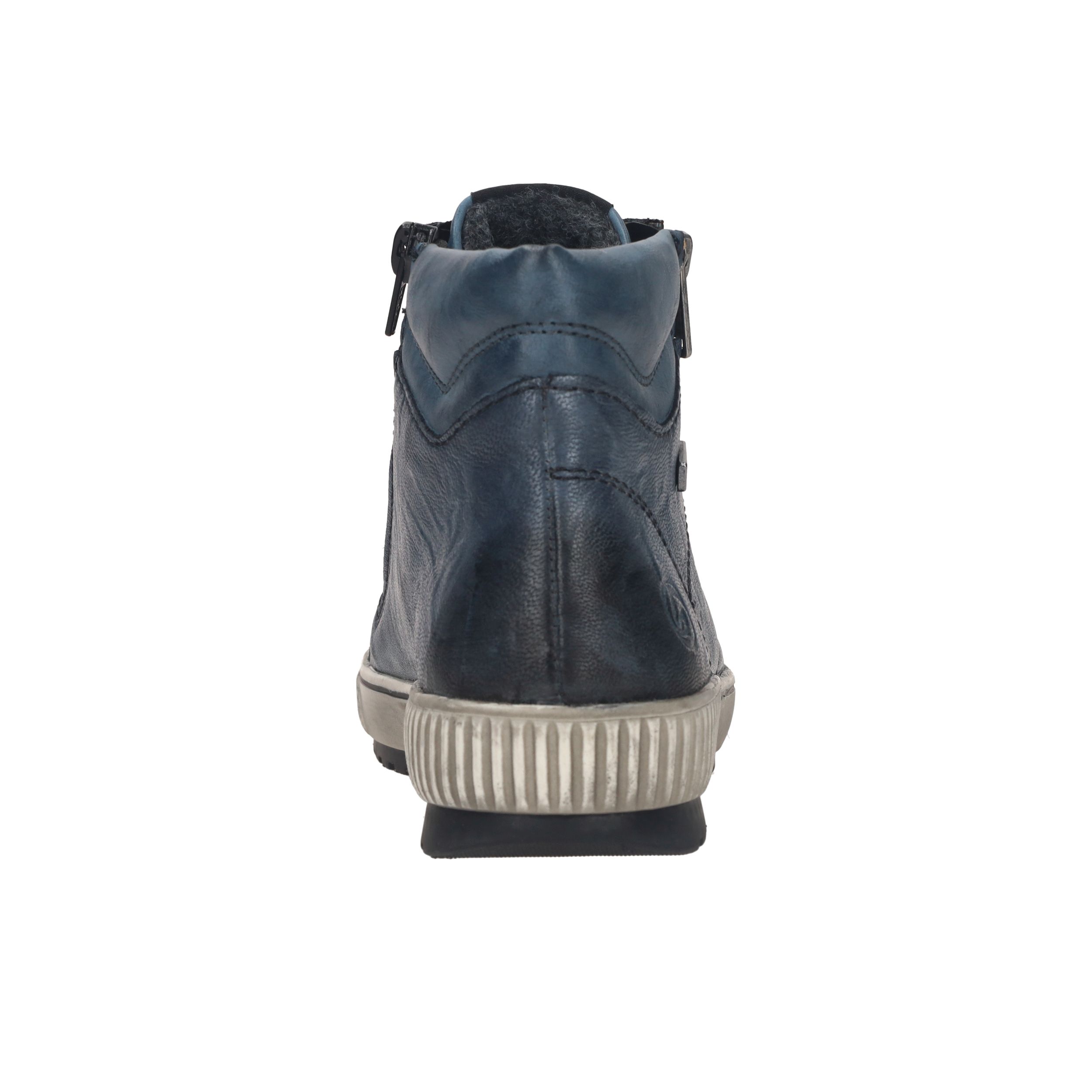 Deze donkerblauwe sneaker van Remonte is de perfecte mix van comfort en stijl. Het bovenwerk is gemaakt van een combinatie van leer en textiel en is voorzien van een praktische ritssluiting. De TEX-laag beschermt je voeten tegen vocht en kou, terwijl het uitneembare voetbed zorgt voor optimaal gemak.