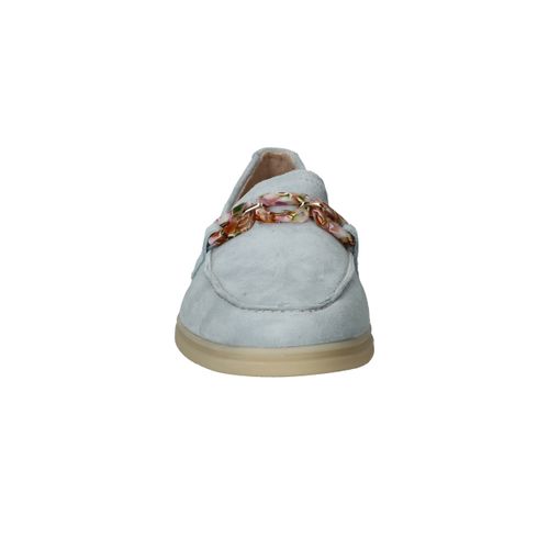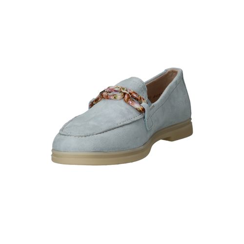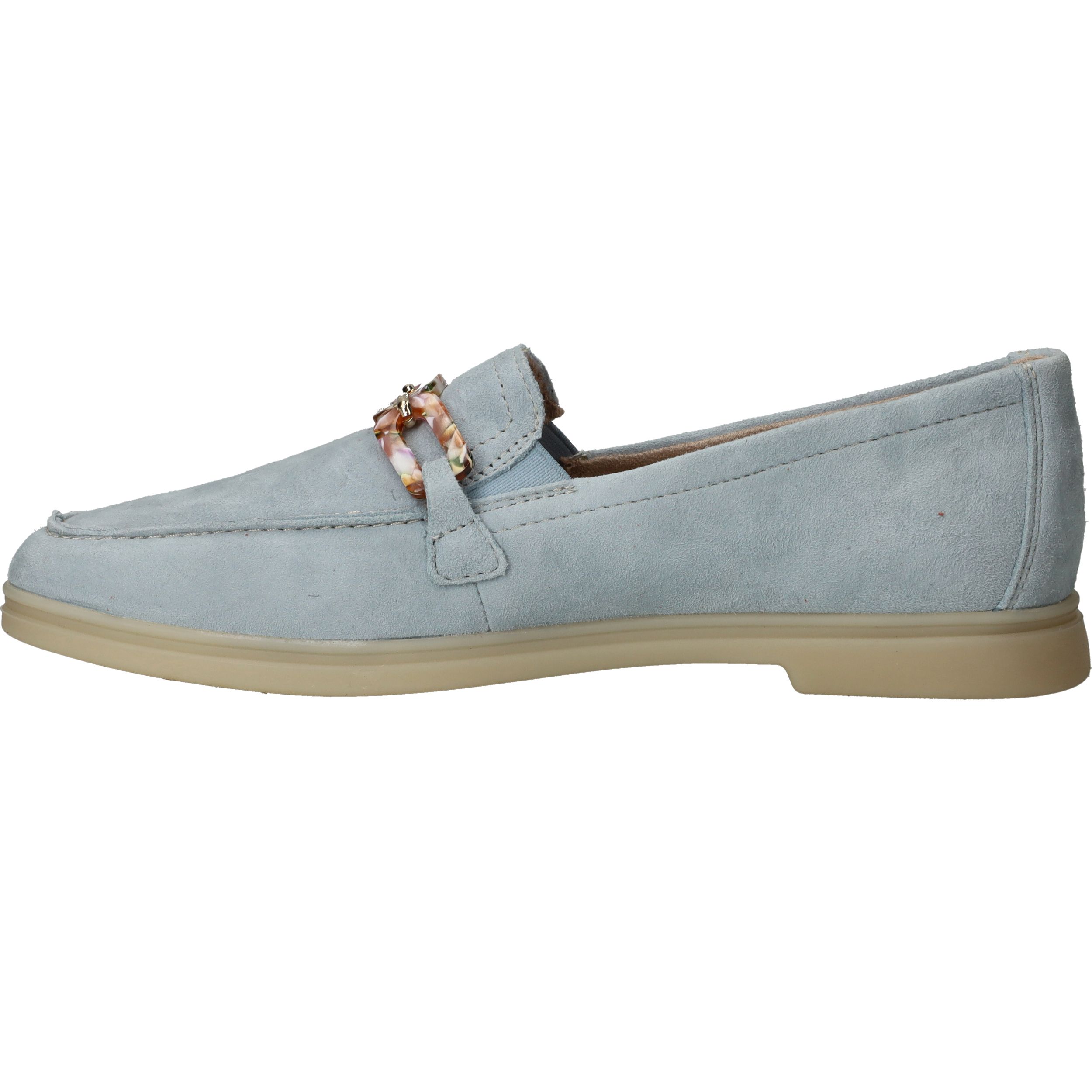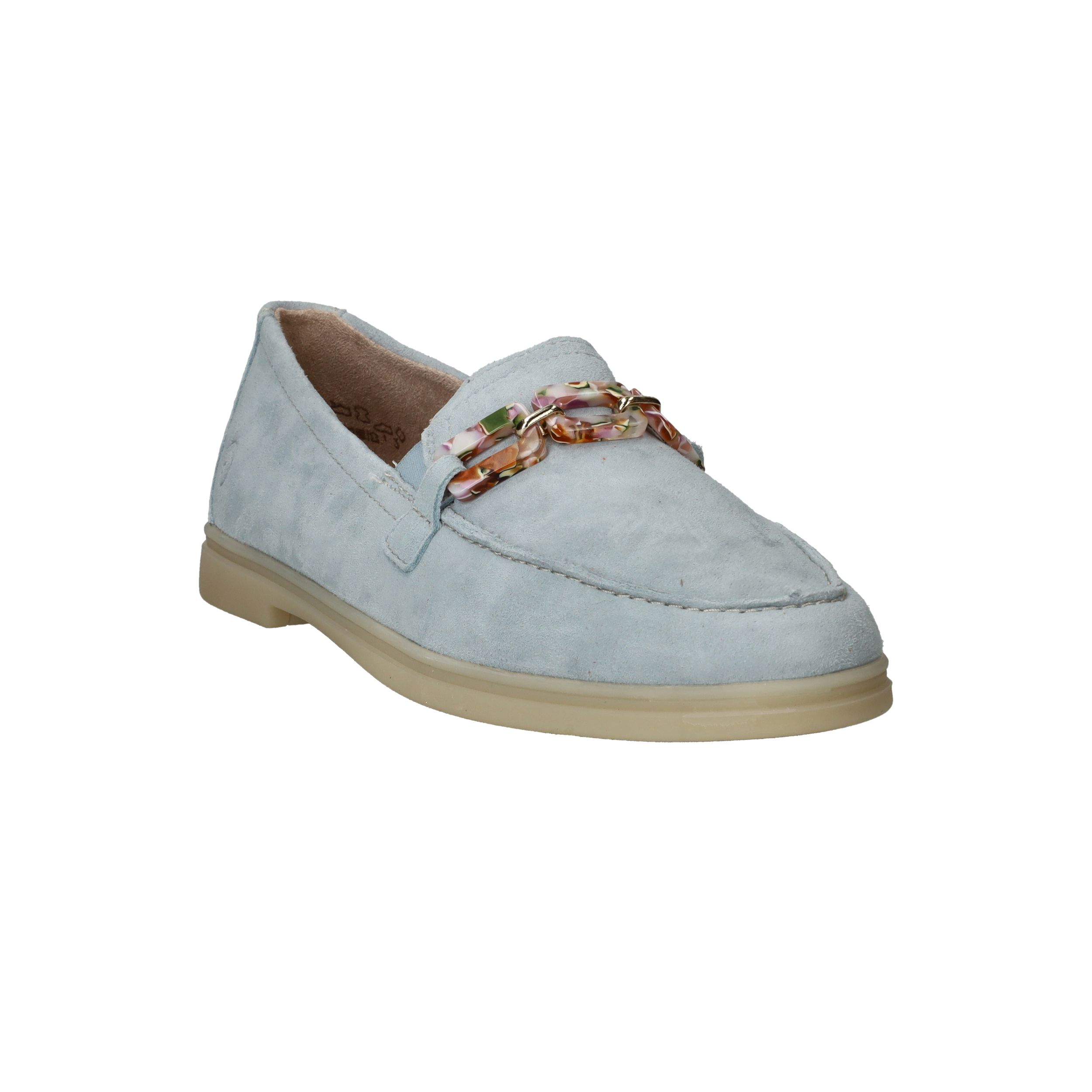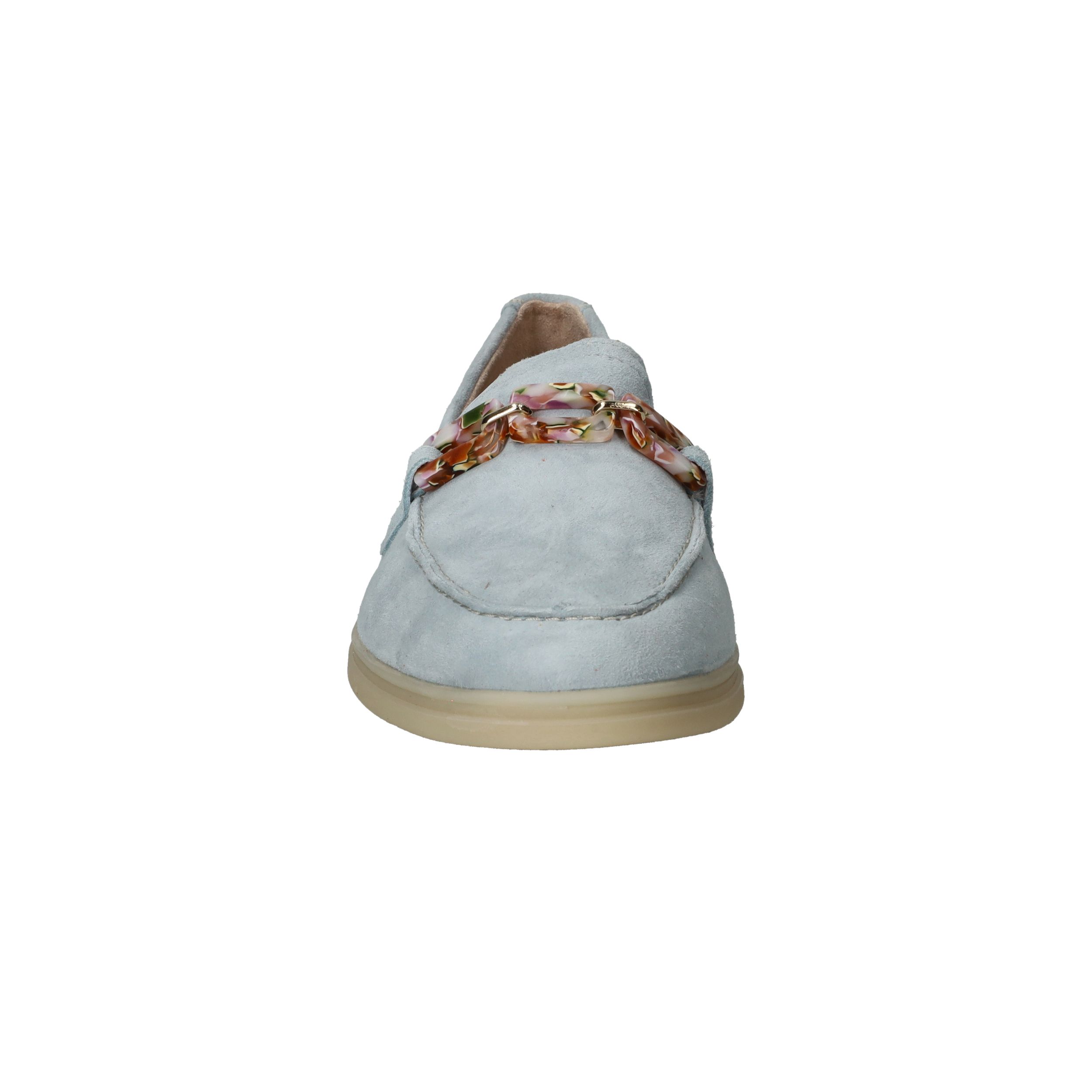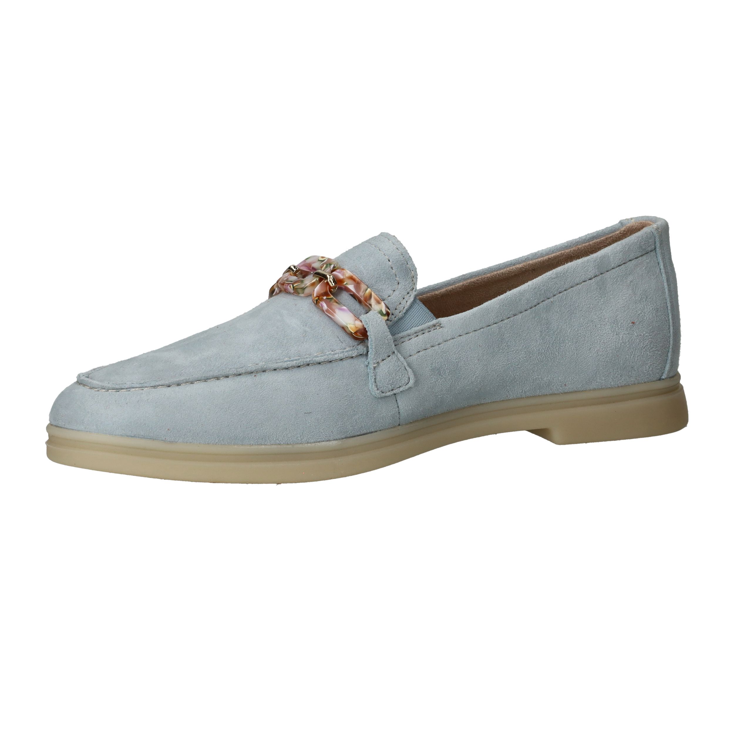 De prachtige lichtblauwe kleur van deze Remonte loafer staat goed bij een jeans! De instapper is afgewerkt met fleurige schakels.