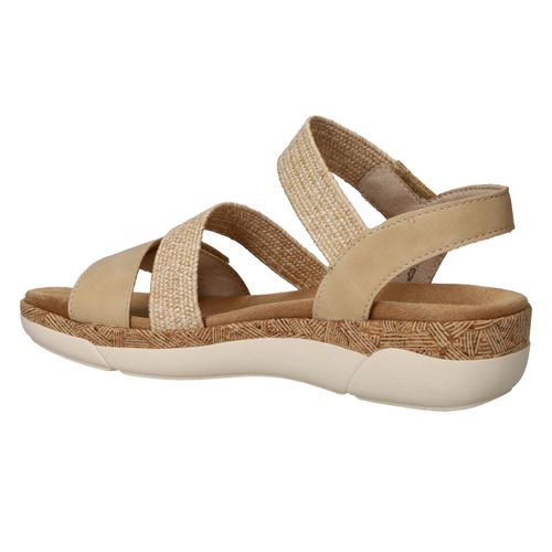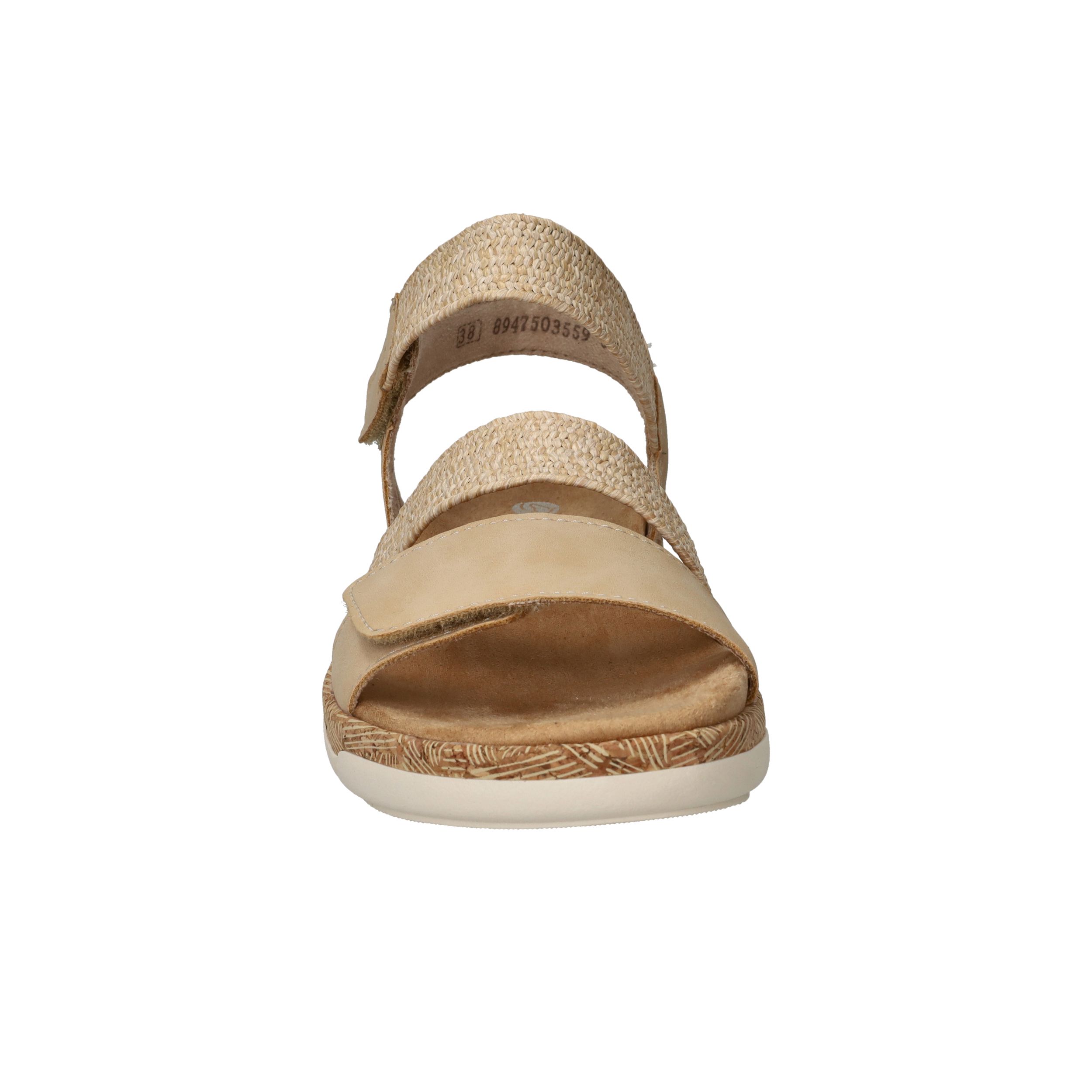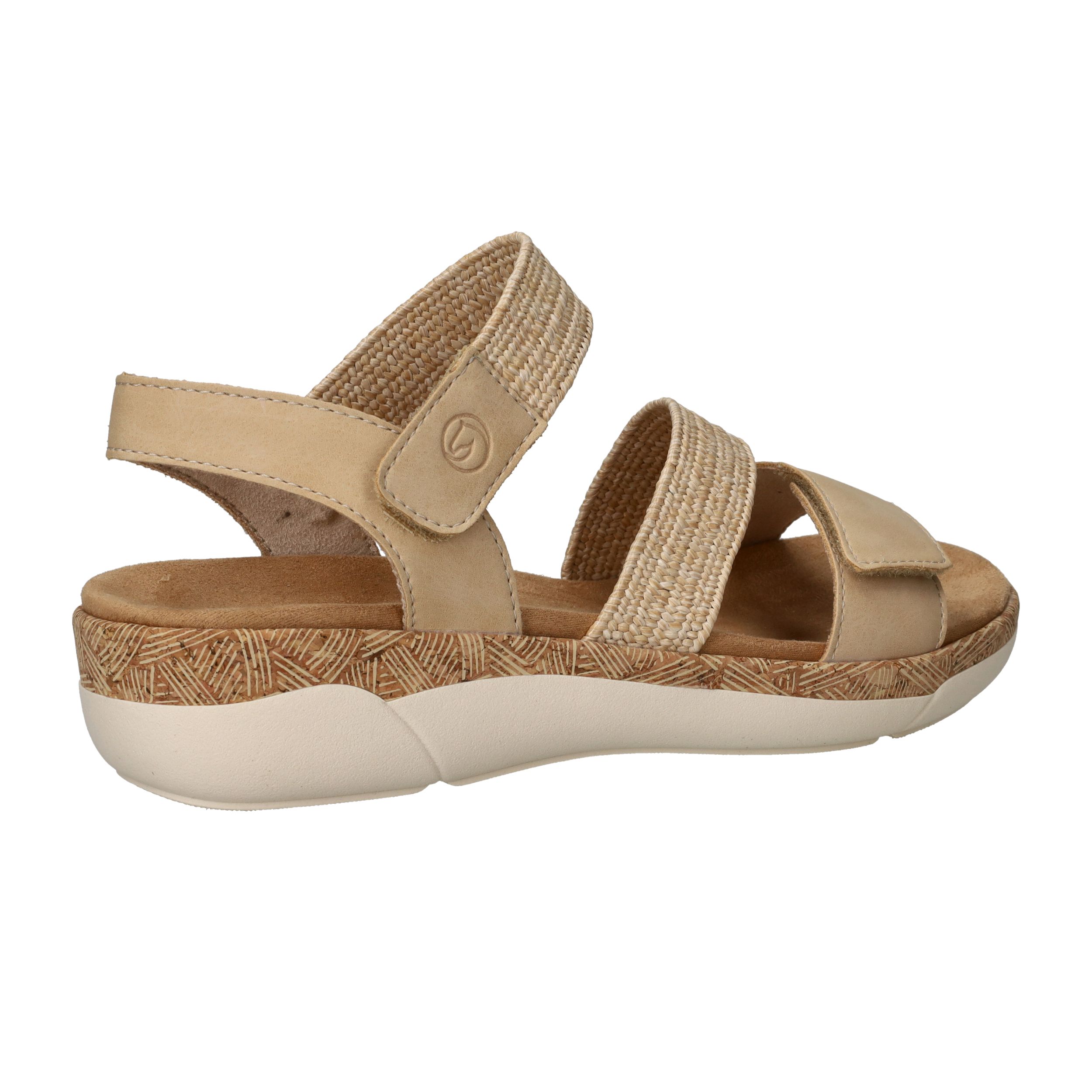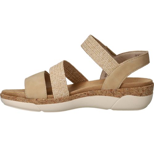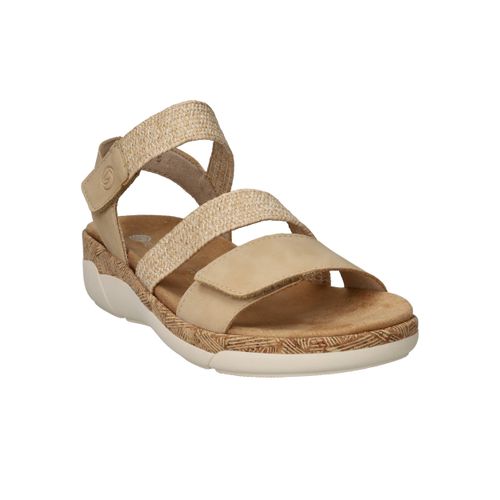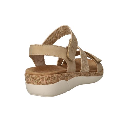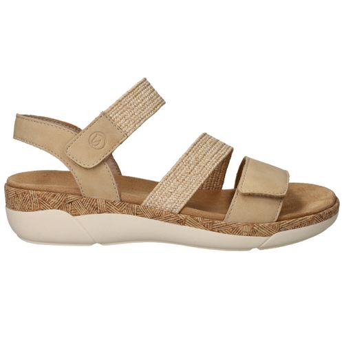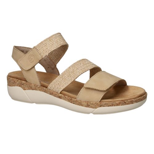 Deze lichte en comfortabele sandaal van Remonte is perfect voor zomerse dagen vol comfort en gemak. Het model is uitgevoerd in beige suède en textiel en heeft een speelse kurklook zool met witte accenten. Dankzij de Lite 'n Soft technologie geniet je van een extra zachte en flexibele zool die elke stap dempt. Ideaal voor dagelijks gebruik, vakantie of lange wandelingen!