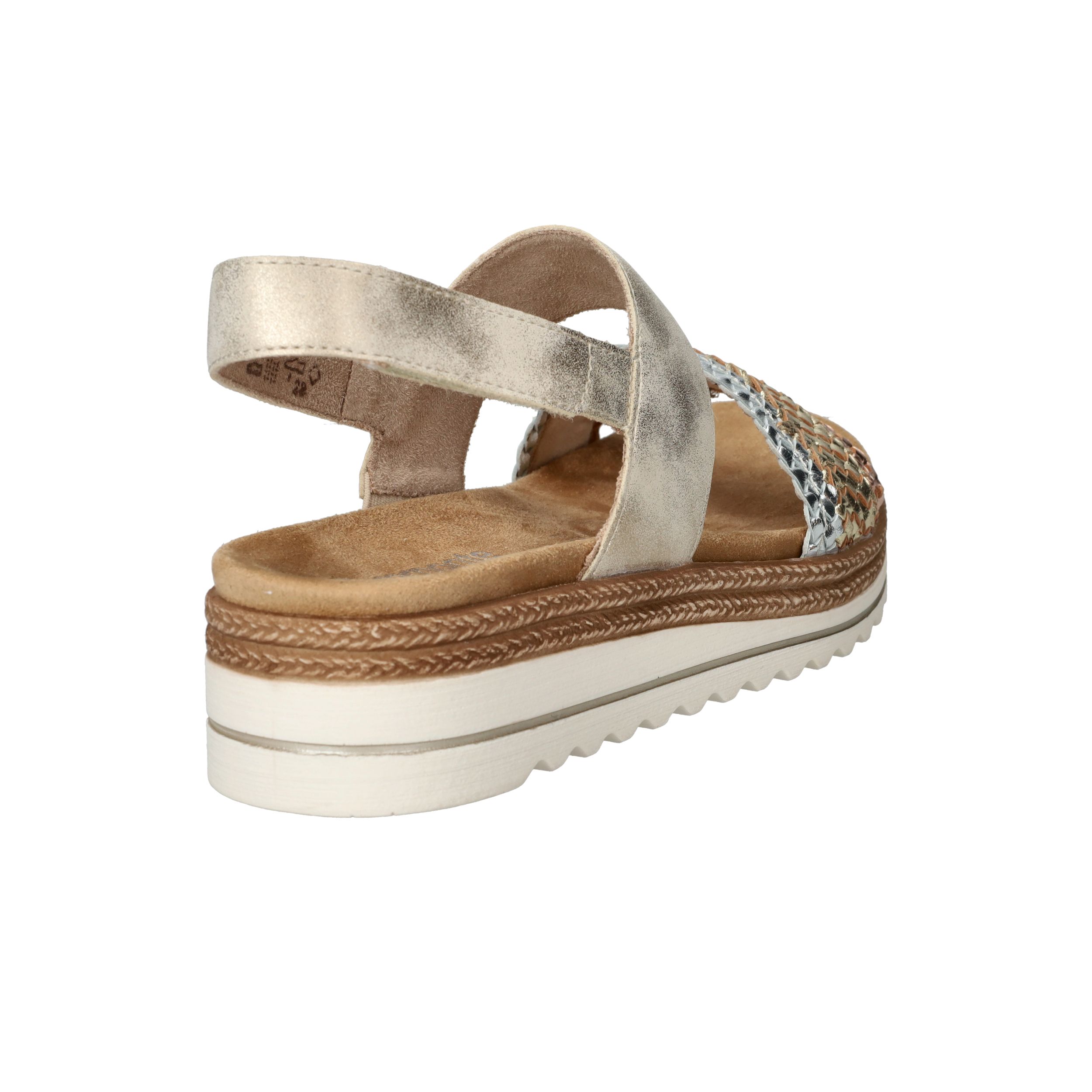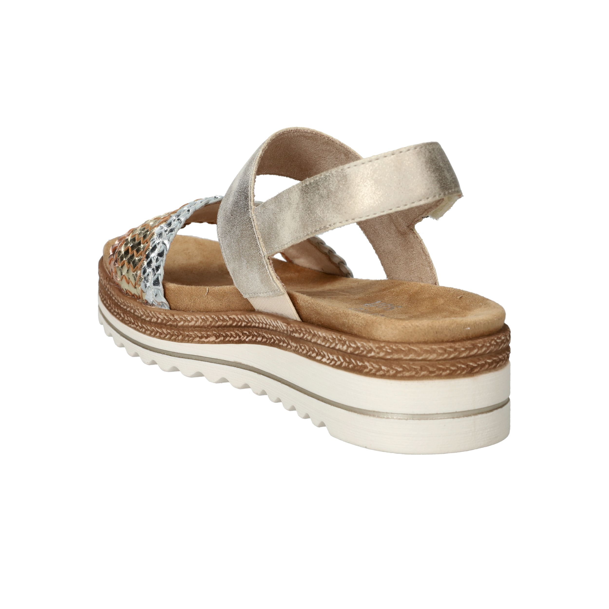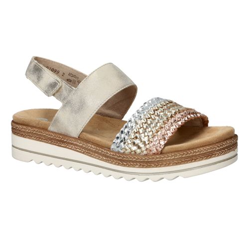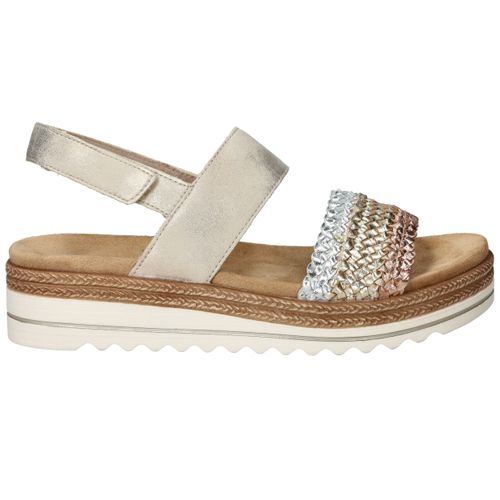 Mooie Remonte sandaal in gave metallic tinten. De damessandaal heeft een stevige witte zool.