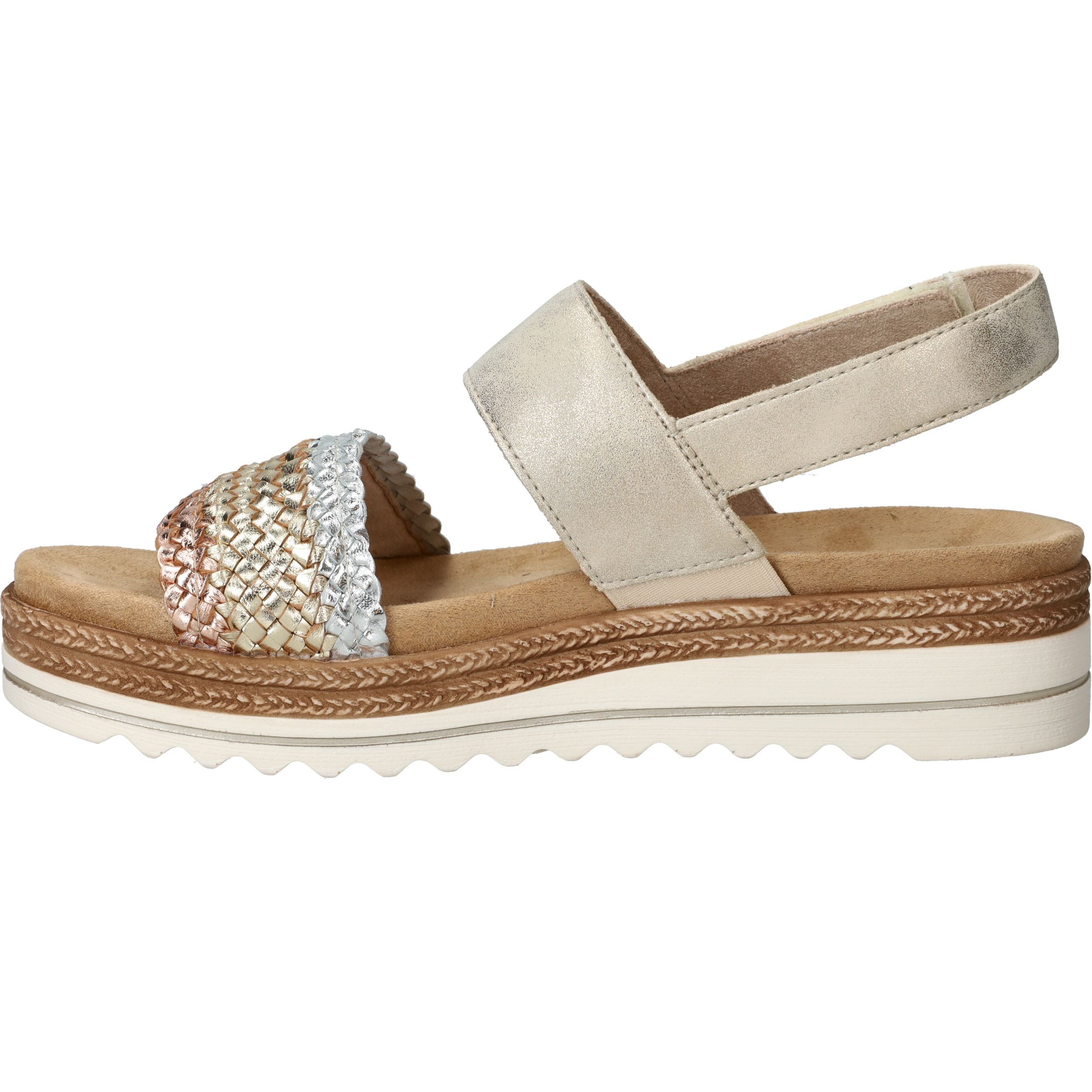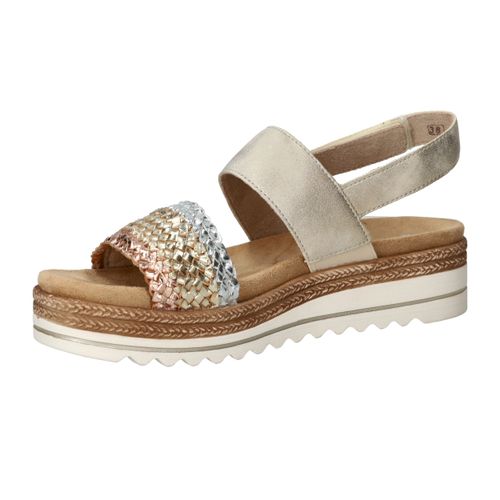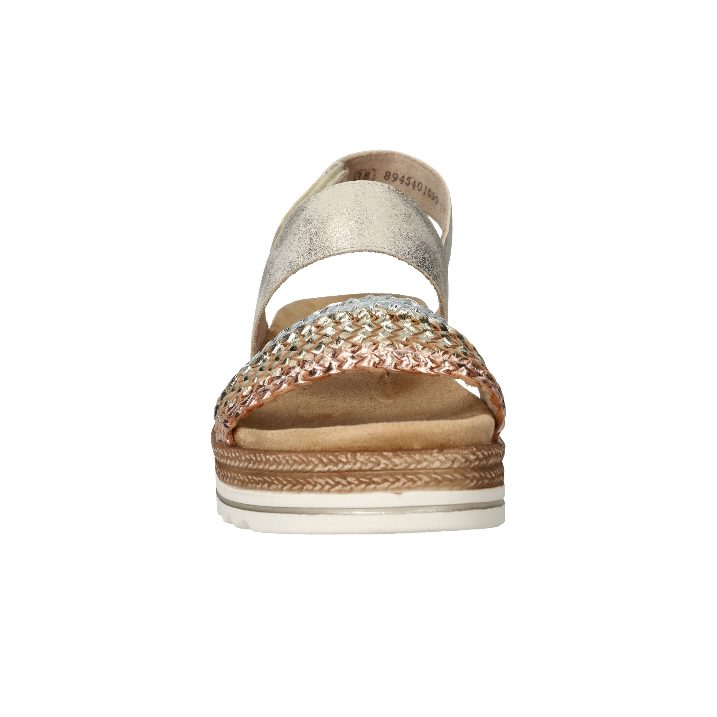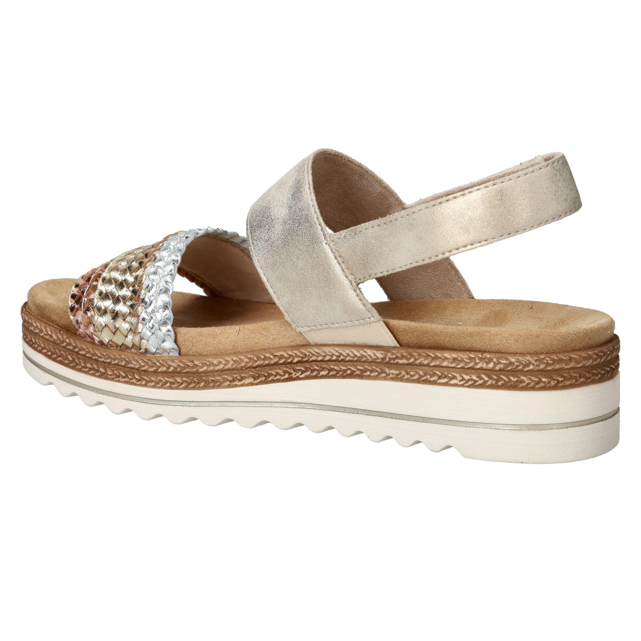 Mooie Remonte sandaal in gave metallic tinten. De damessandaal heeft een stevige witte zool.