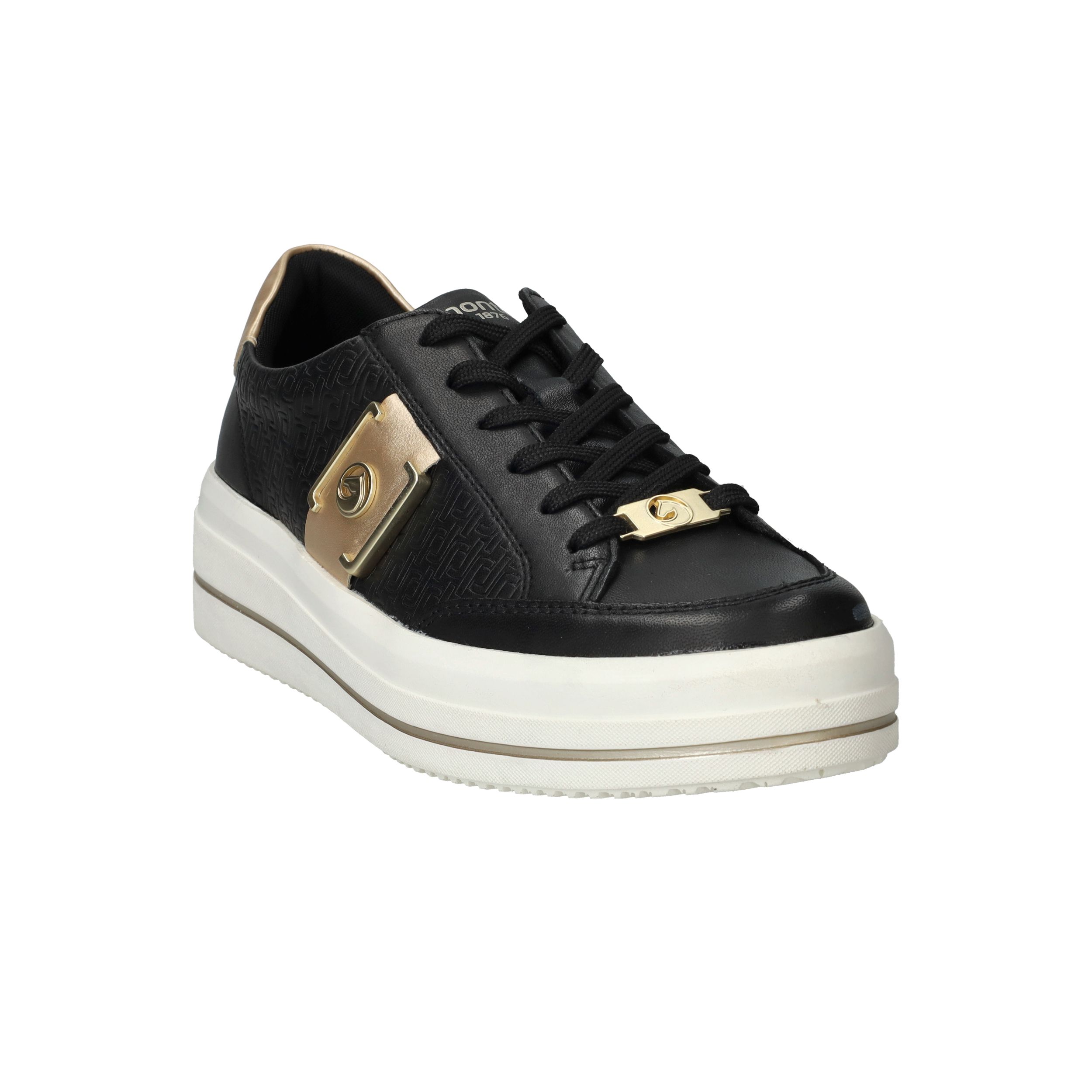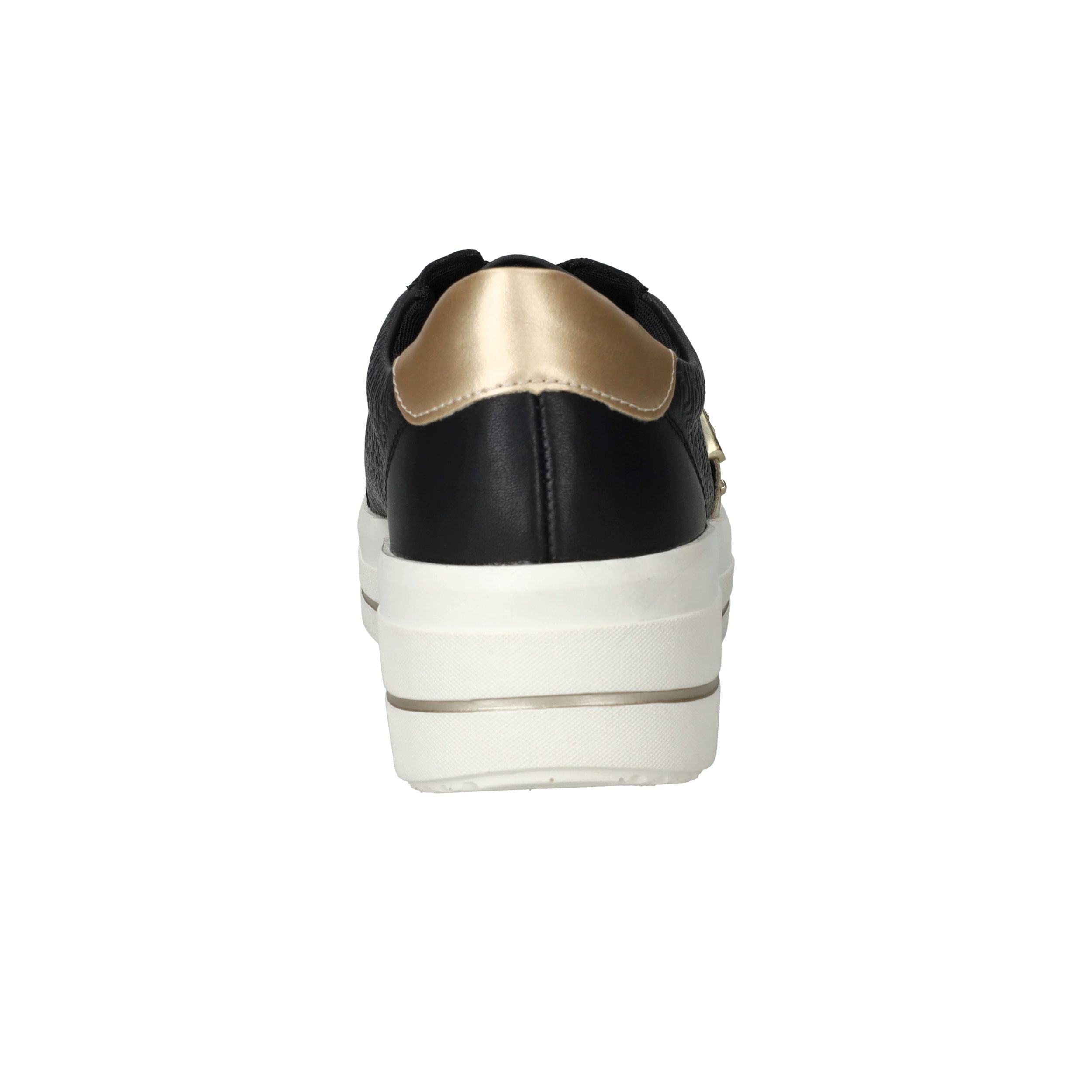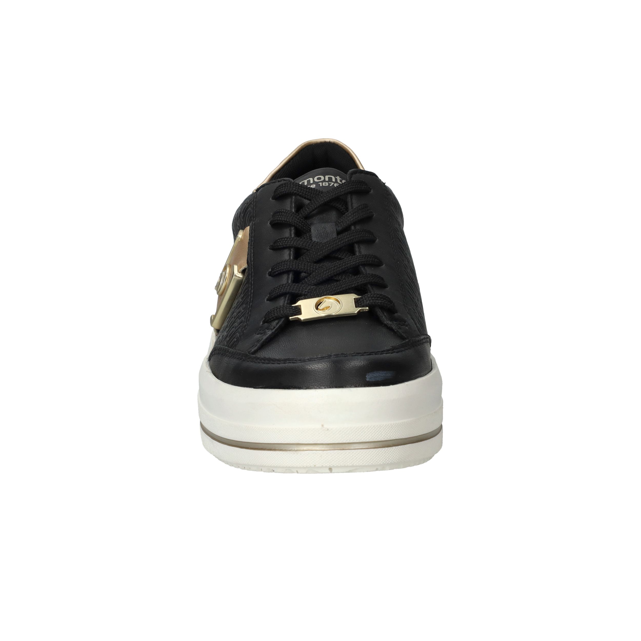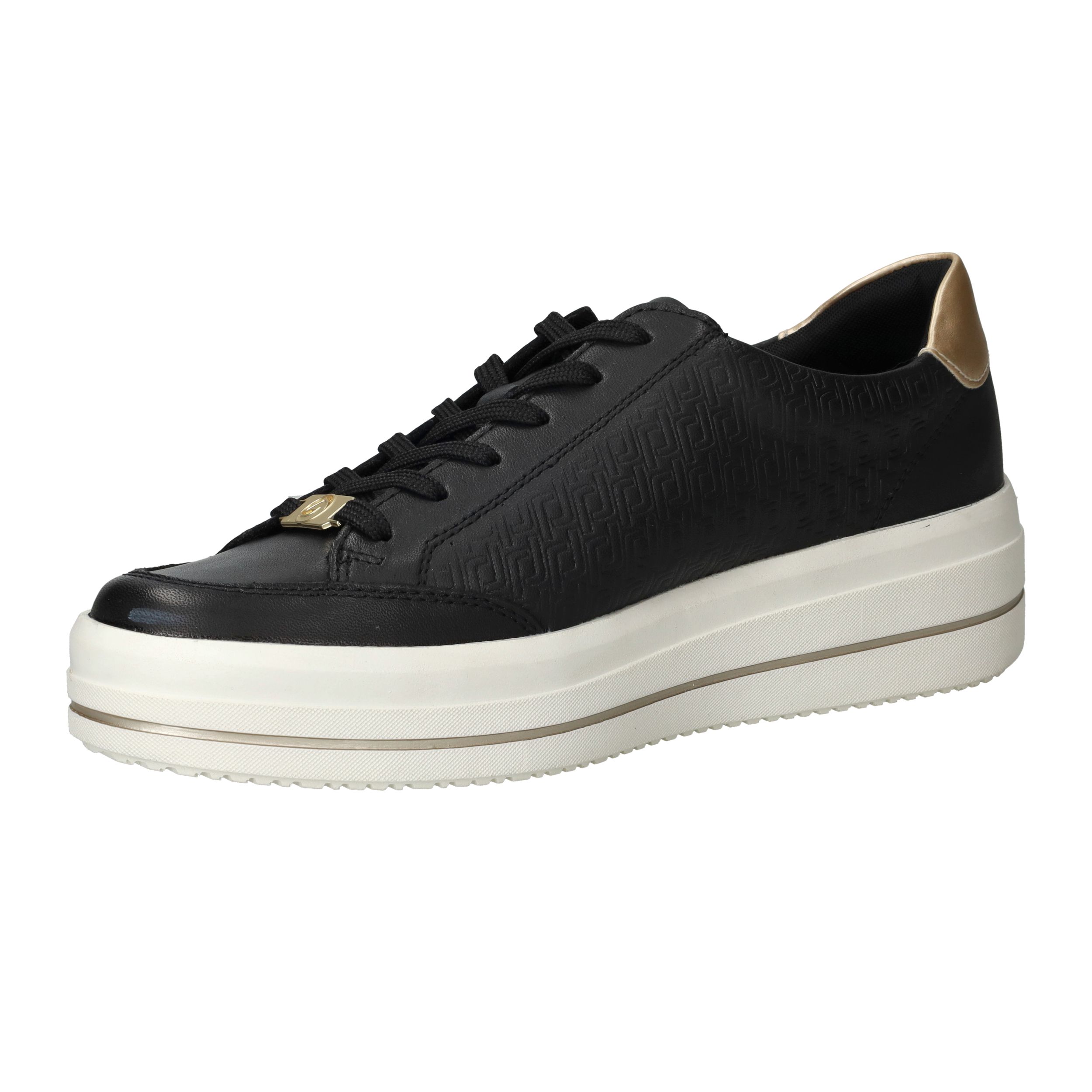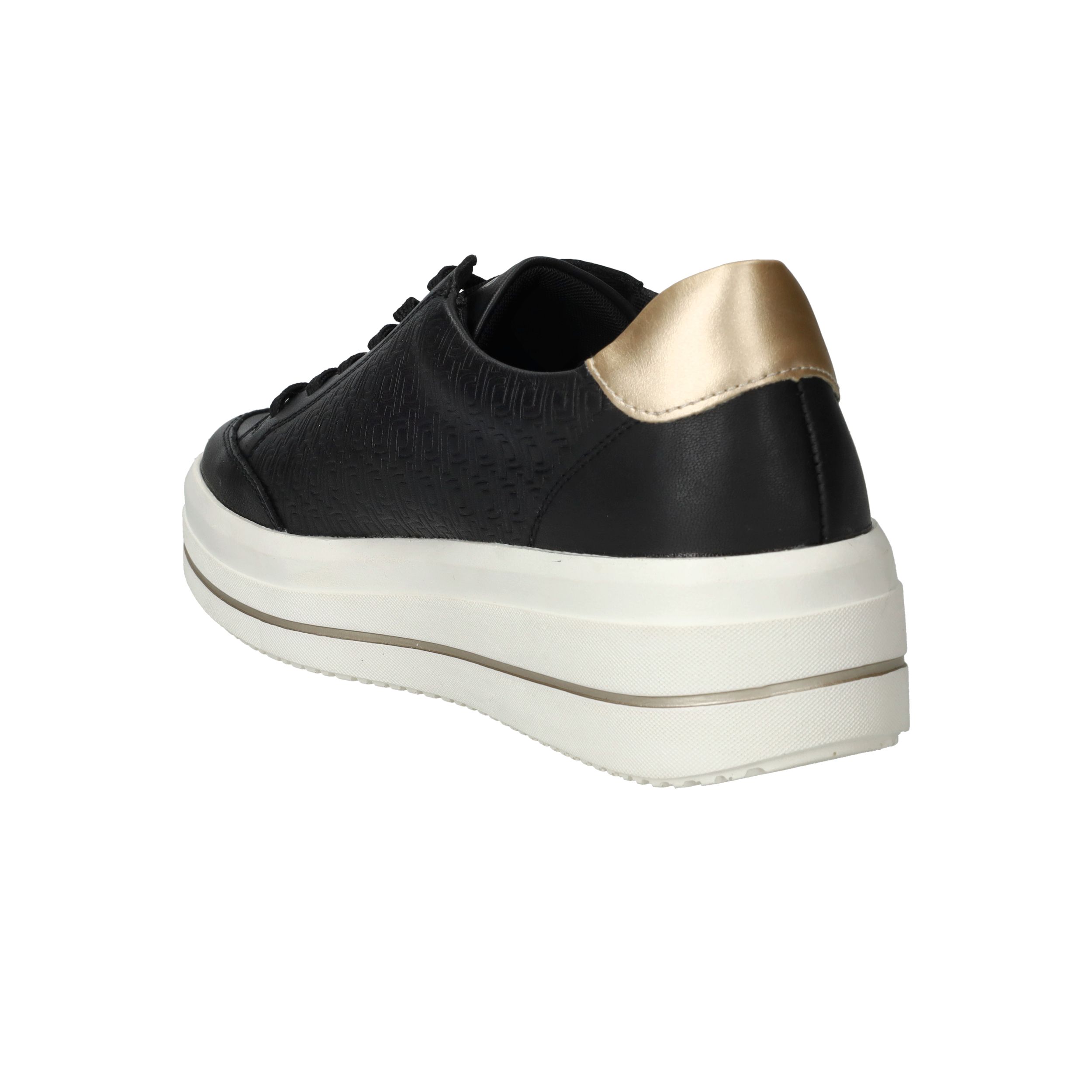 Gave zwarte Remonte sneaker met gouden siergesp aan de zijkant en toffe platformzool.