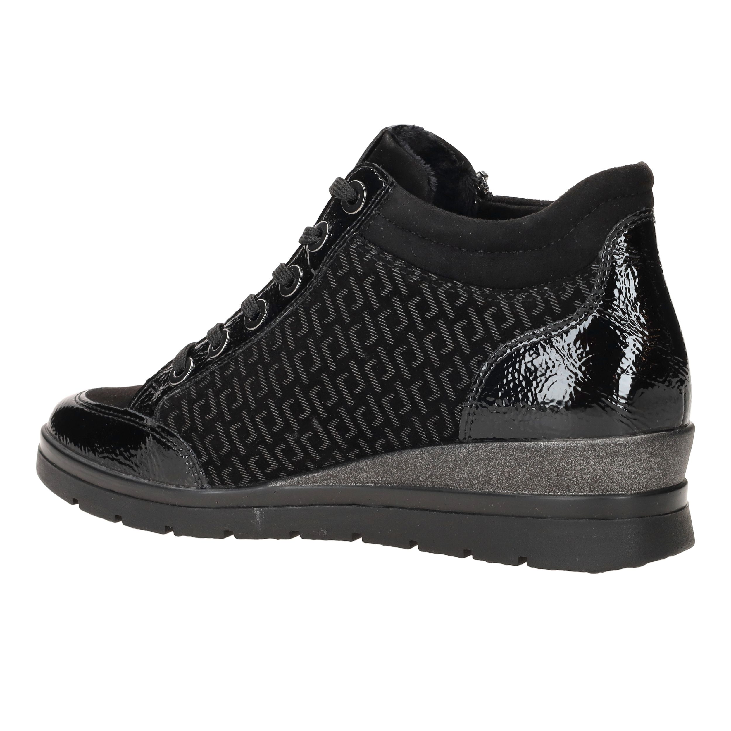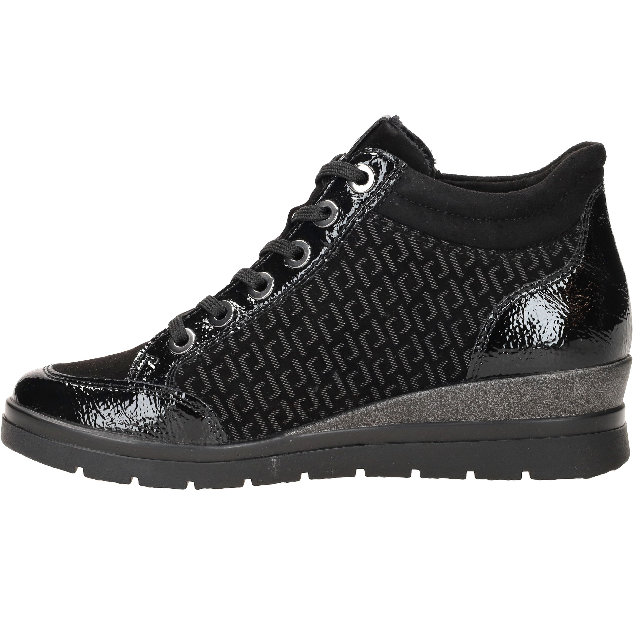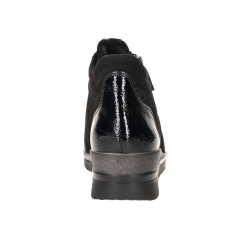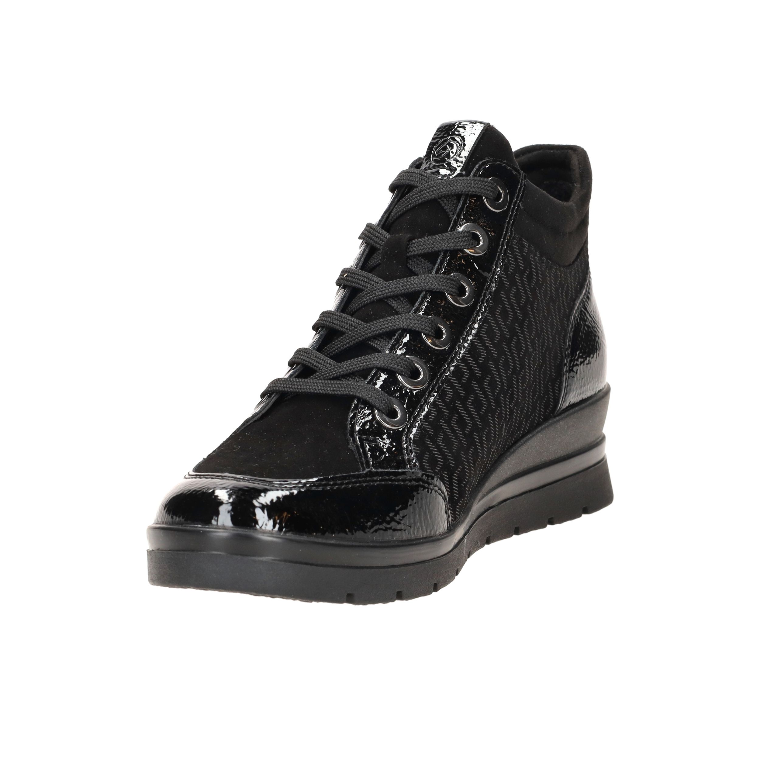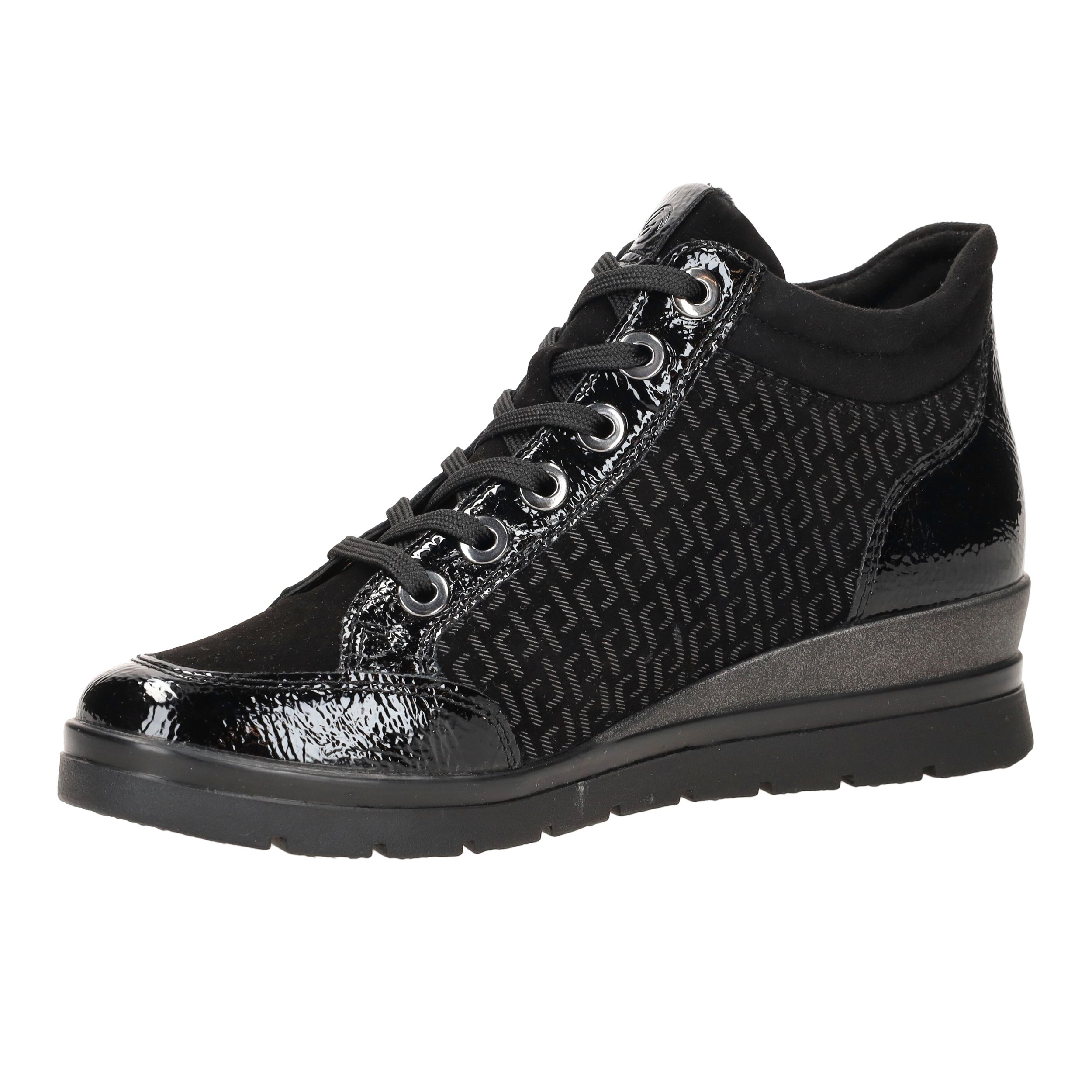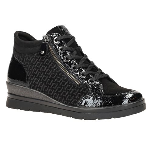 Deze zwarte veterboot van Remonte combineert een trendy design met optimaal comfort. Het bovenwerk bestaat uit een stijlvolle mix van leer en kunstleer met glanzende accenten. Dankzij het uitneembare voetbed en de ritssluiting aan de zijkant is de boot niet alleen praktisch maar ook ideaal voor dagelijks gebruik.