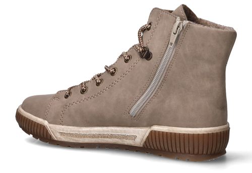 De veterboots van Rieker in beige zijn perfect voor dames die comfort en stijl willen combineren. Dankzij het soepele kunstleer sluiten deze boots mooi aan om de voet en bieden ze de hele dag door ondersteuning. De neutrale kleur maakt ze eindeloos te combineren met je garderobe. Geschikt voor elke gelegenheid: van een dagje shoppen tot een lange wandeling in de stad.