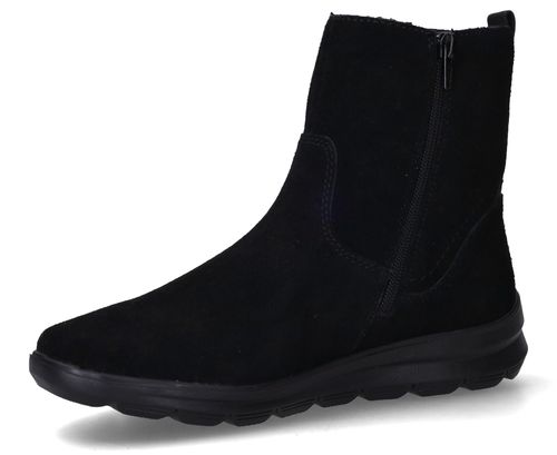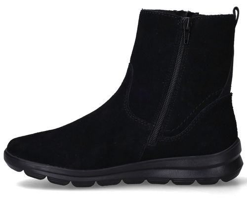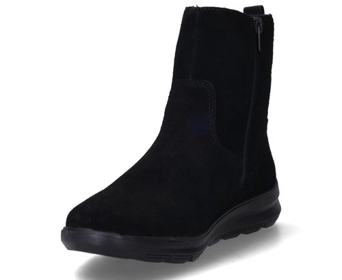 Deze comfortabele zwarte Rieker enkellaarsjes van hoogwaardig suède zijn ideaal voor dagelijks gebruik in de koude maanden. Met voetbreedte F bieden ze een aansluitende maar comfortabele pasvorm, terwijl de zachte voering je voeten heerlijk warm houdt. De sportieve zool geeft deze laarsjes een moderne en casual uitstraling.