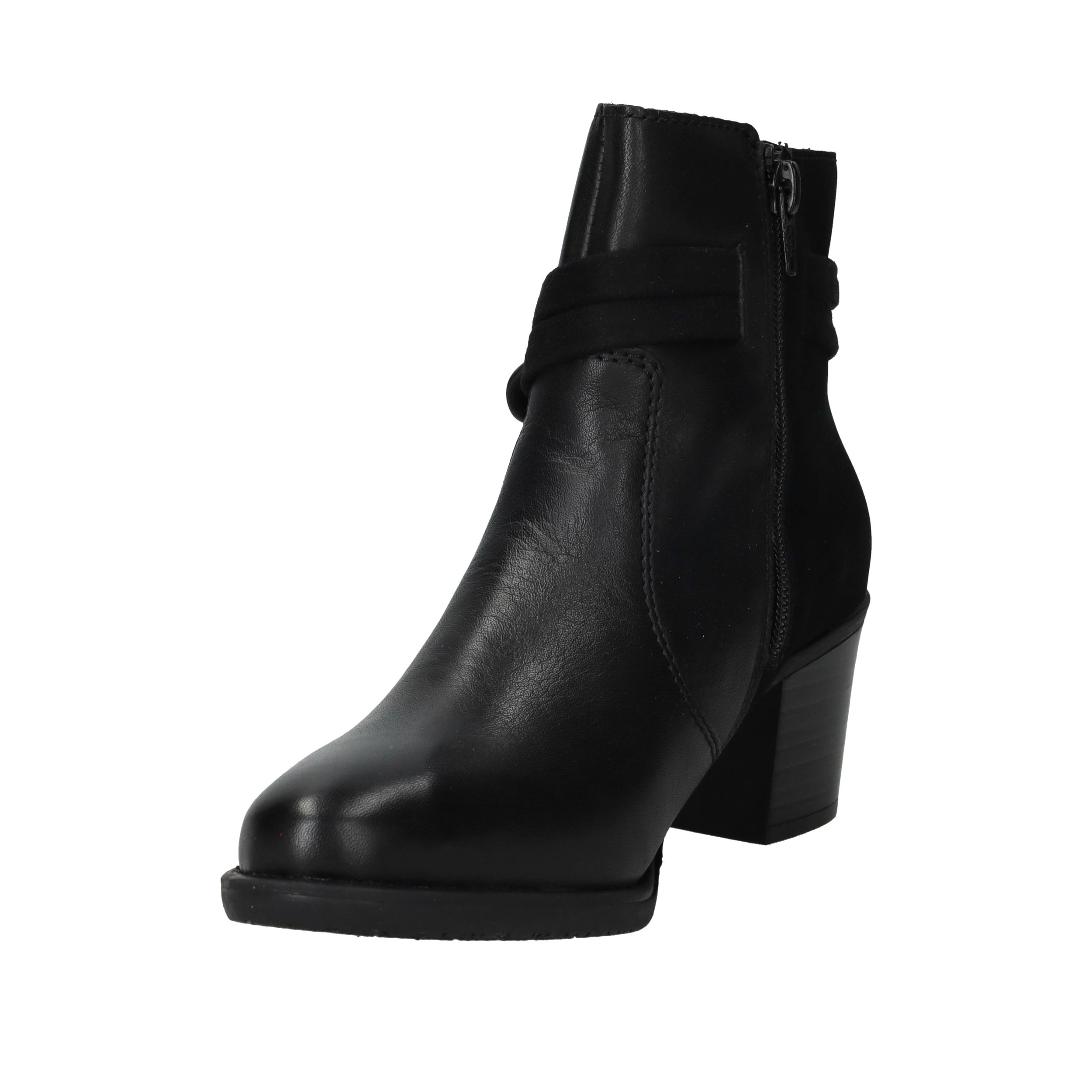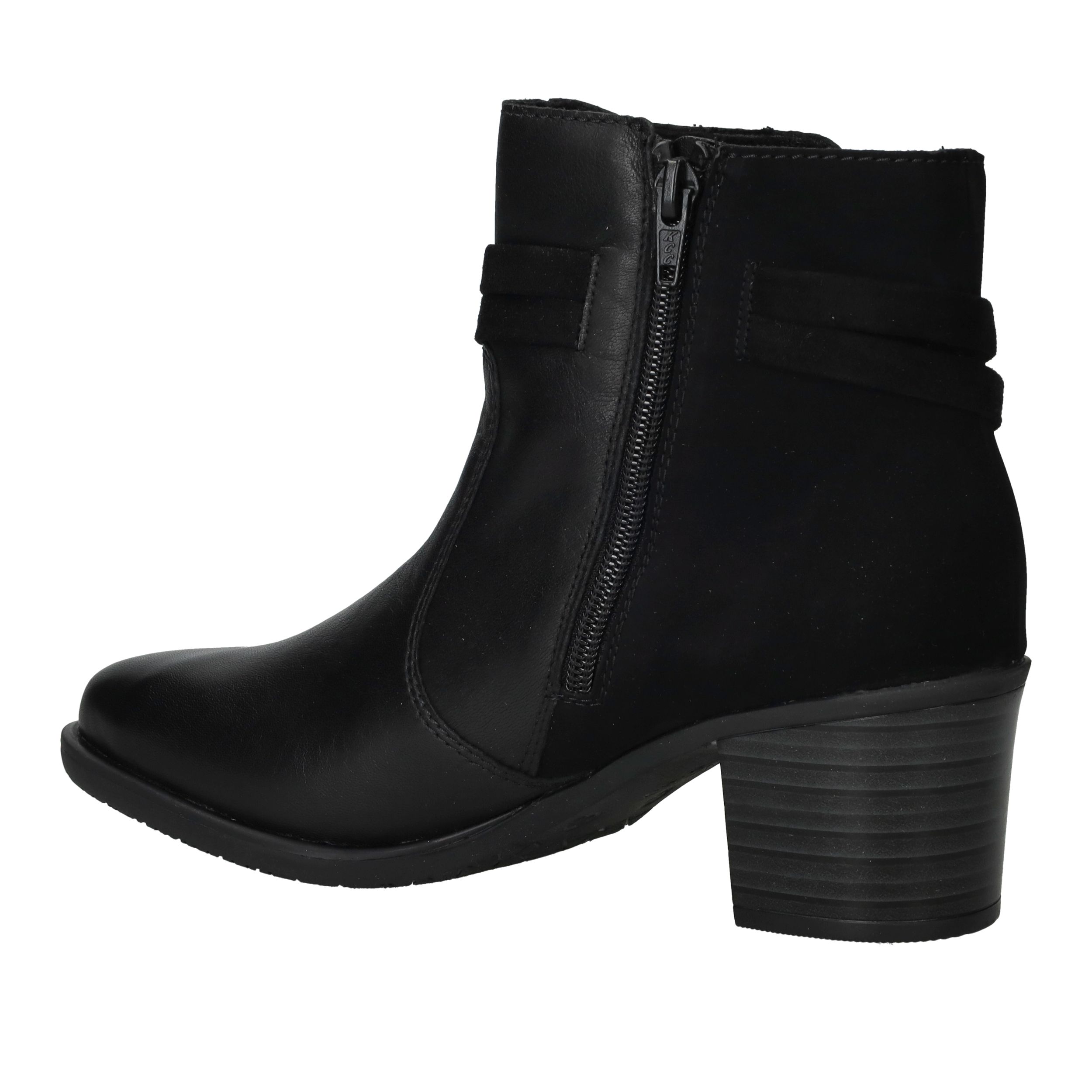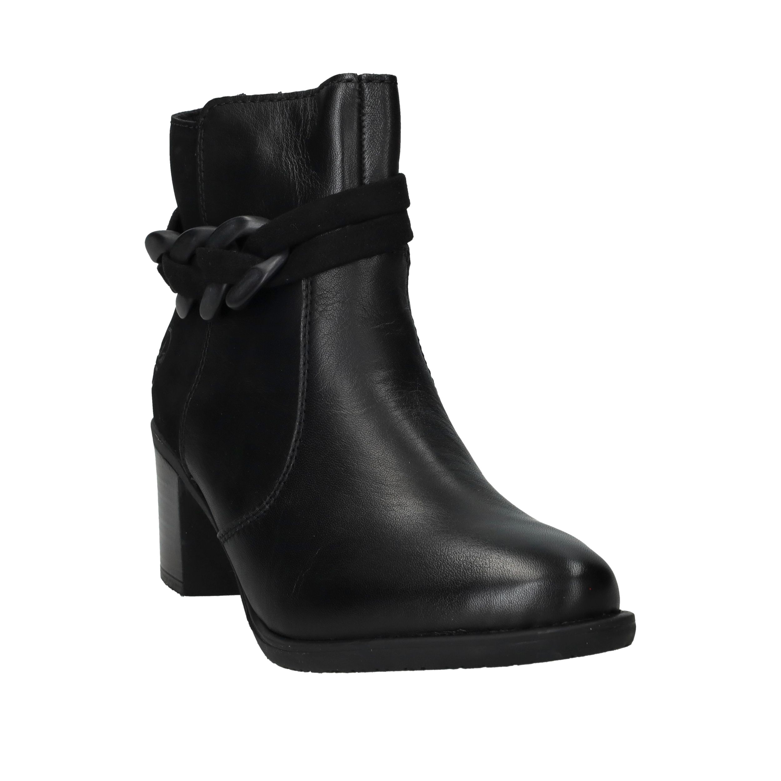 Deze zwarte Rieker enkellaarsjes zijn een stijlvolle keuze voor dames die comfort willen combineren met een modieuze uitstraling. Het gladde oppervlak van kunstleer in combinatie met de decoratieve schakel geeft deze enkellaarsjes een eigentijdse look die je makkelijk kunt dragen naar werk of een avondje uit. De ritssluiting zorgt voor gemak bij het aantrekken en de hak van 5 cm geeft net dat beetje extra elegantie. Dankzij de pasvorm met voetbreedte G blijven je voeten comfortabel, ook op drukkere dagen.