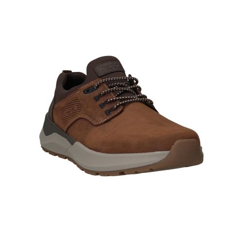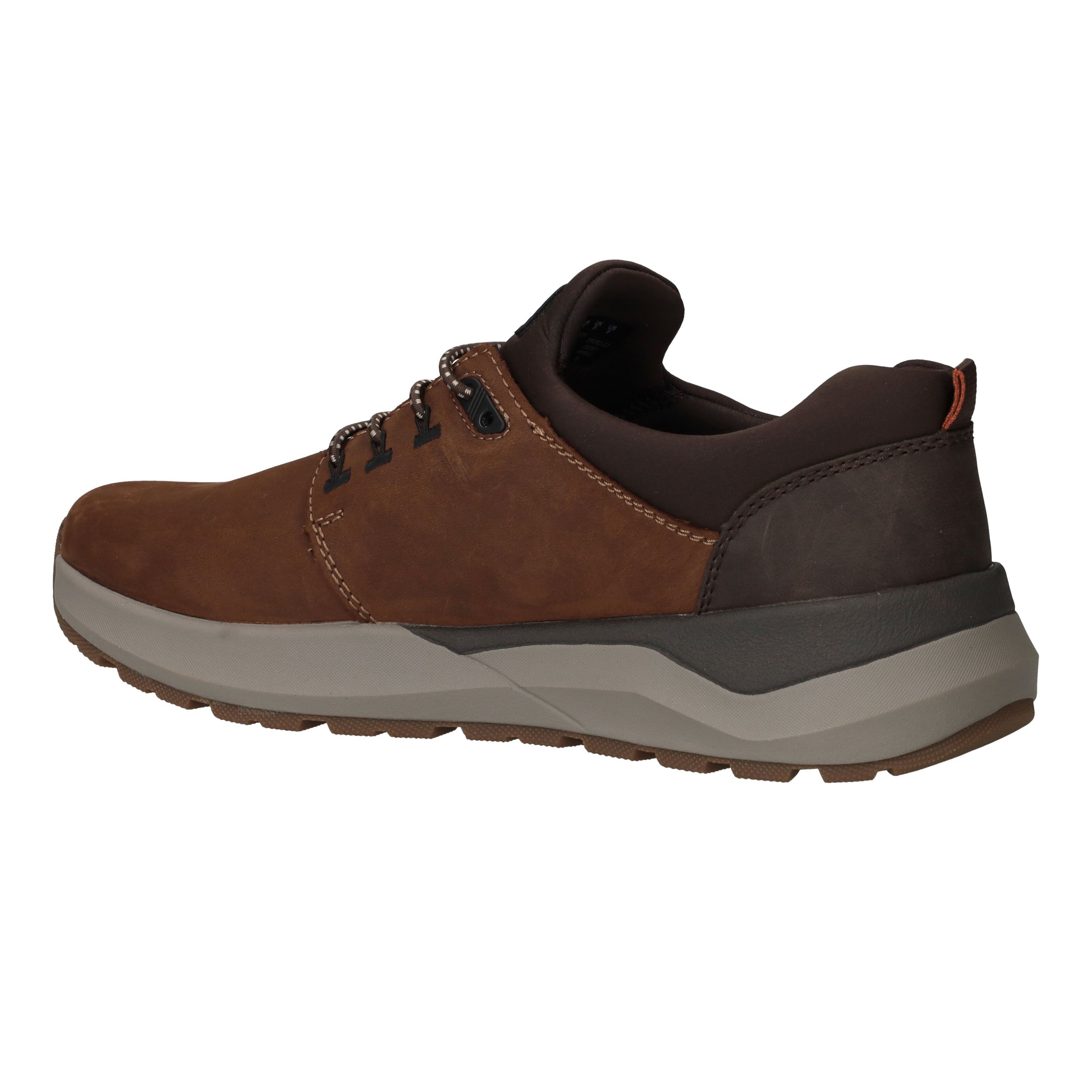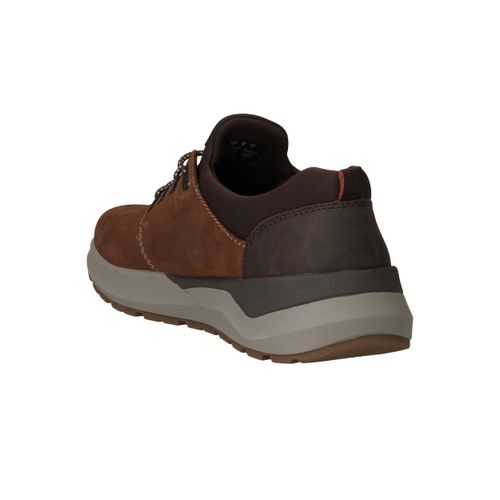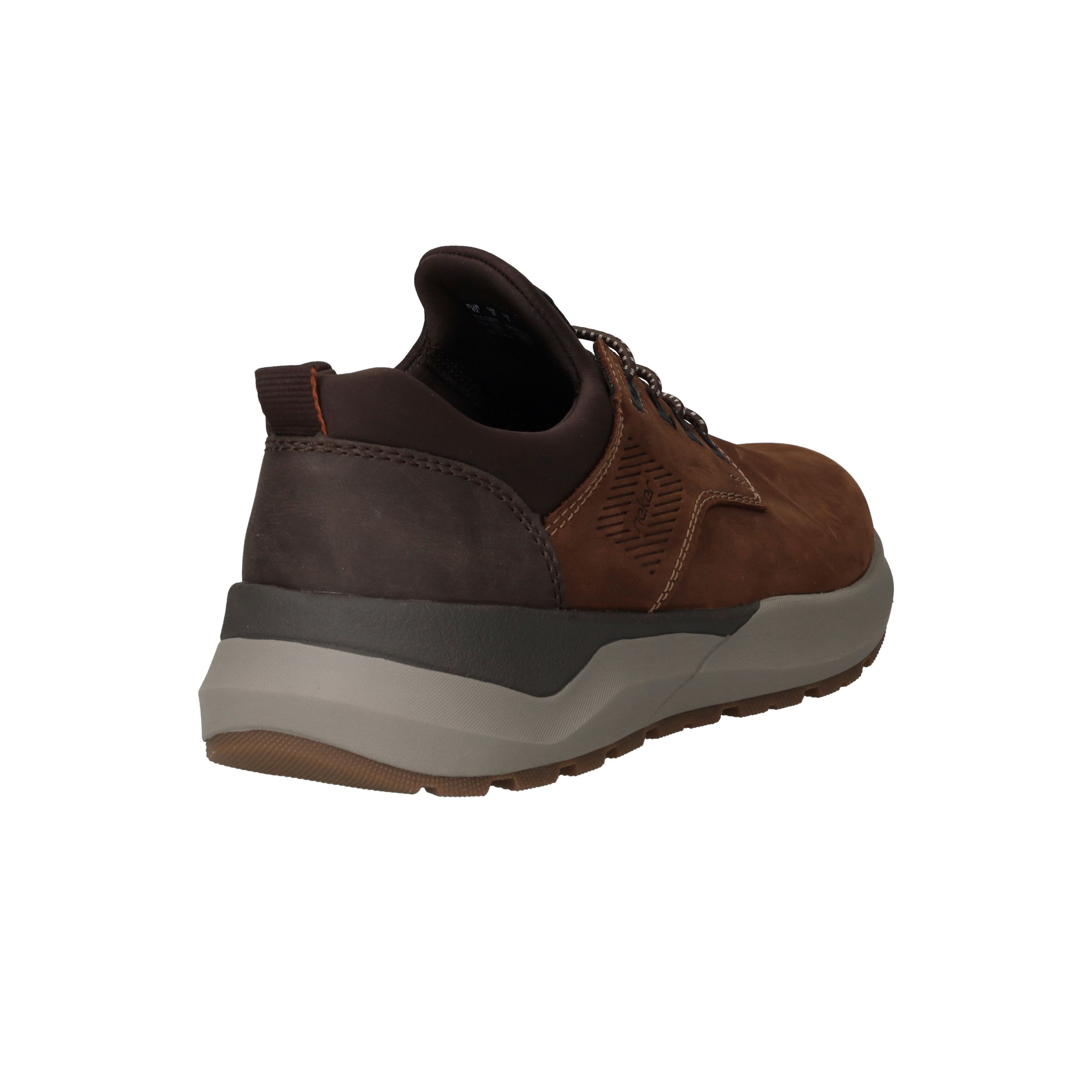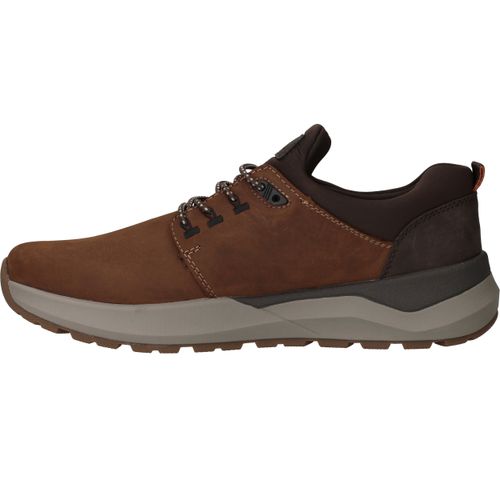 Deze bruine instapper van Rieker combineert een stoere look met dagelijks draagcomfort. Het bovenwerk van nubuck en textiel zorgt voor een stevige en ademende schoen, perfect voor actieve dagen. Dankzij de elastische veters trek je deze herenschoen makkelijk aan en de H-wijdte met uitneembare zool biedt extra ruimte en ondersteuning.
