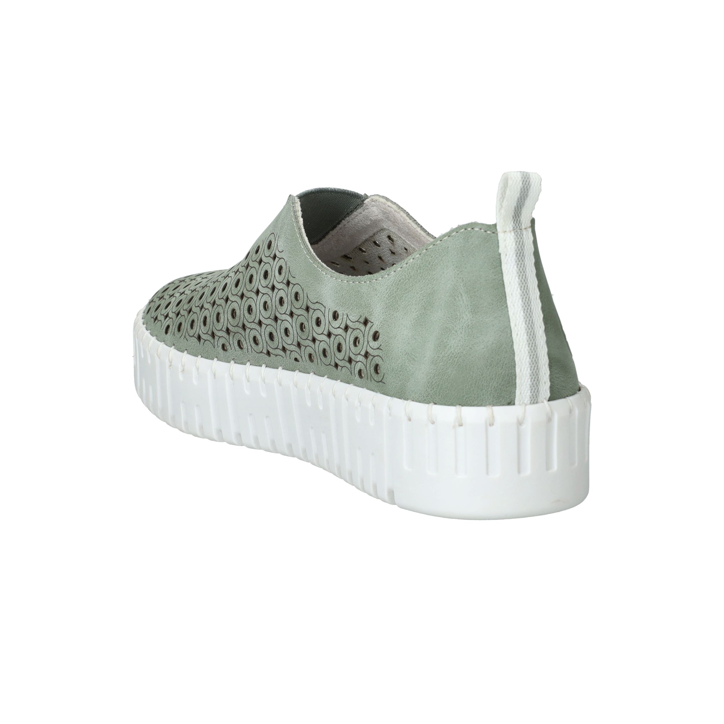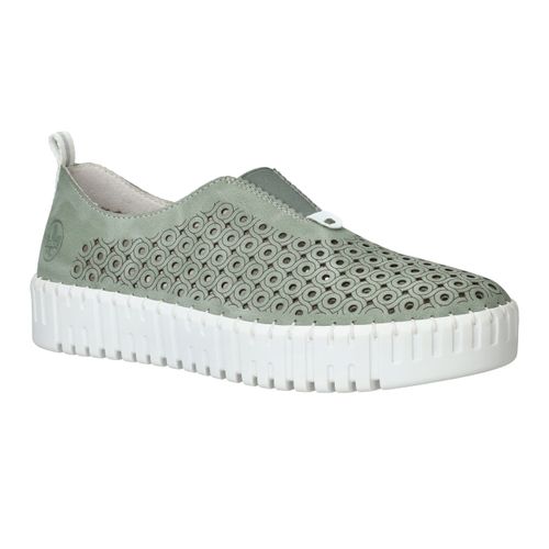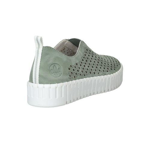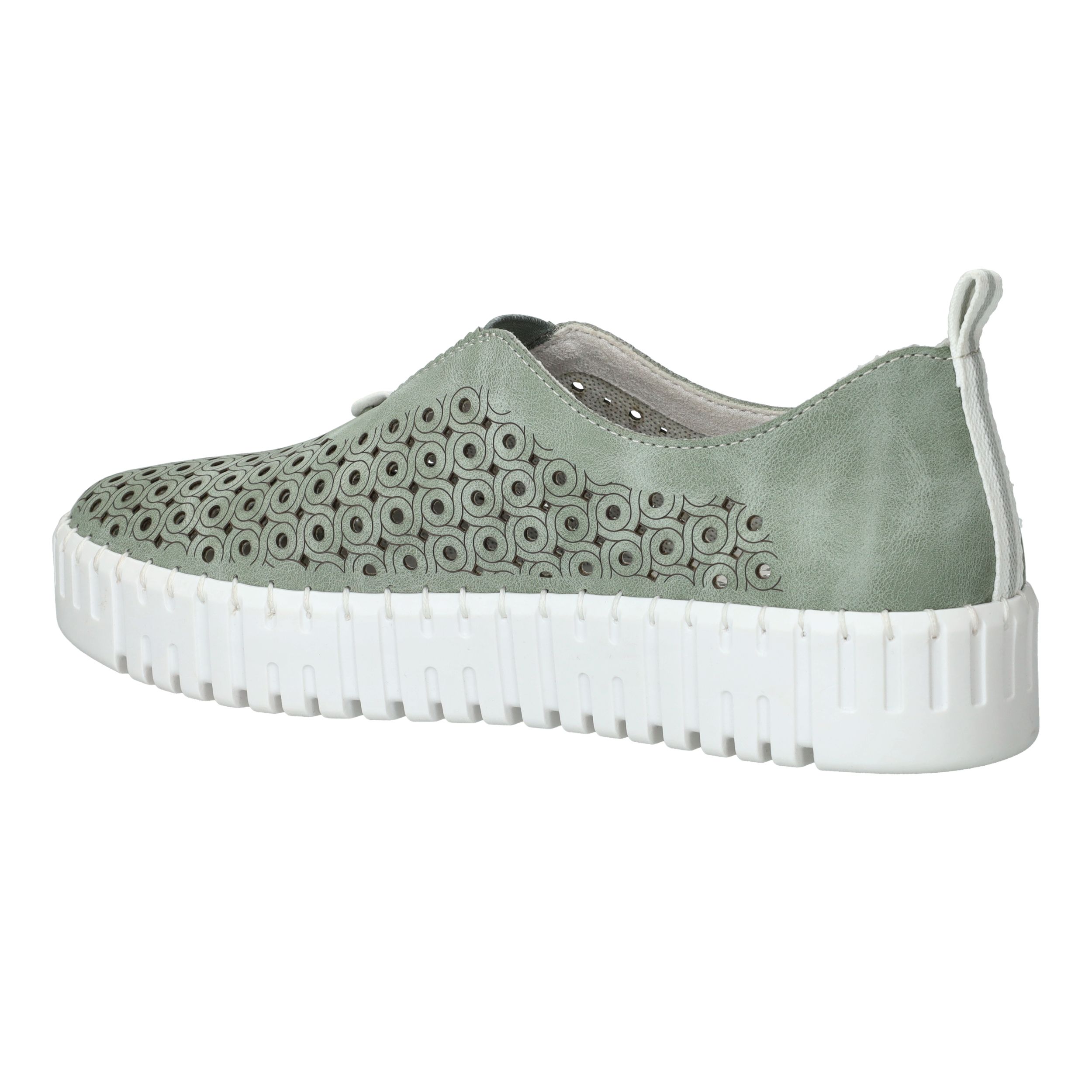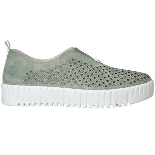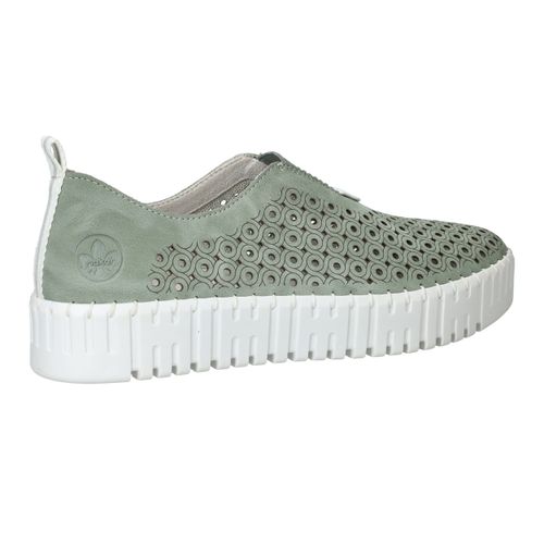 Met deze Rieker instapper ben je klaar voor het mooie weer! De damesinstapper heeft een prachtige mintgroene kleur en leuk gaatjes motief.