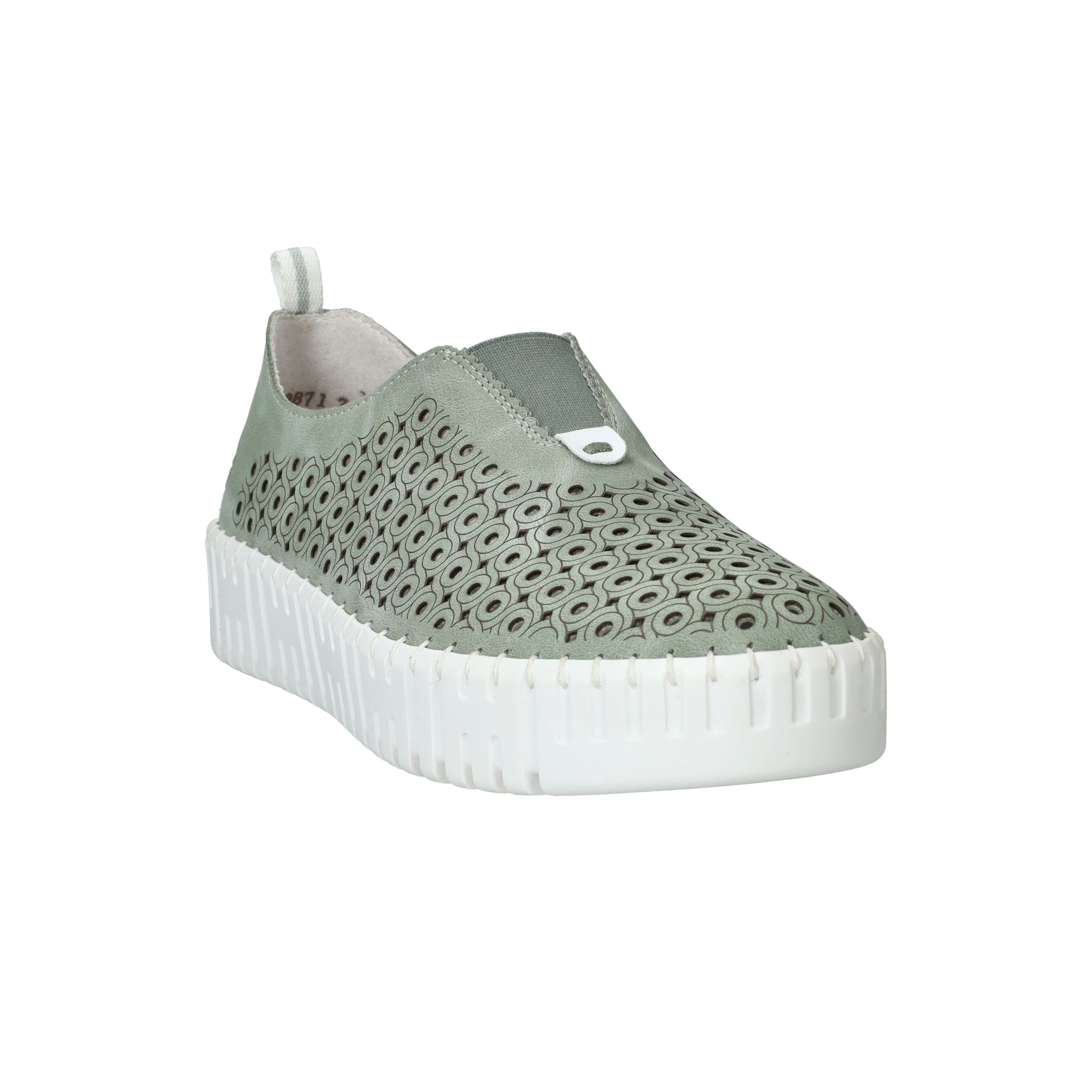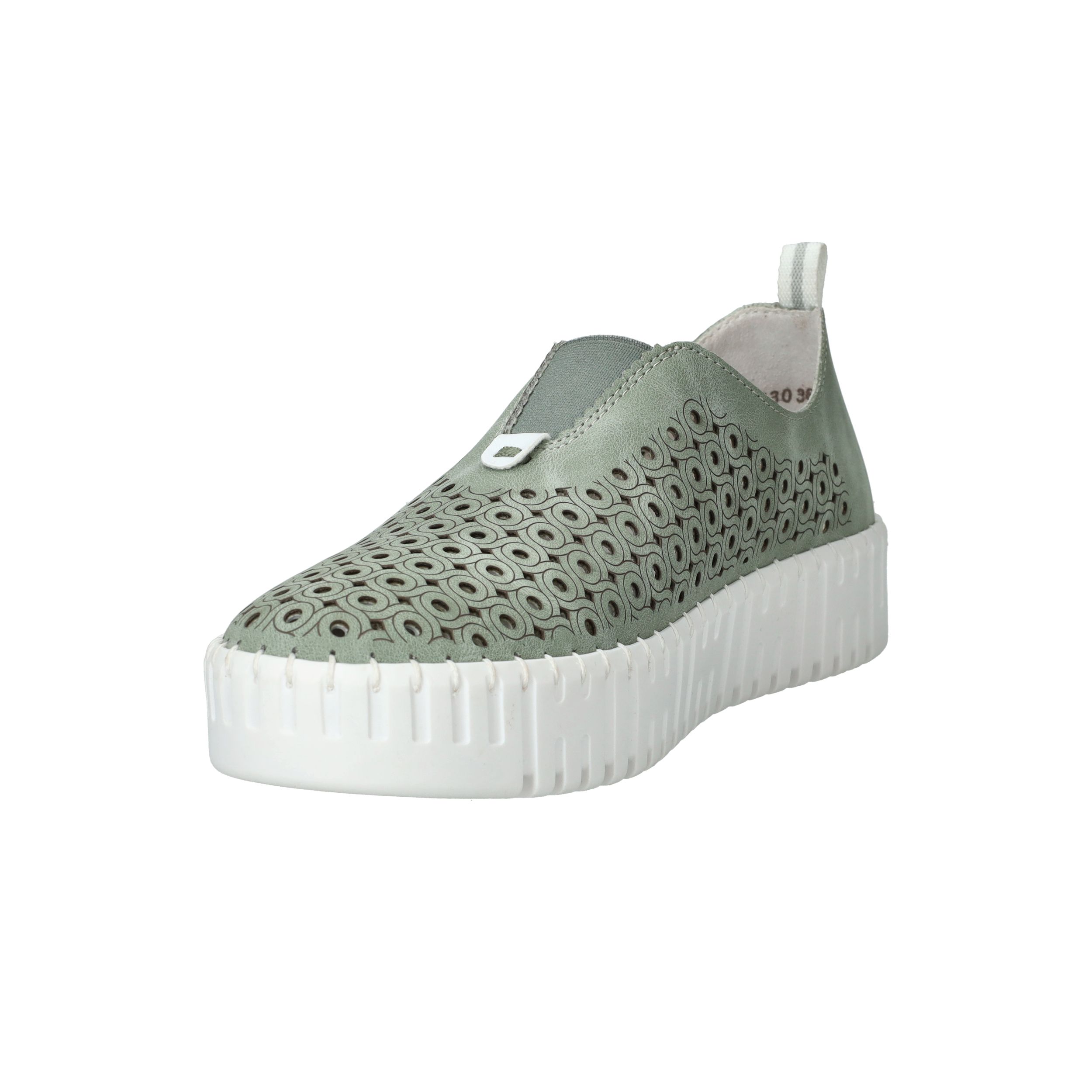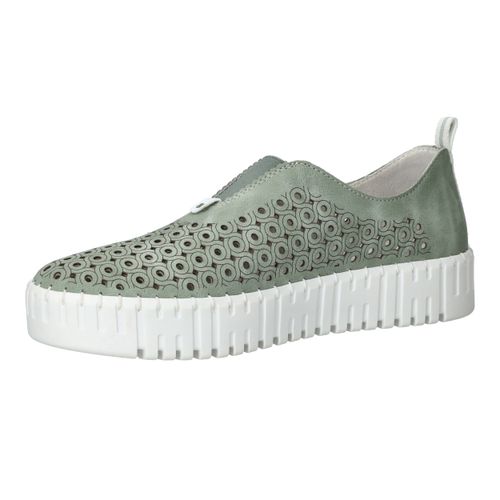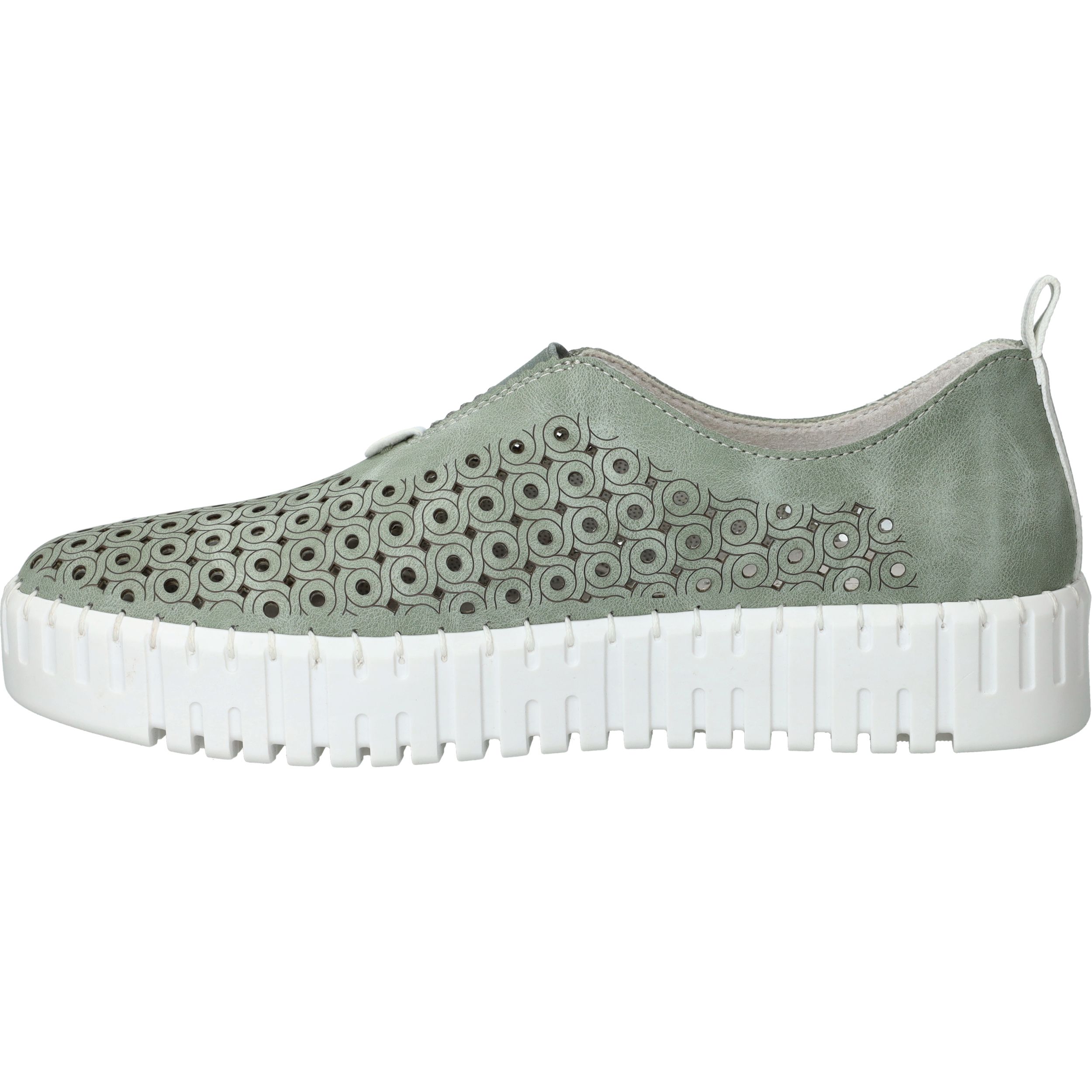 Met deze Rieker instapper ben je klaar voor het mooie weer! De damesinstapper heeft een prachtige mintgroene kleur en leuk gaatjes motief.
