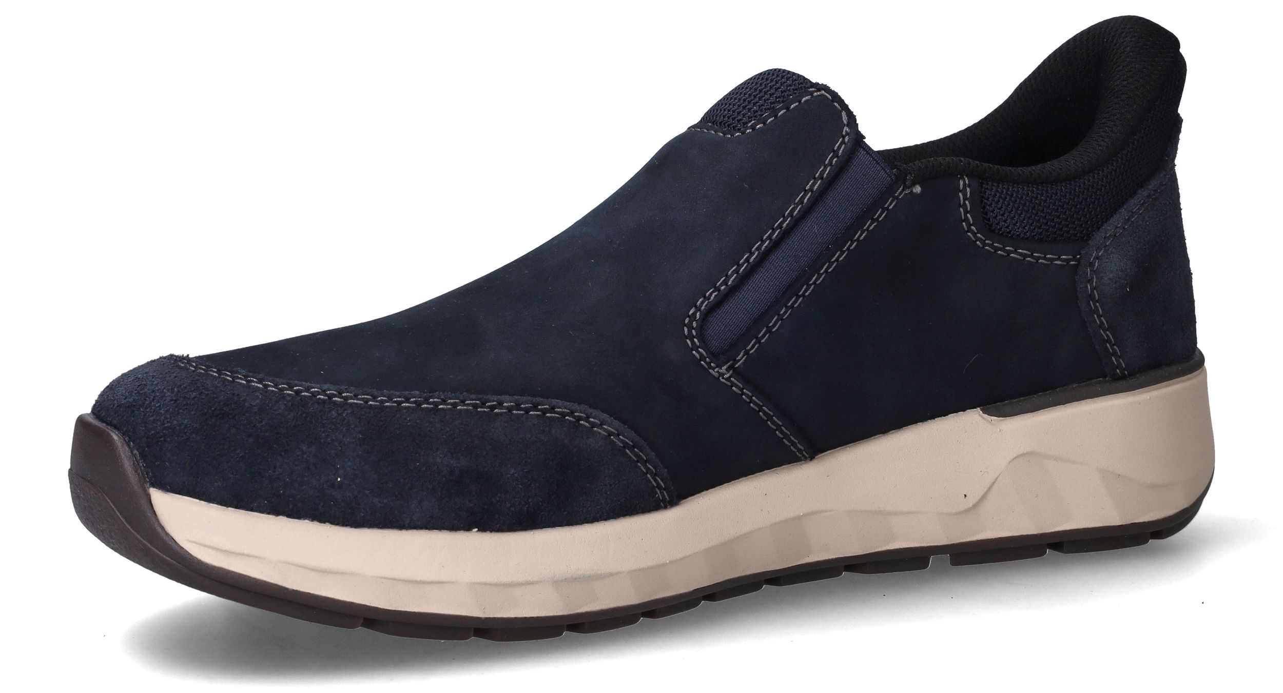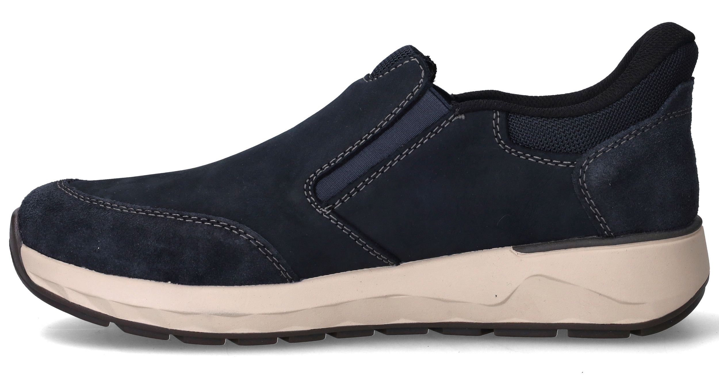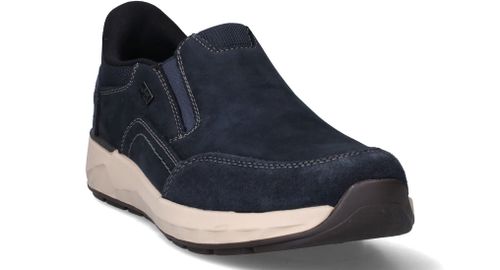 Deze comfortabele instappers van Rieker zijn de perfecte keuze voor heren die gemak willen zonder in te leveren op stijl. Dankzij de combinatie van suède en nubuck voelt de schoen zacht aan en oogt hij stoer. De donkerblauwe kleur is tijdloos en veelzijdig. Met voetbreedte H geniet je van extra ruimte en optimaal loopcomfort.