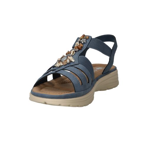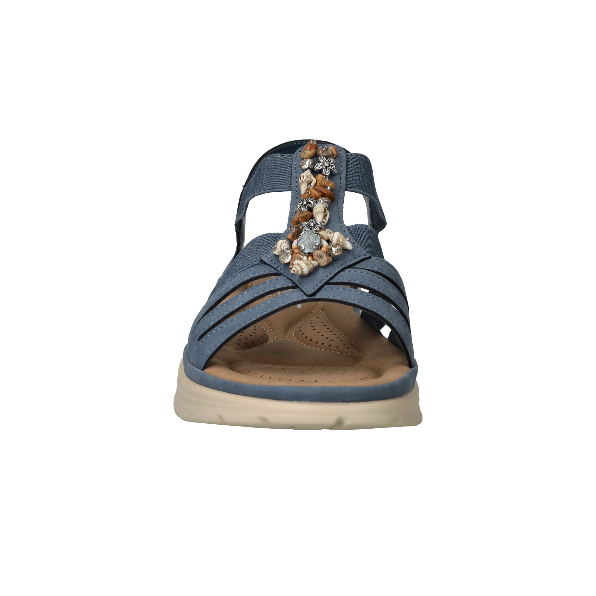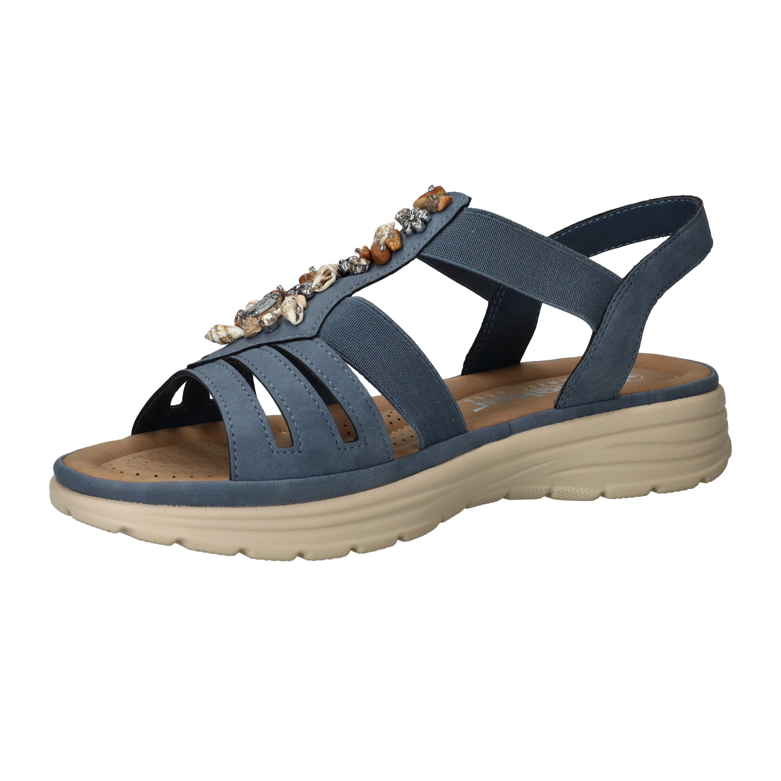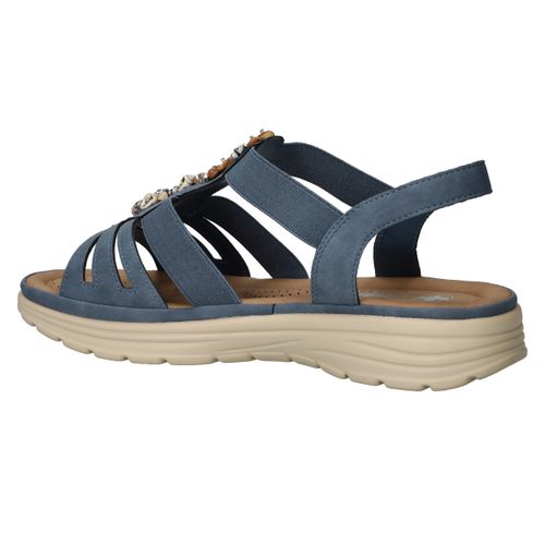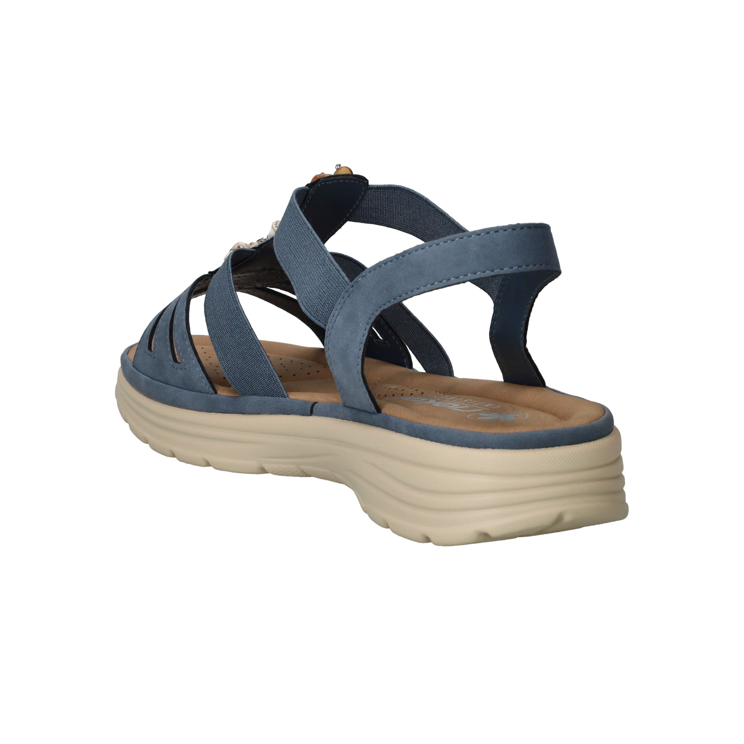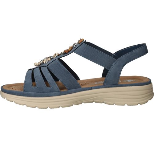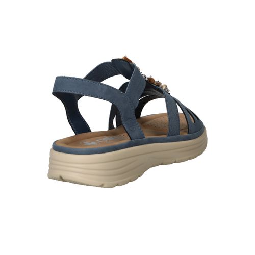 Loop comfortabel en stijlvol de zomer door met de Rieker sandalen, model V8549. Deze damessandalen in een prachtige blauwe kleur zijn vervaardigd uit een combinatie van synthetisch materiaal en textiel, wat zorgt voor een comfortabele pasvorm. De sandalen zijn voorzien van een comfortabele zool en een zachte binnenzool, waardoor je de hele dag comfortabel kunt lopen. De opvallende sierstenen en de verstelbare bandjes geven deze sandalen een unieke en trendy touch.