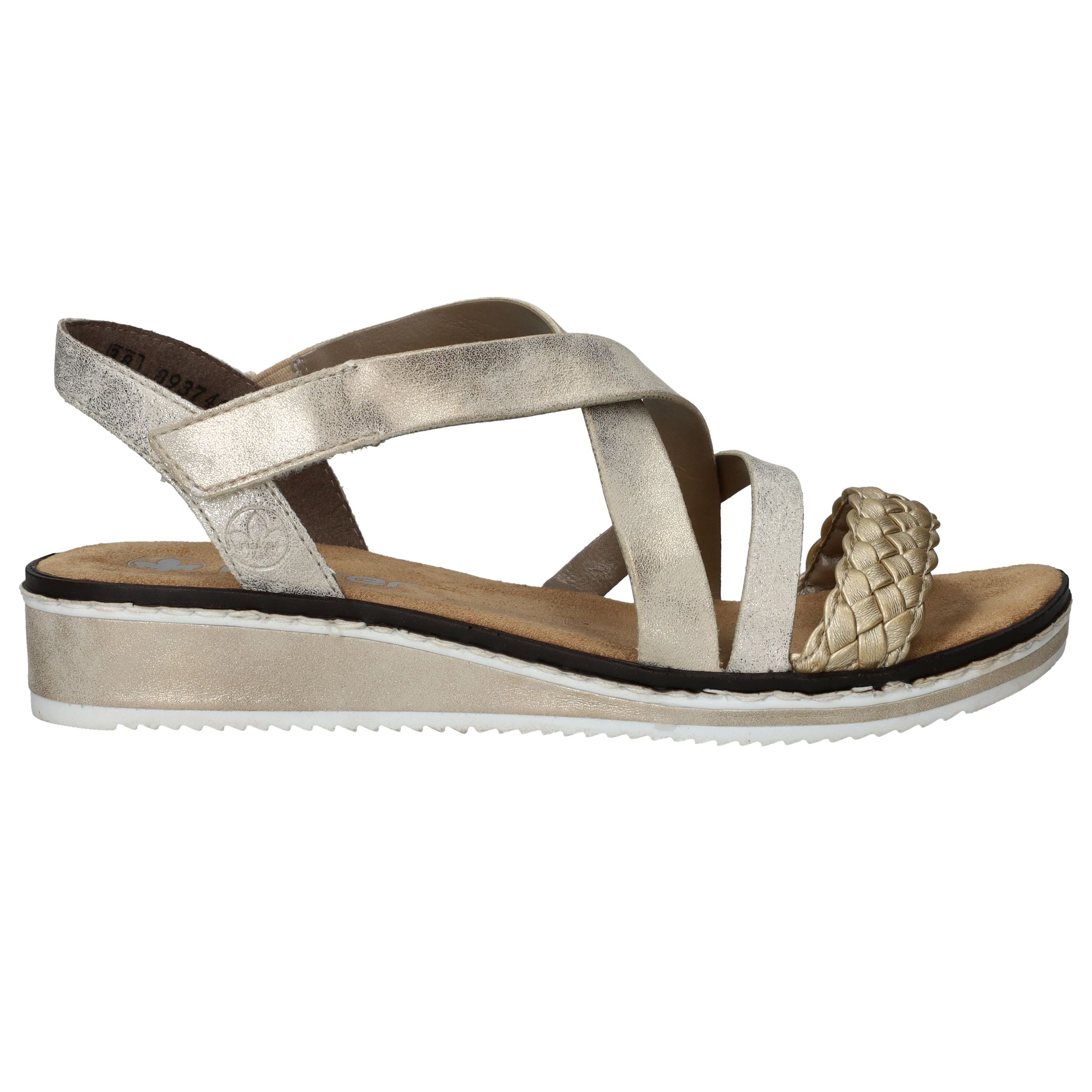 Deze Rieker sandaal laat je voeten stralen! De sandaal heeft gouden en zilveren metallic bandjes. Dat ziet er stralend uit als de zon schijnt!