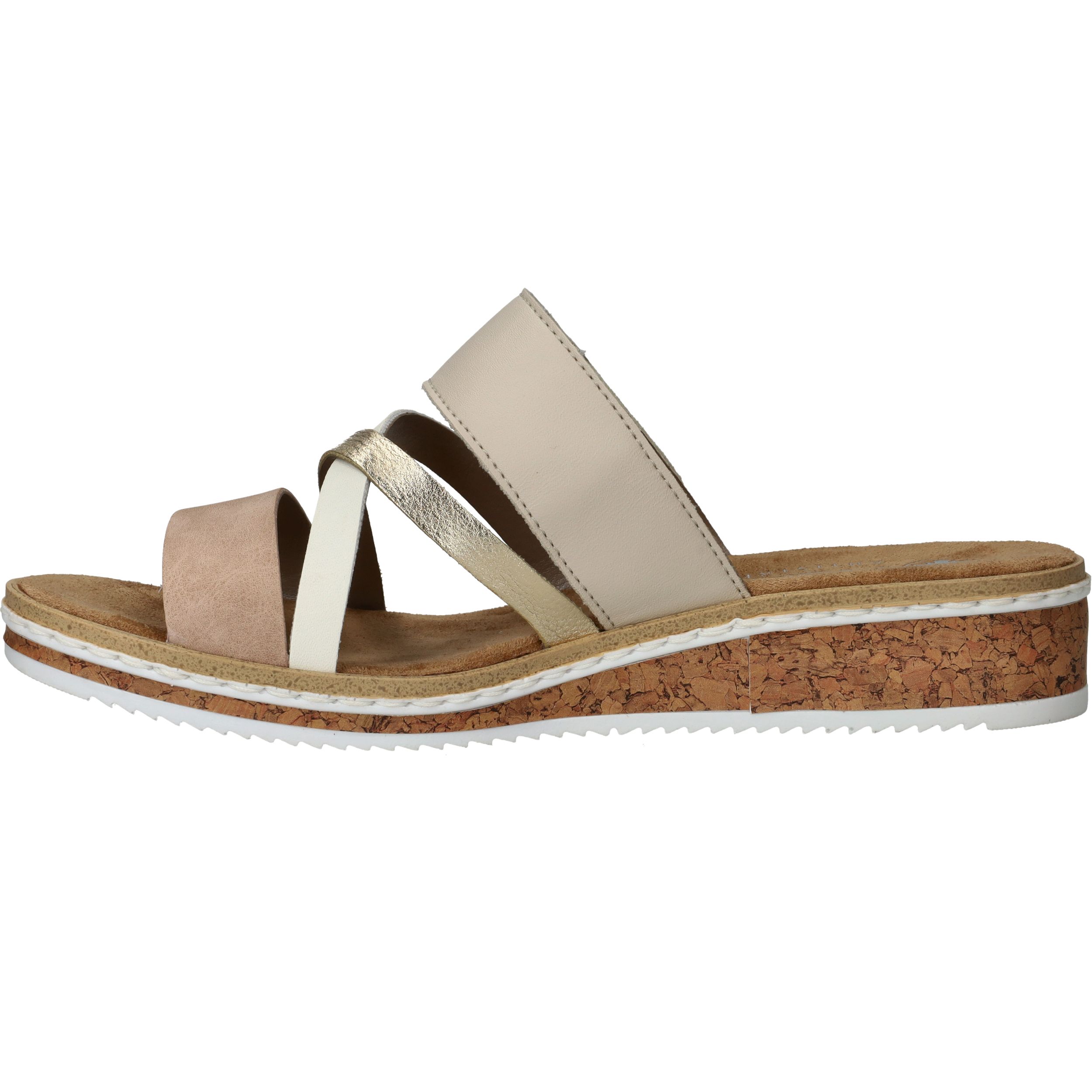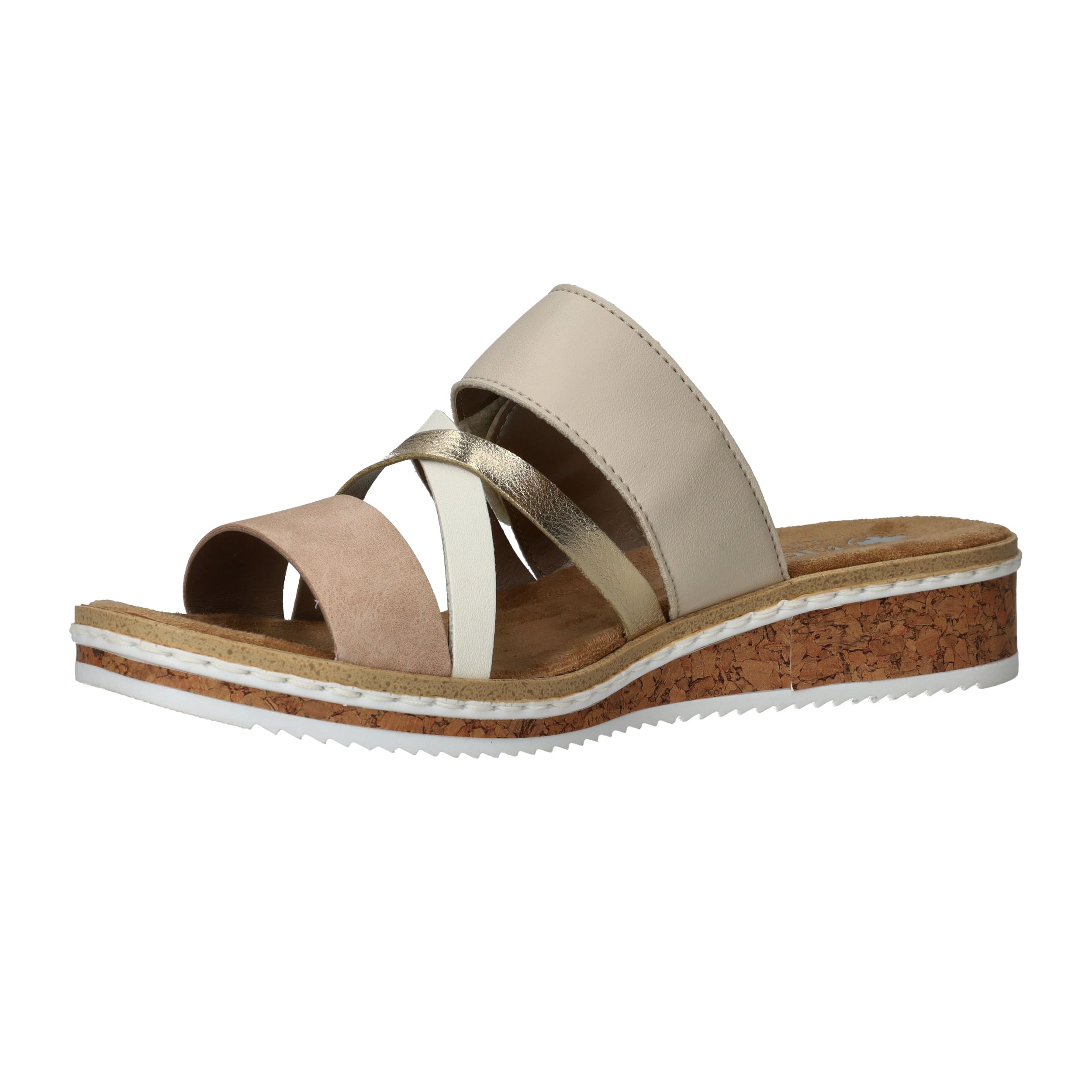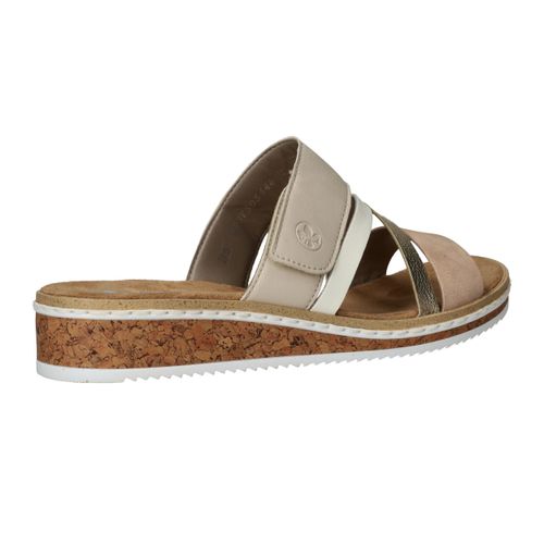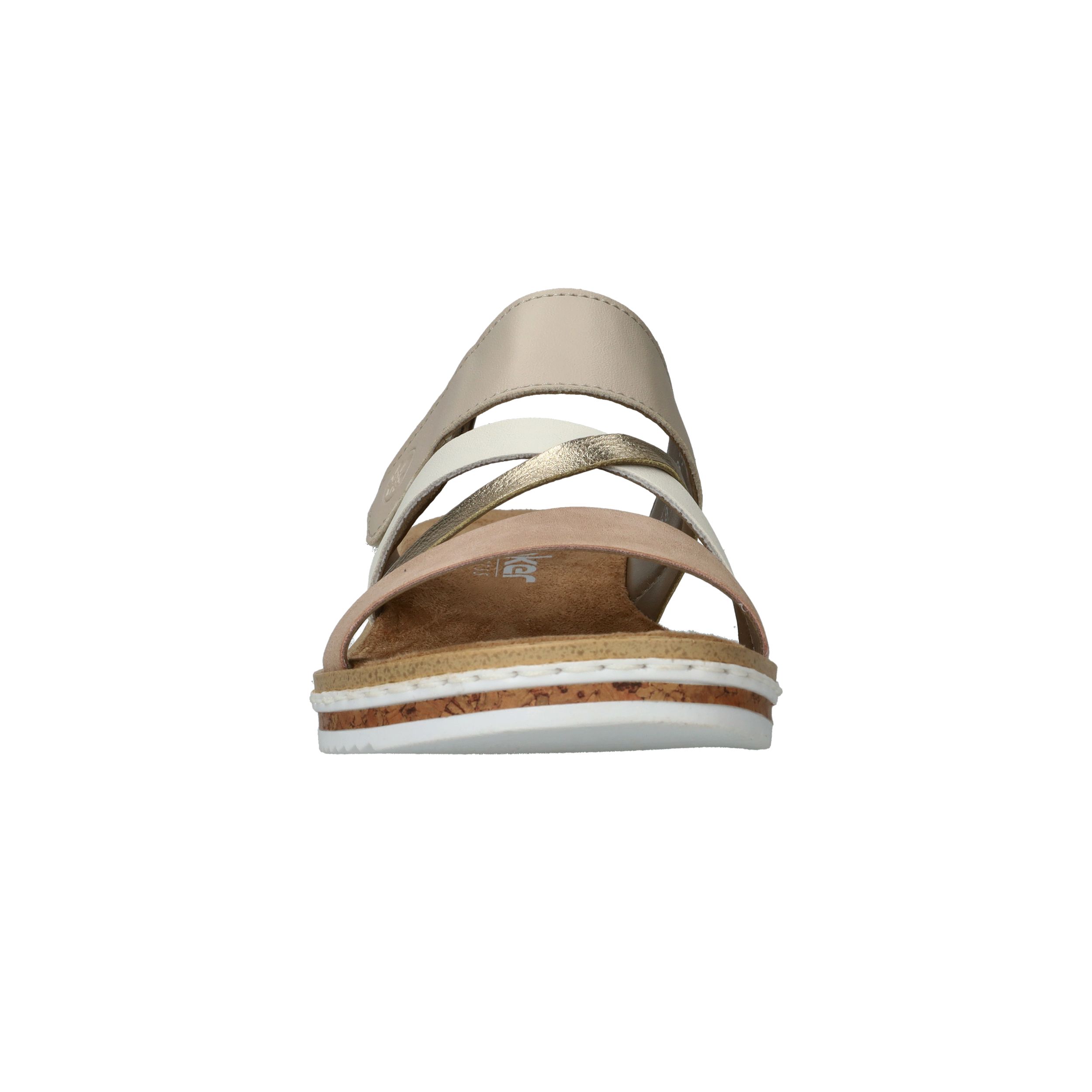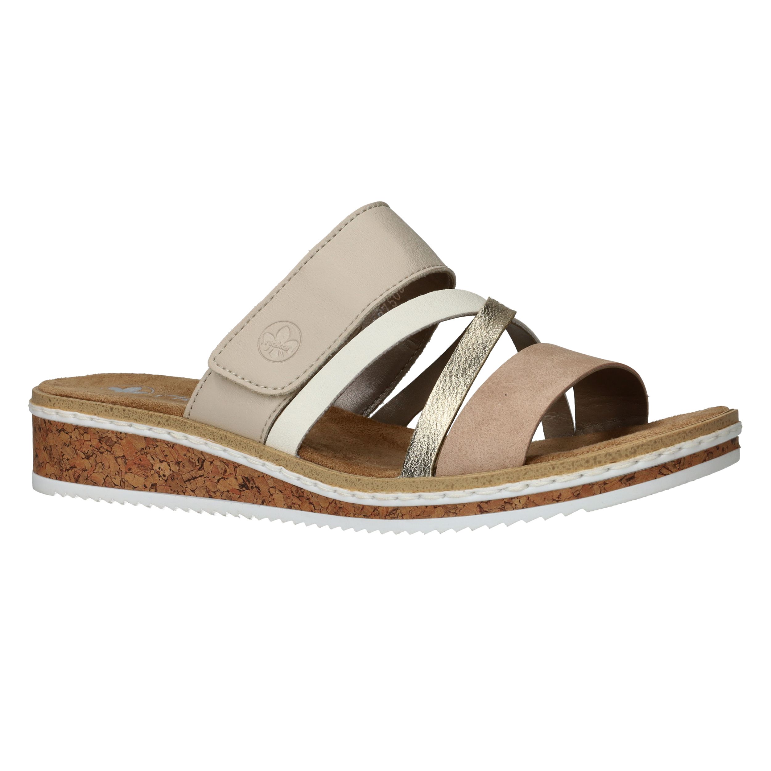 Deze fijne Rieker slipper heeft leuke gekleurde bandjes in neutrale kleuren.