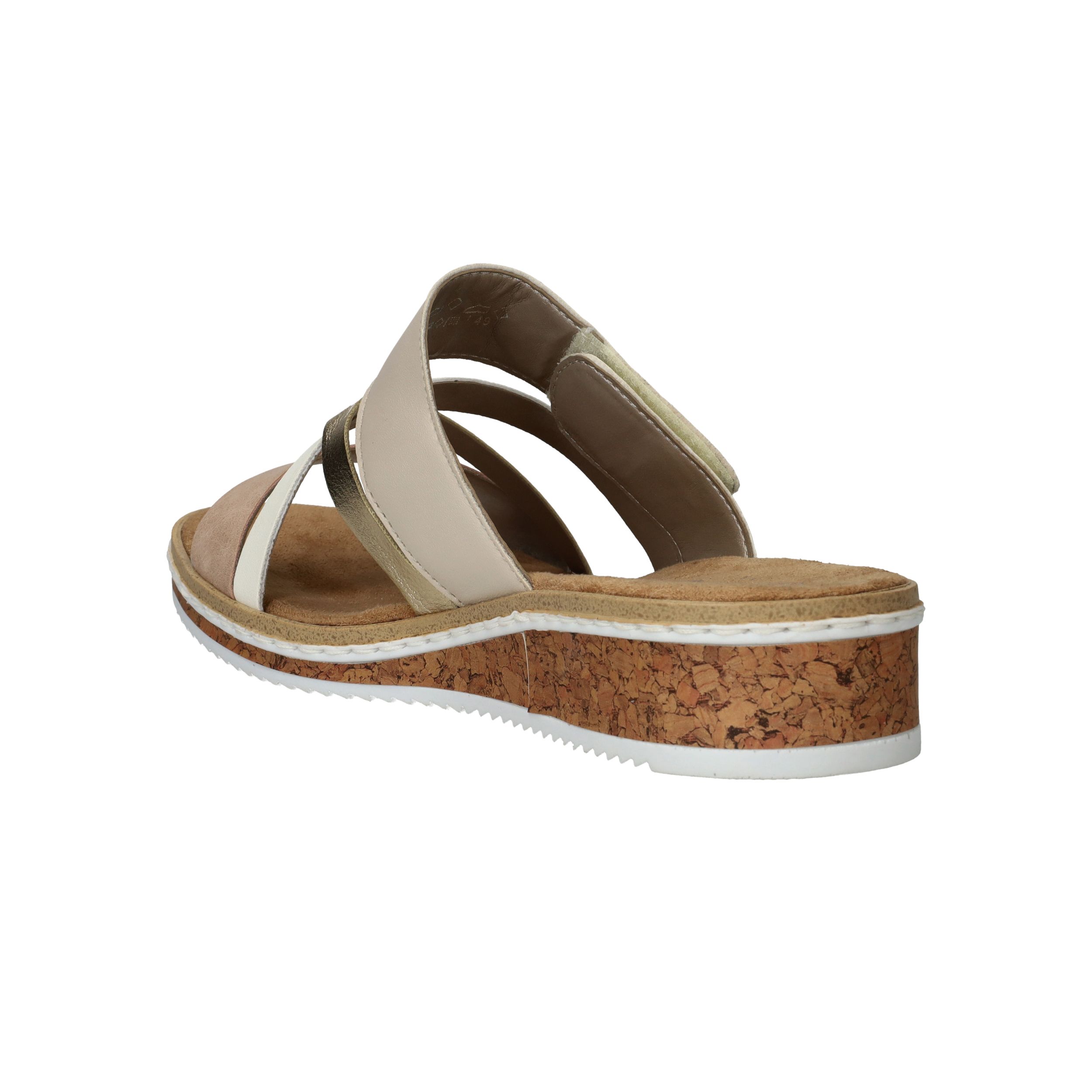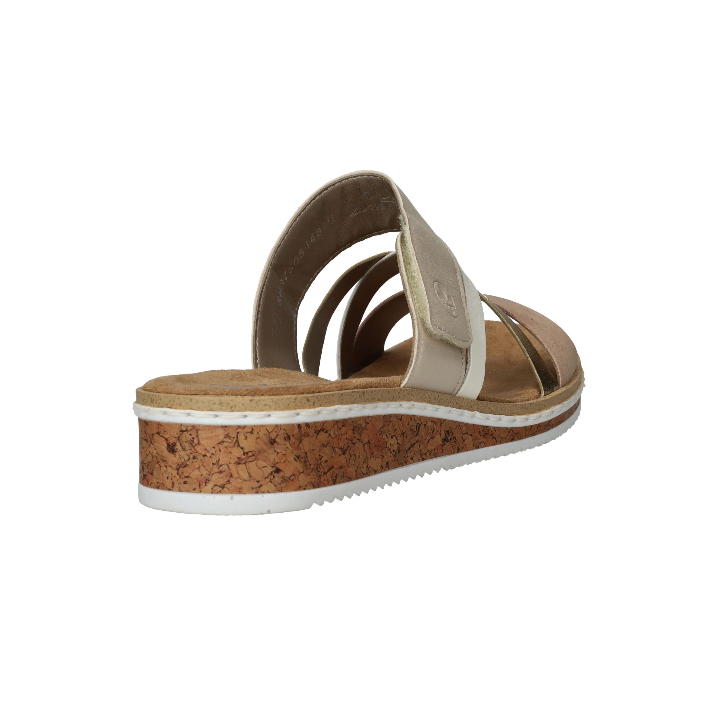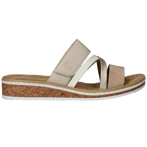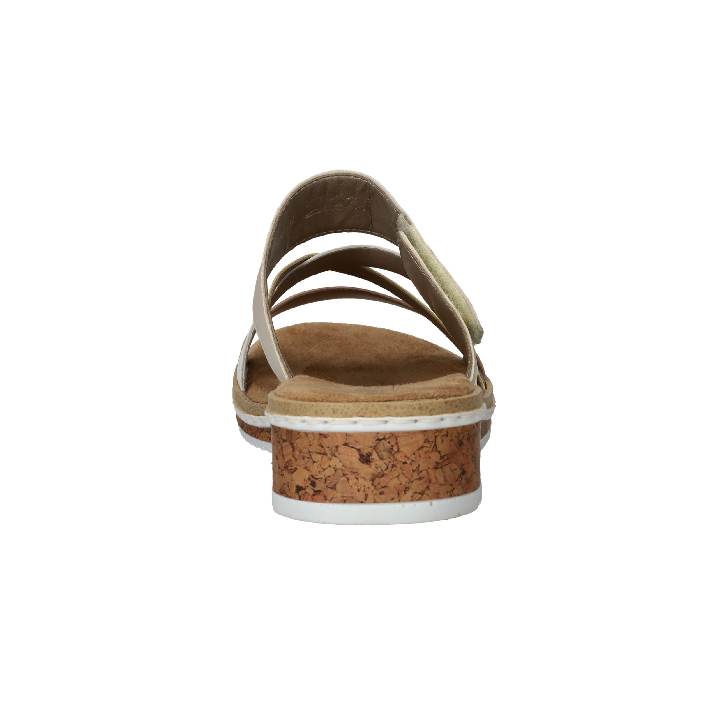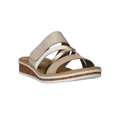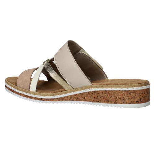 Deze fijne Rieker slipper heeft leuke gekleurde bandjes in neutrale kleuren.
