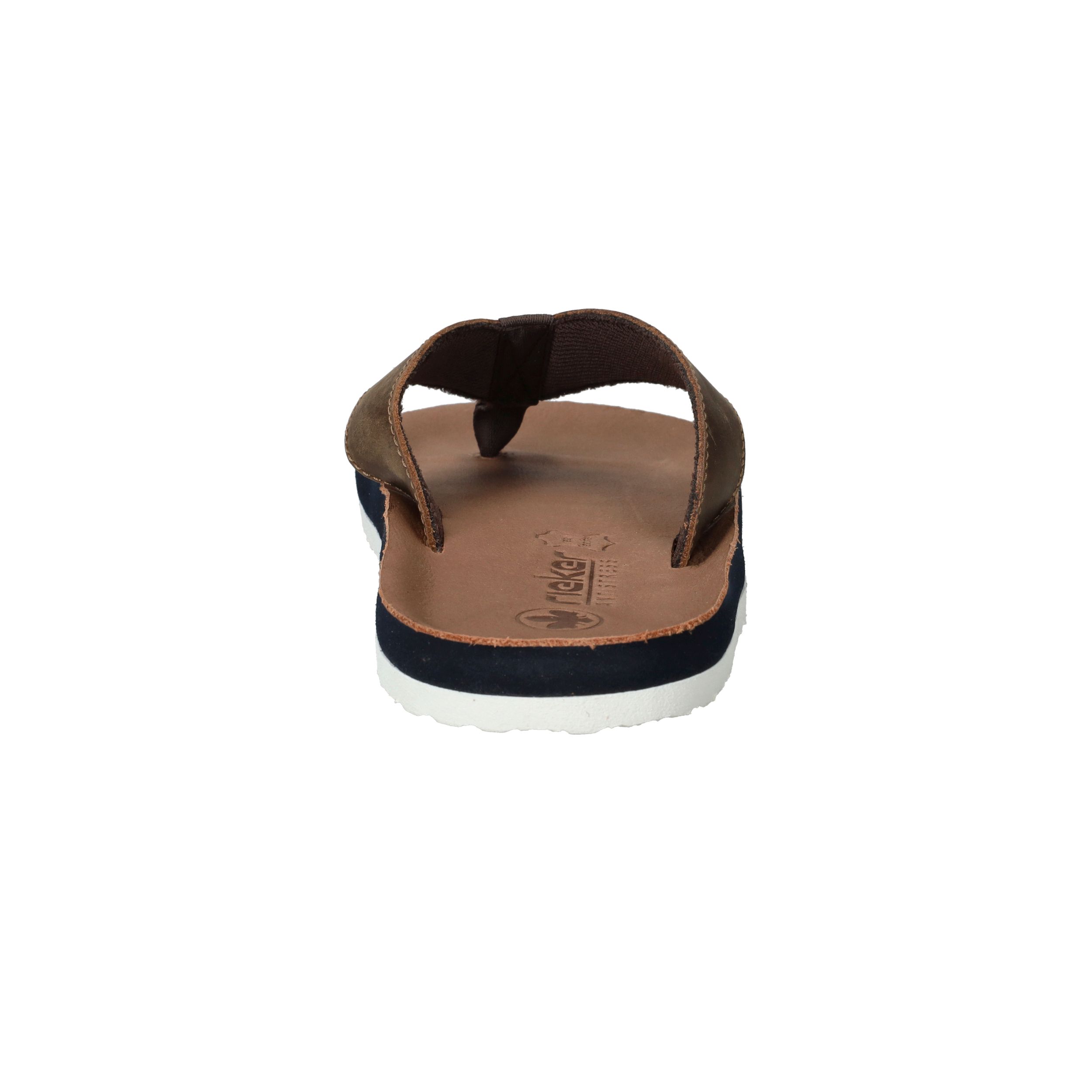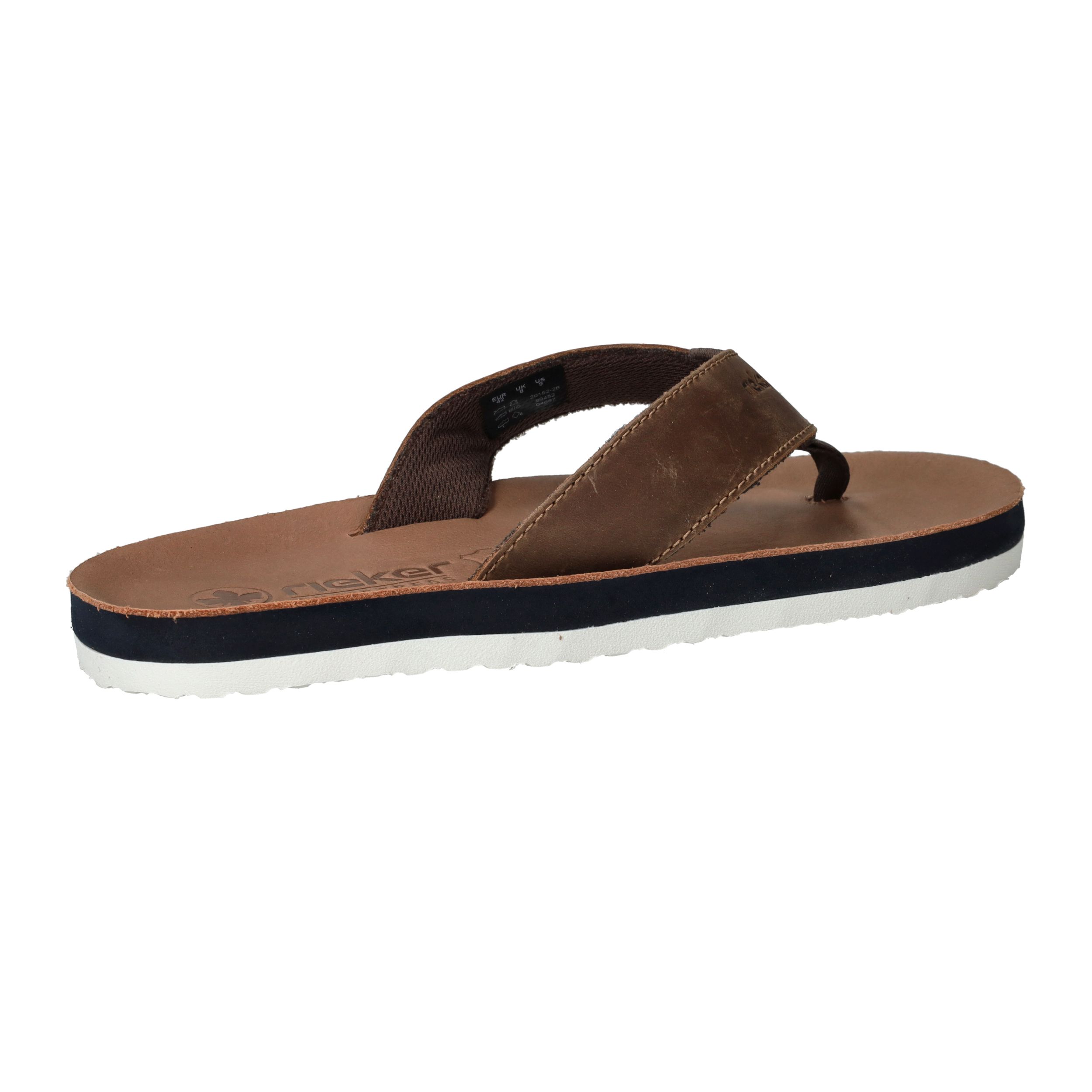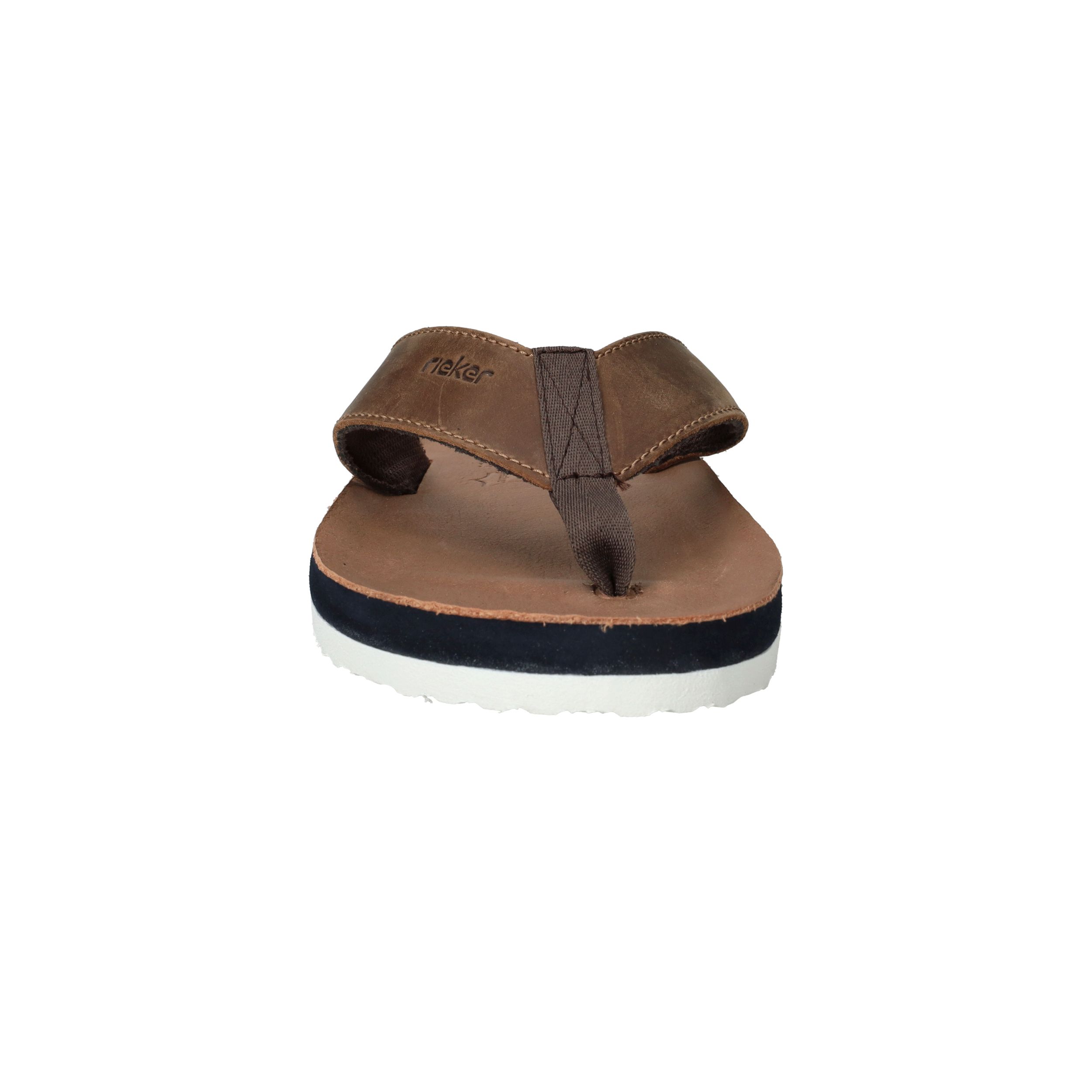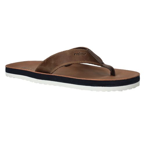 Fijne Rieker teenslipper voor heren. De slipper heeft een warme bruine kleur en een comfortabel 'Antistress' voetbed.