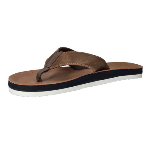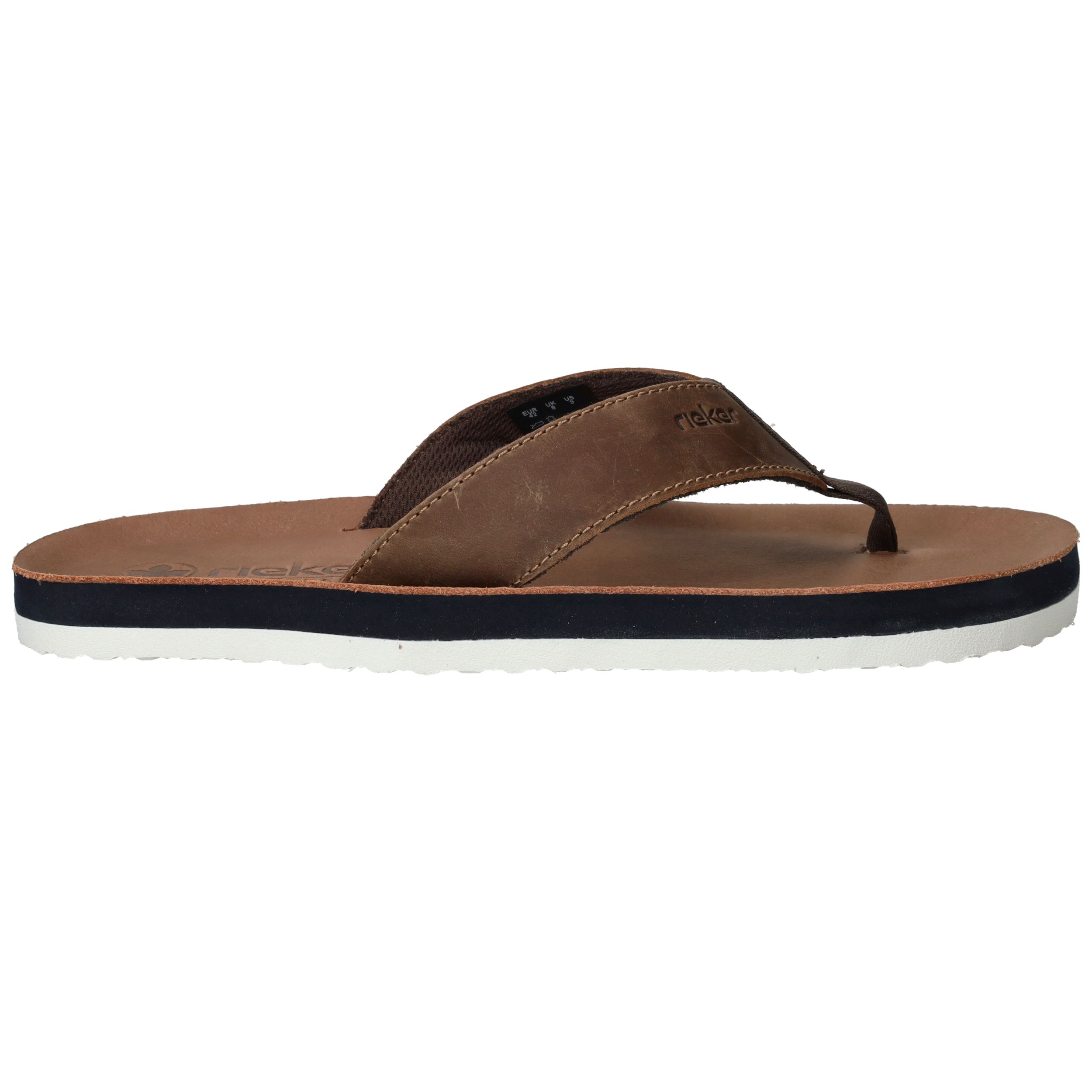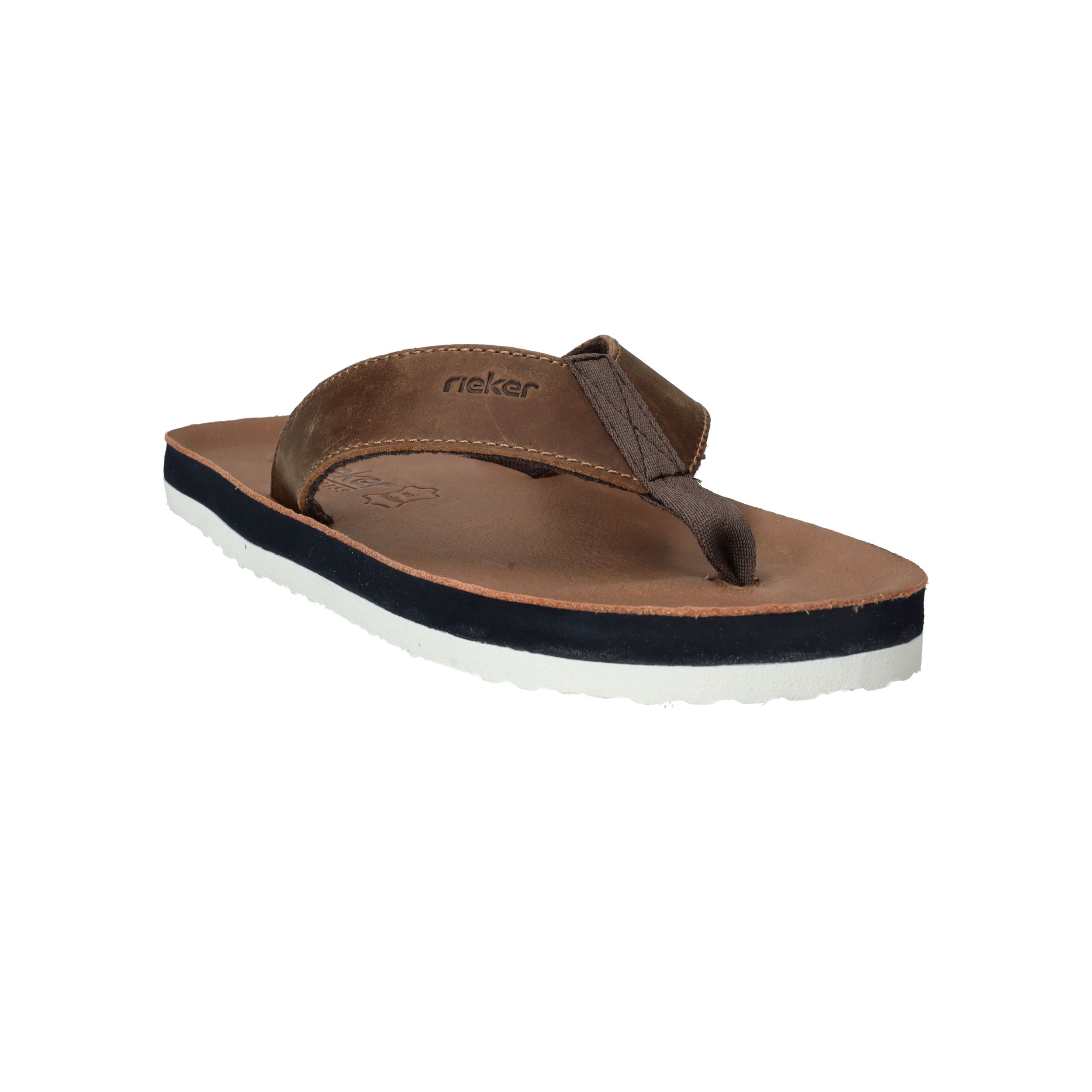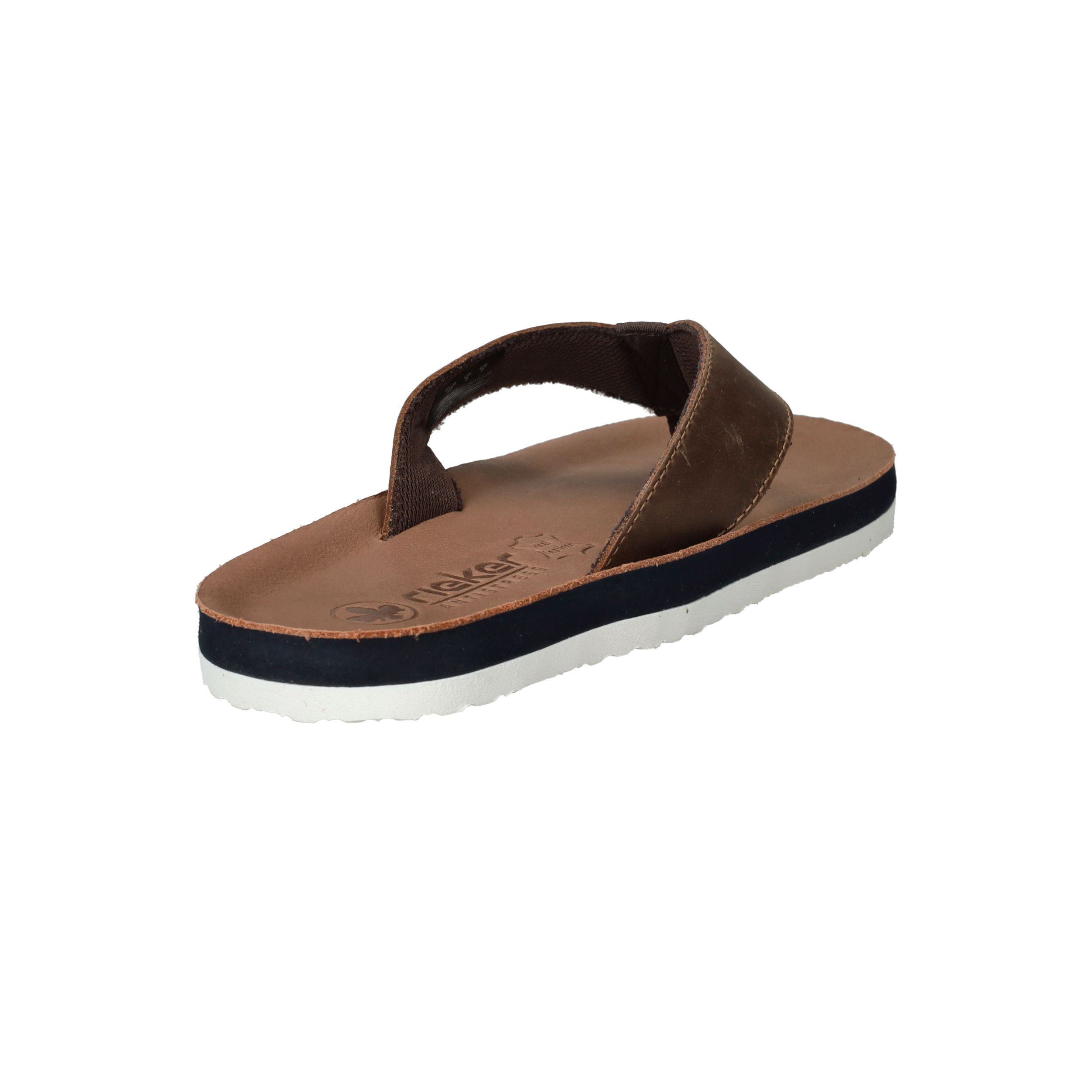 Fijne Rieker teenslipper voor heren. De slipper heeft een warme bruine kleur en een comfortabel 'Antistress' voetbed.