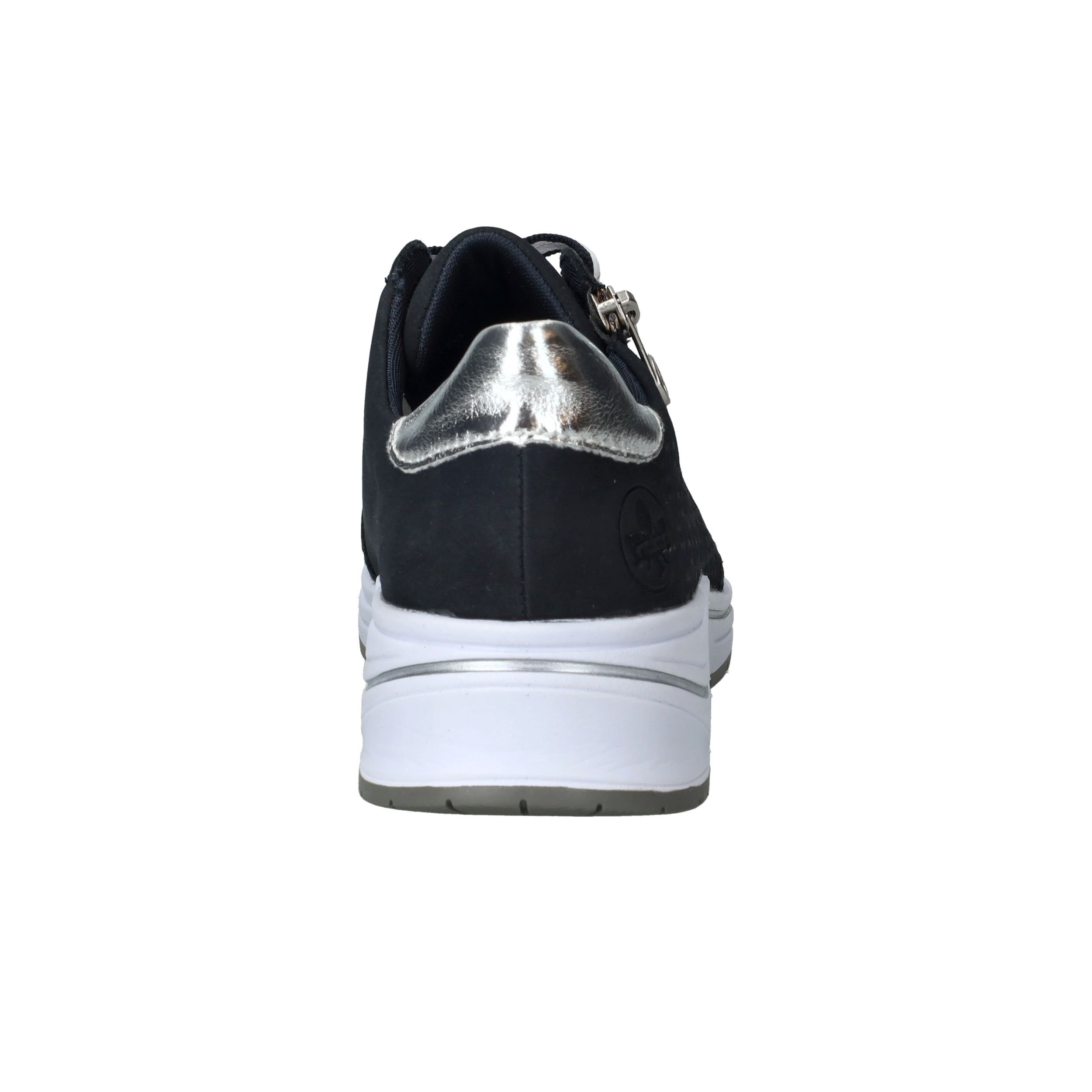 Zoek je een stijlvolle sneaker die past bij al je outfits? Ga dan voor deze donkerblauwe Rieker damessneaker die ook nog eens heel lekker zit door het voorgevormde voetbed.