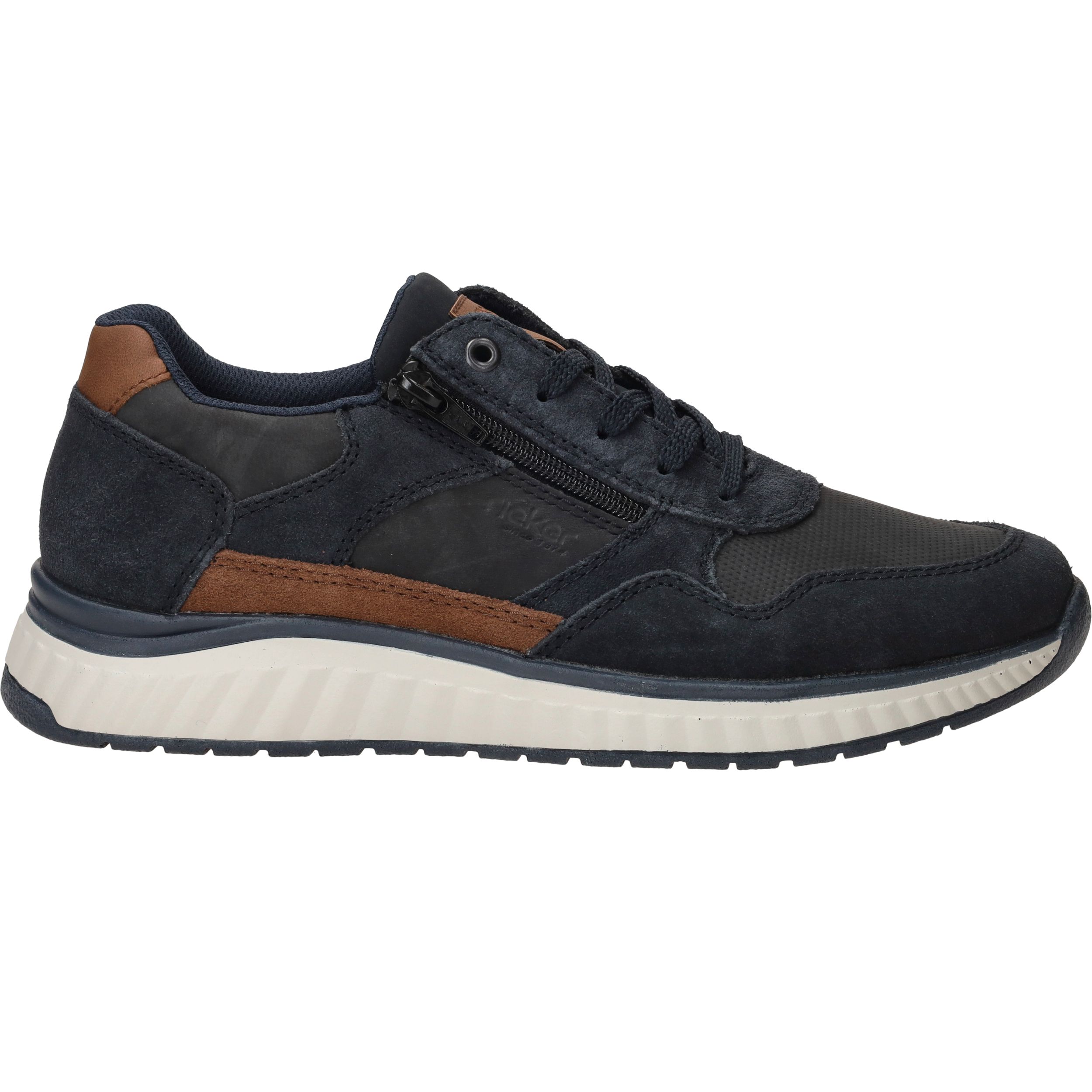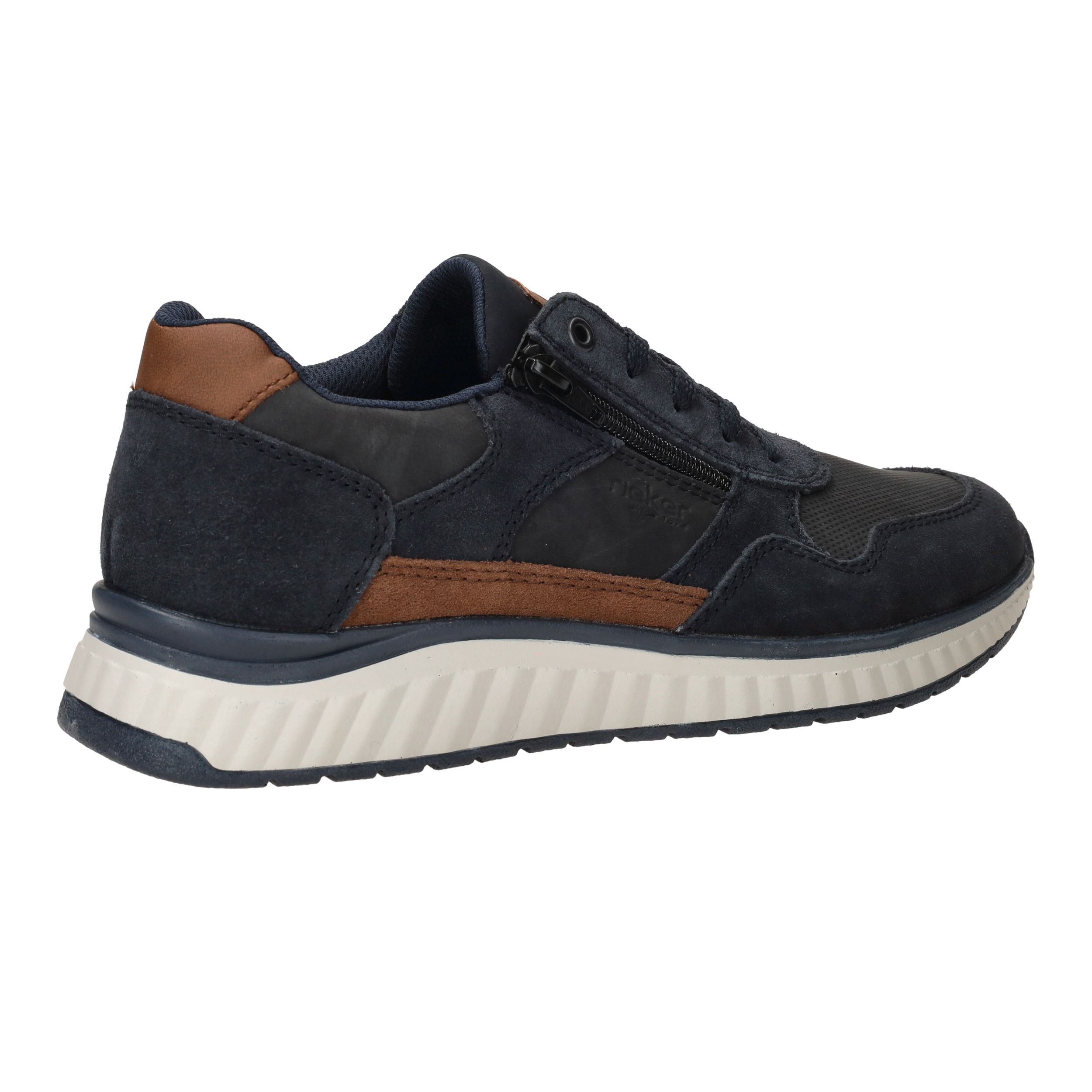 Sportieve Rieker sneaker voor heren waar je makkelijk instapt door de veter- en ritssluiting. De donkerblauwe kleur matcht met al je outfits en de sneaker draag je het hele jaar door.
