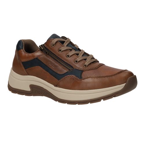Deze Rieker sneaker voor heren draag je het hele jaar door! De bruine herenschoen is gemaakt van leer en loopt heel comfortabel door het voorgevormde voetbed.