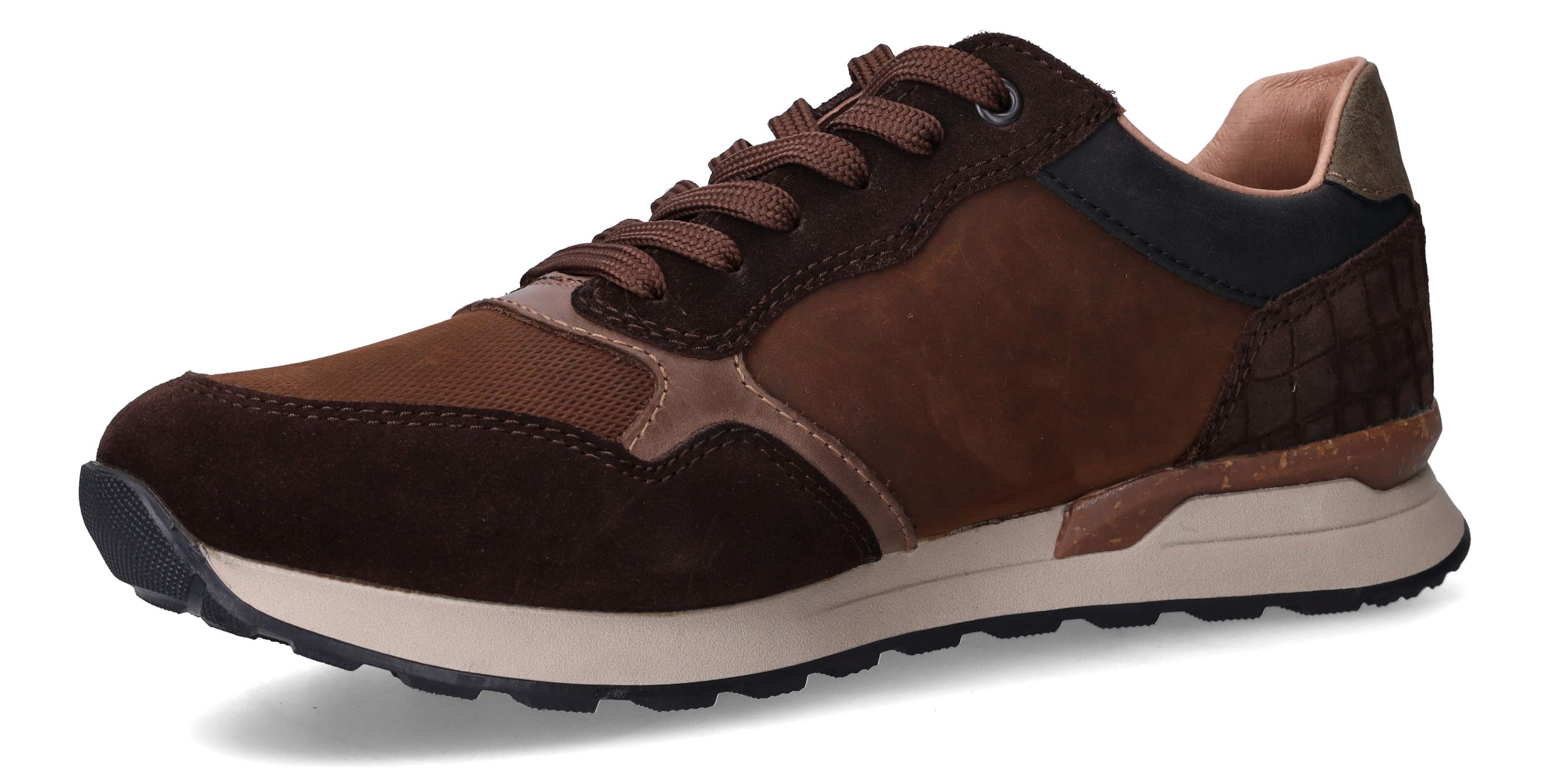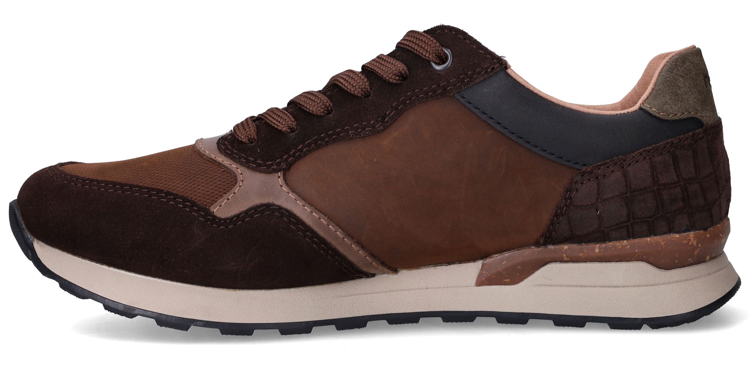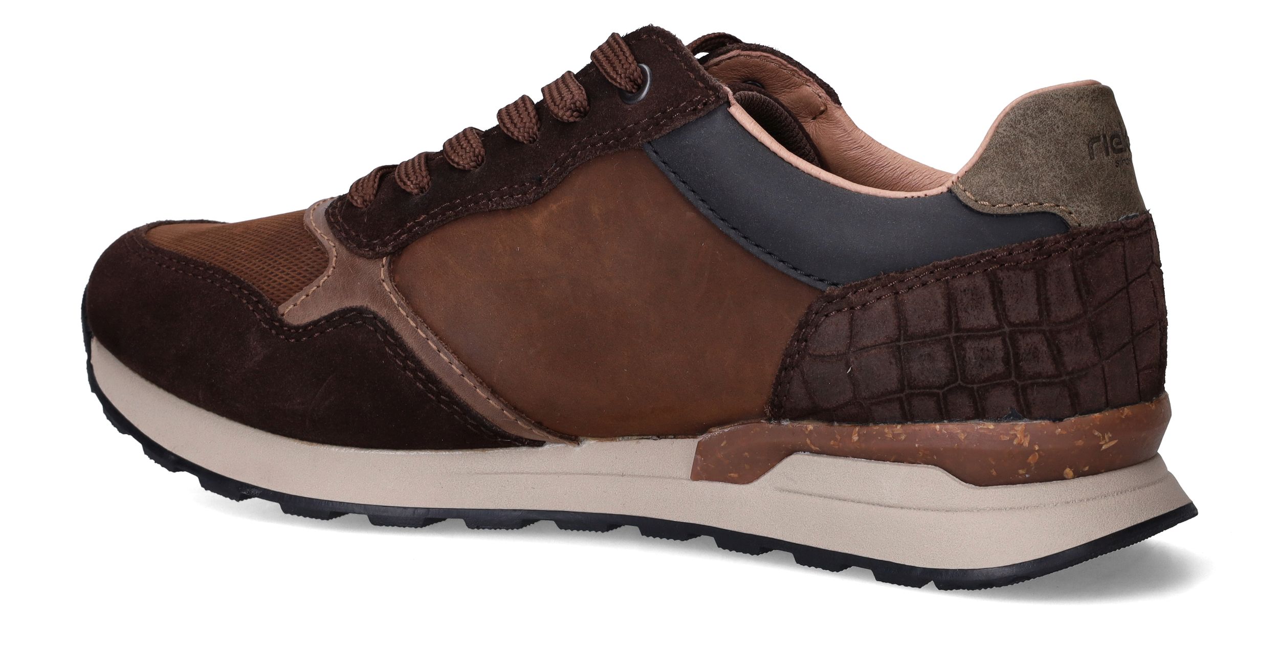 Deze stoere sneakers van Rieker zijn de perfecte combinatie van stijl en comfort voor de moderne man. De rijke mix van suède en leer in warme bruintinten geeft deze heren schoen een robuuste en toch verzorgde uitstraling. Dankzij de comfortabele pasvorm in voetbreedte G 1/2 ervaar je extra ruimte en ondersteuning, zonder in te leveren op stijl of stevigheid.