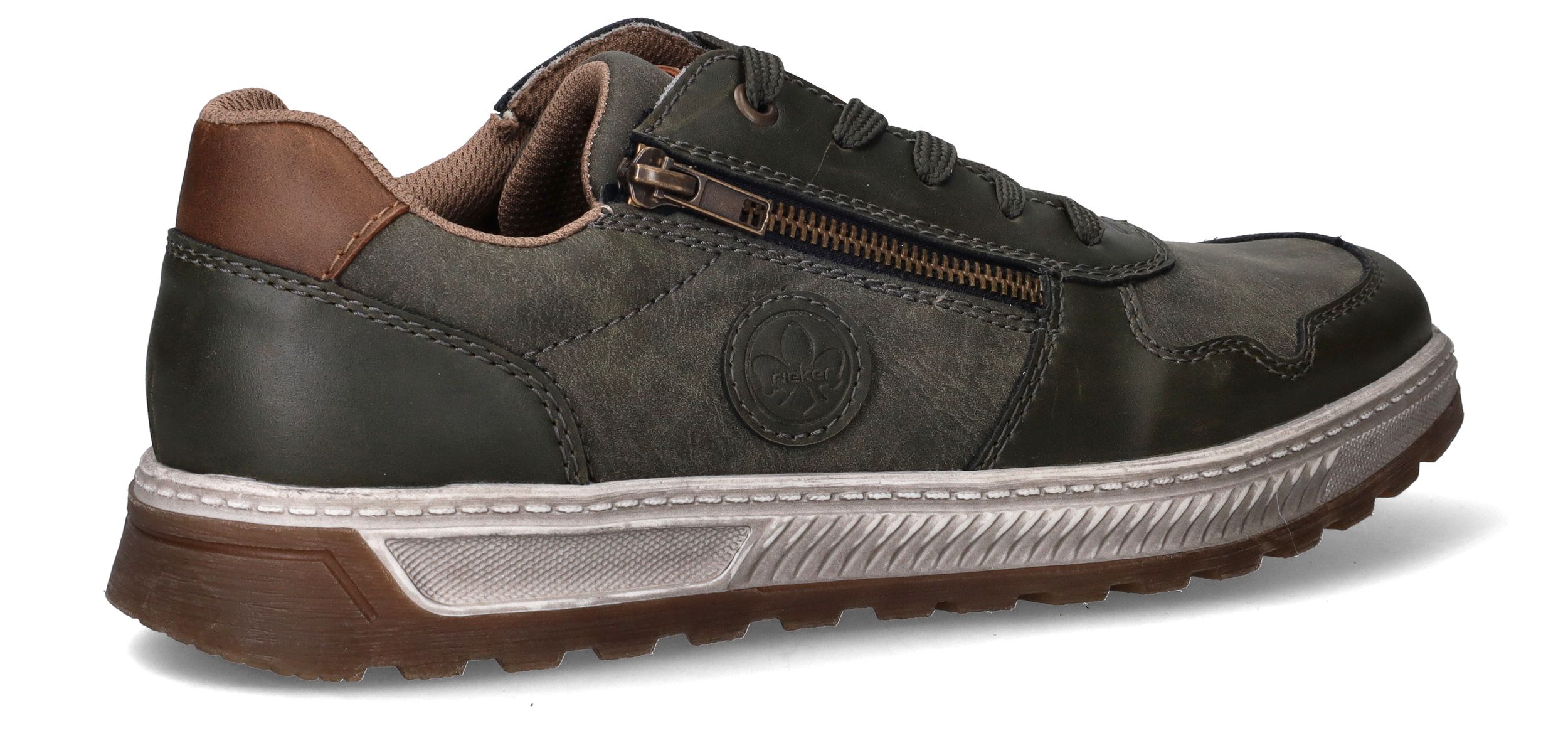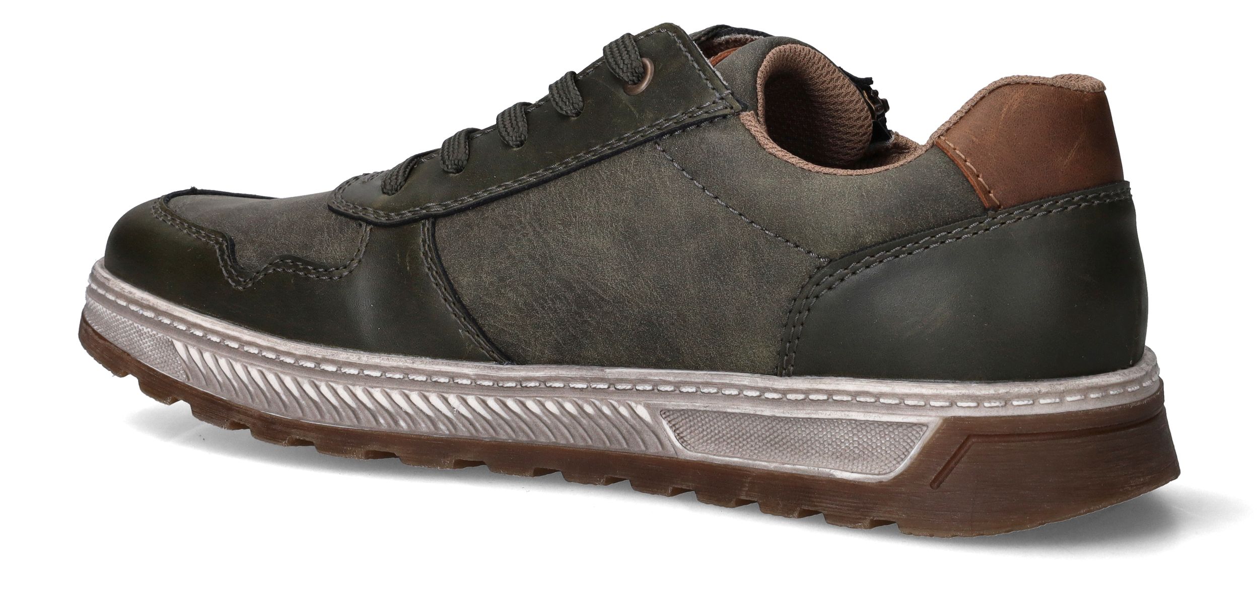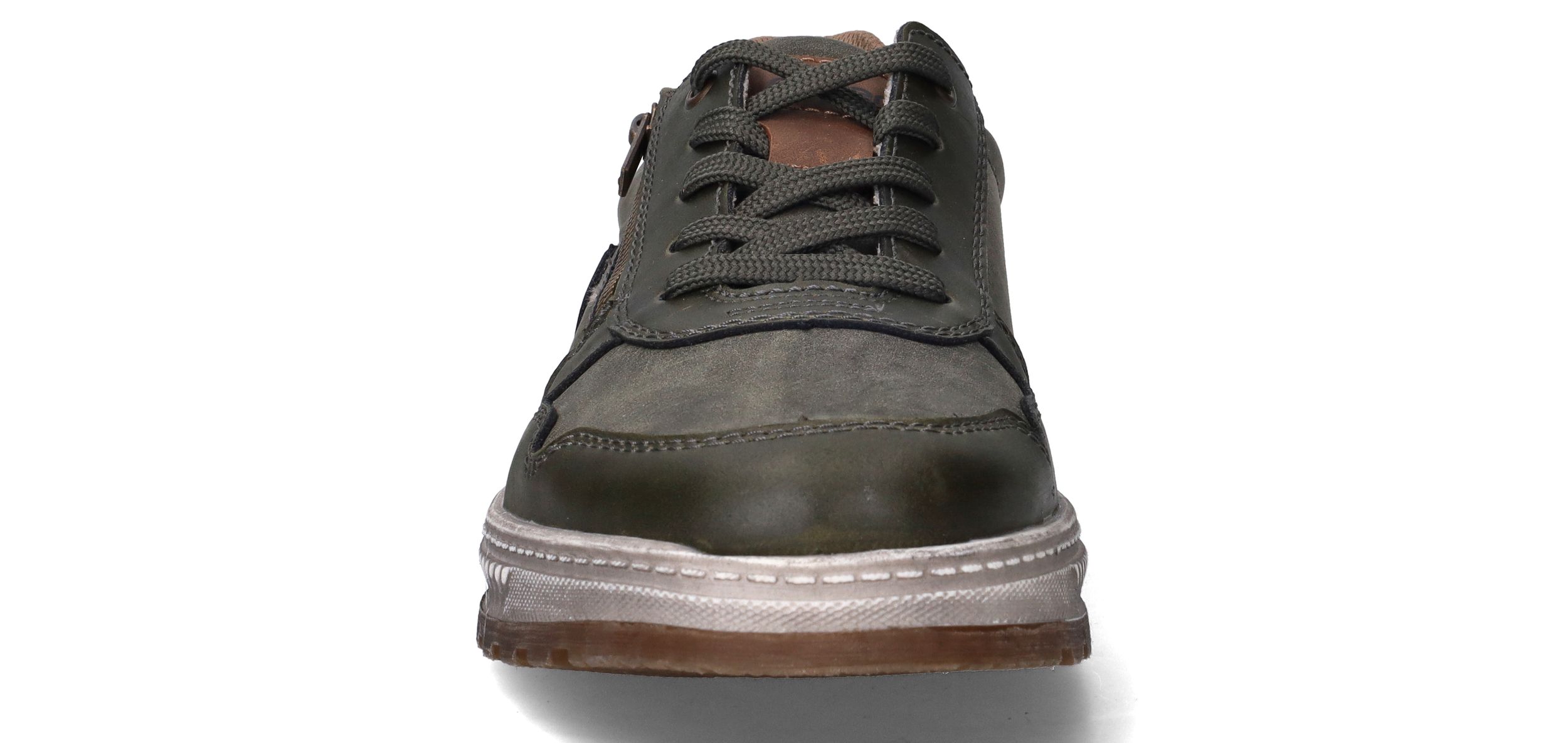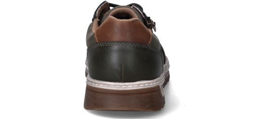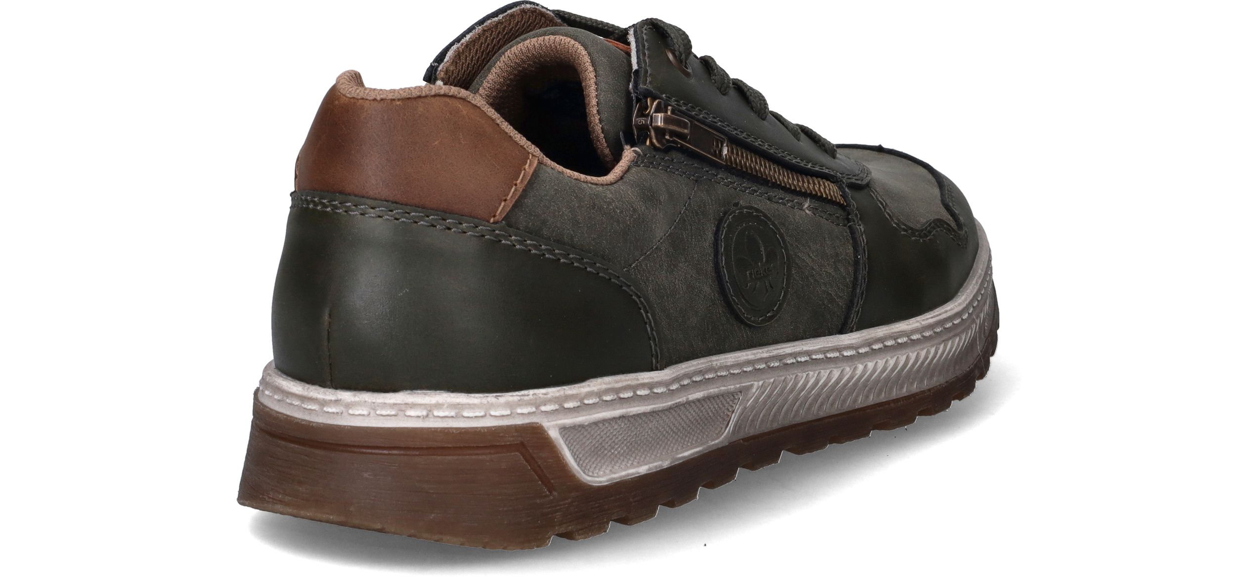 Deze olijfgroene sneakers van Rieker combineren een stoere look met praktisch comfort. Het stevige kunstleer is afgewerkt met vintage details en een functionele rits voor extra gemak. Dankzij de bredere pasvorm zitten deze heren schoenen heerlijk, ook wanneer je wat meer ruimte nodig hebt rond de voorvoet.