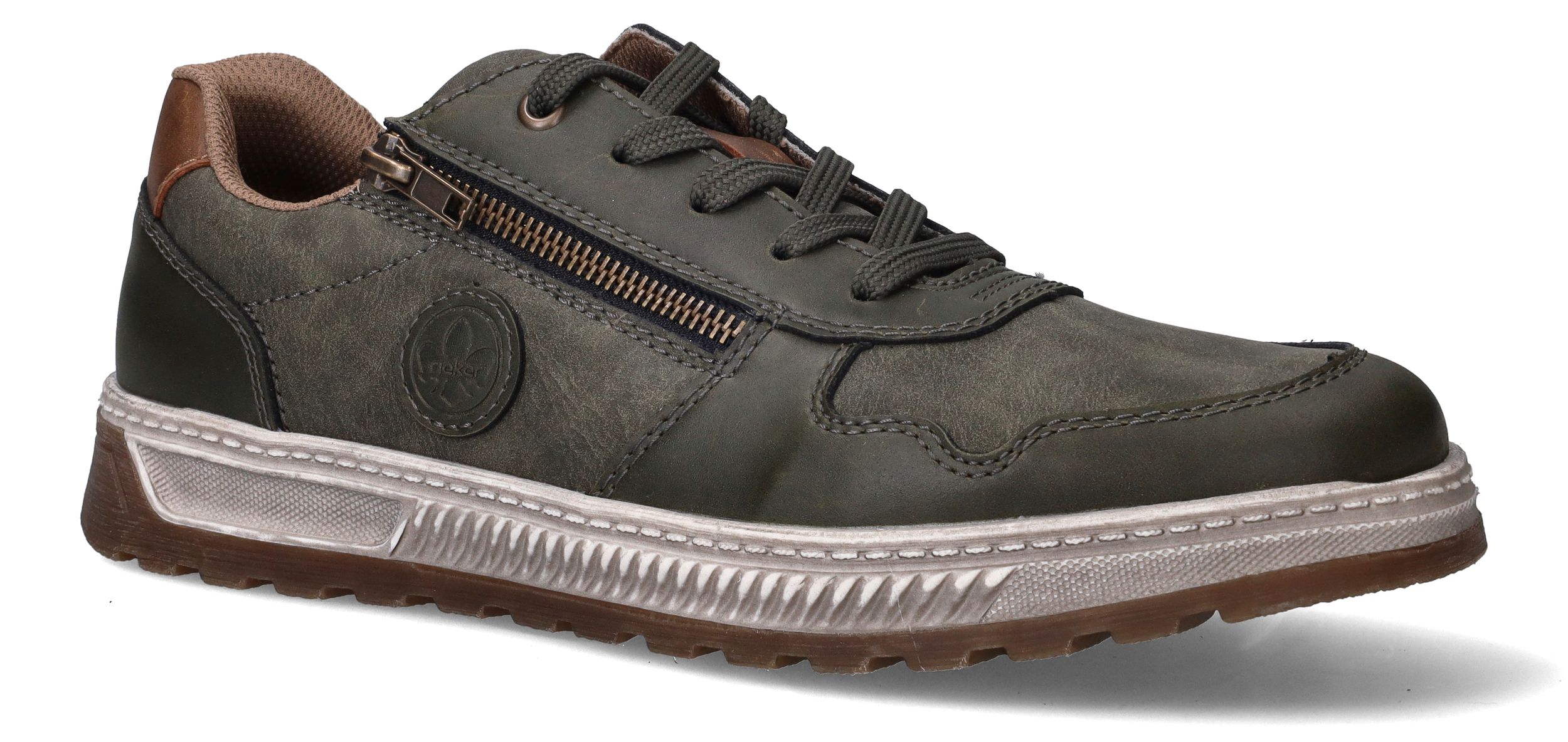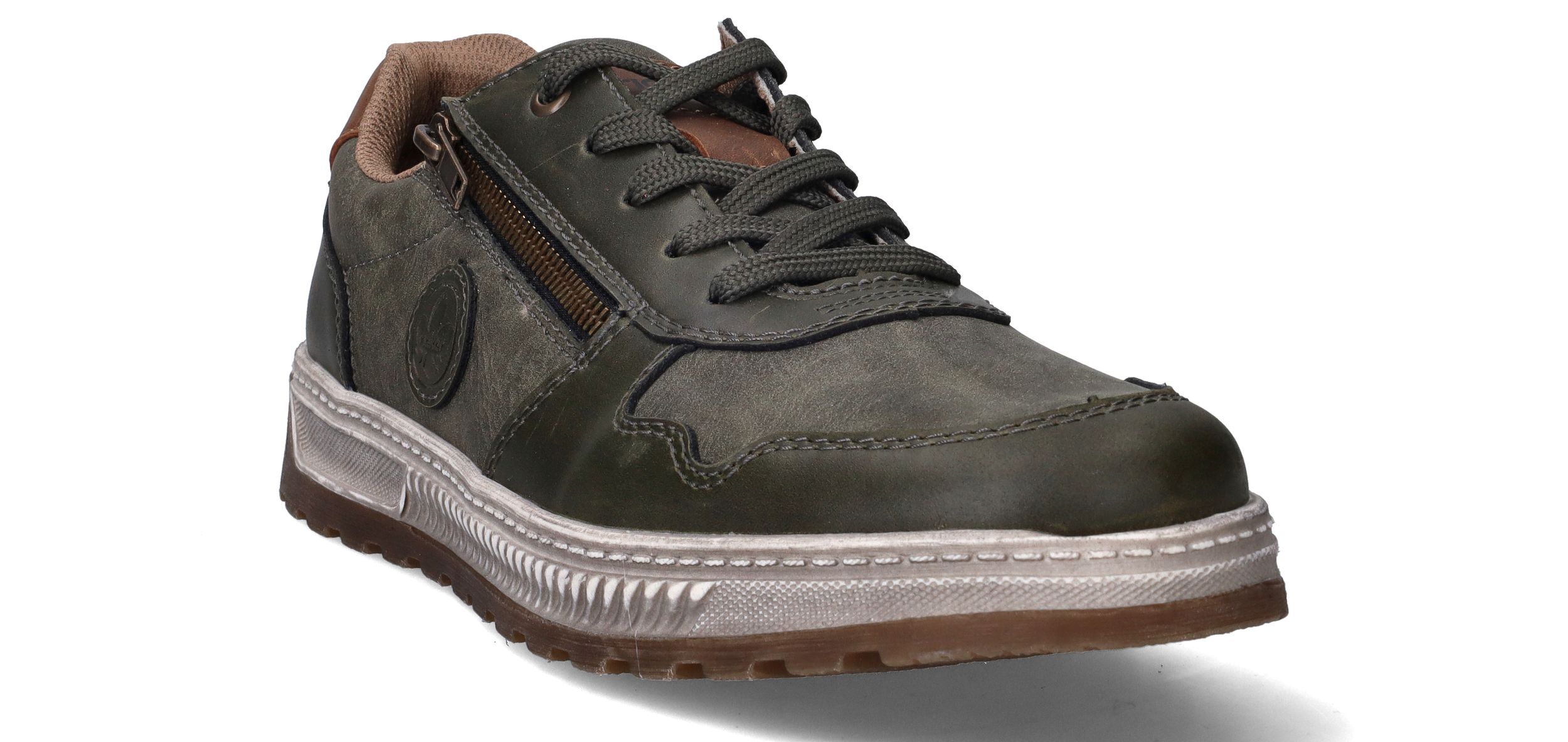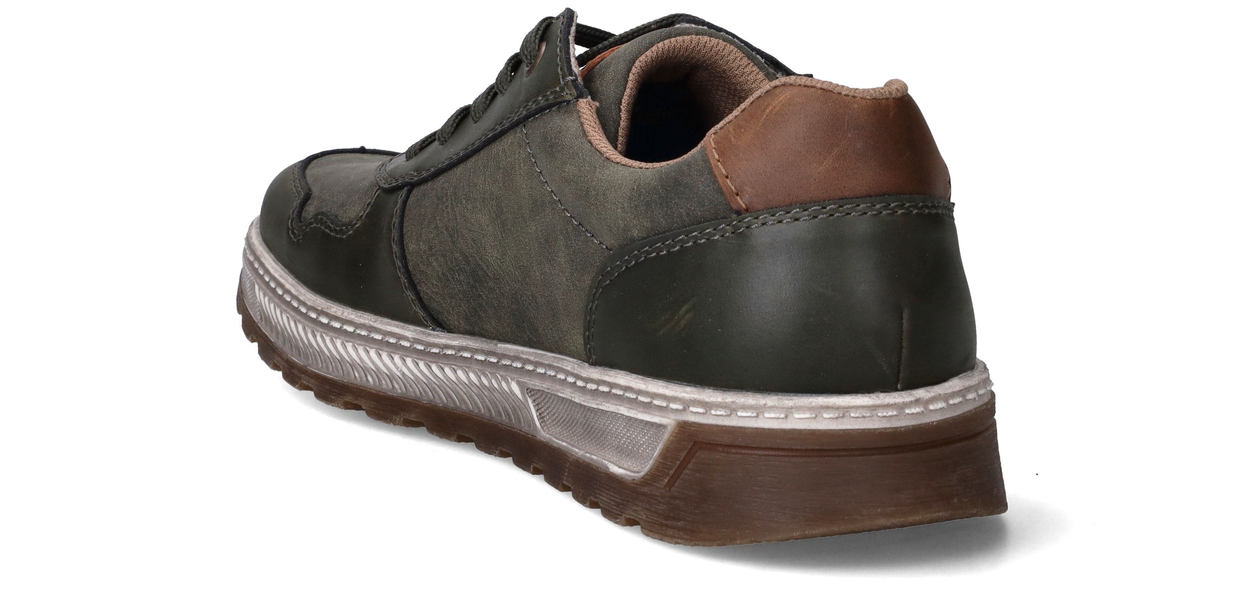 Deze olijfgroene sneakers van Rieker combineren een stoere look met praktisch comfort. Het stevige kunstleer is afgewerkt met vintage details en een functionele rits voor extra gemak. Dankzij de bredere pasvorm zitten deze heren schoenen heerlijk, ook wanneer je wat meer ruimte nodig hebt rond de voorvoet.