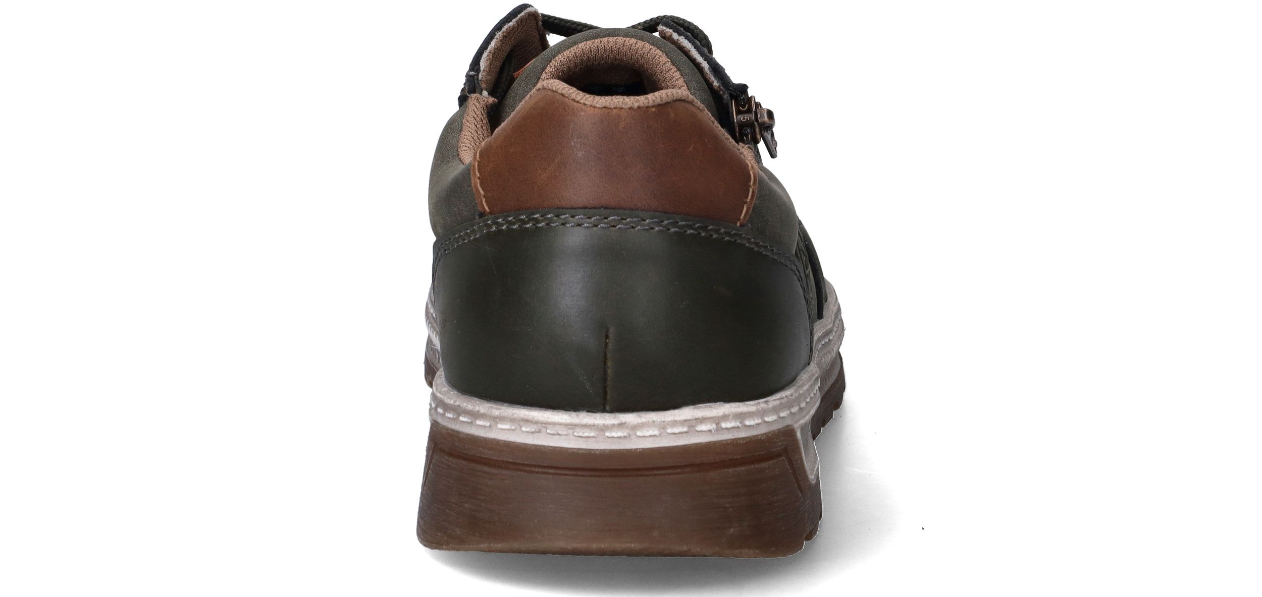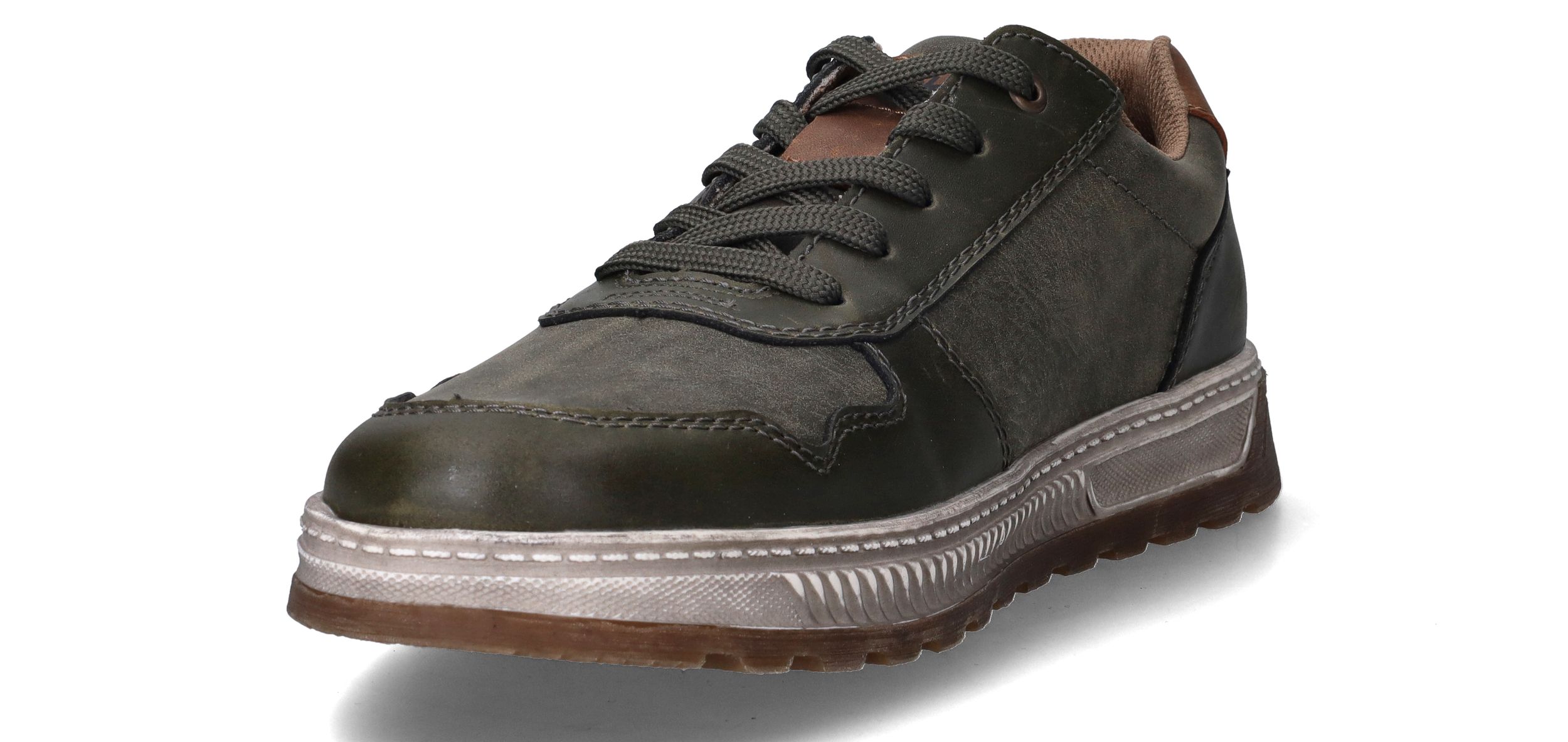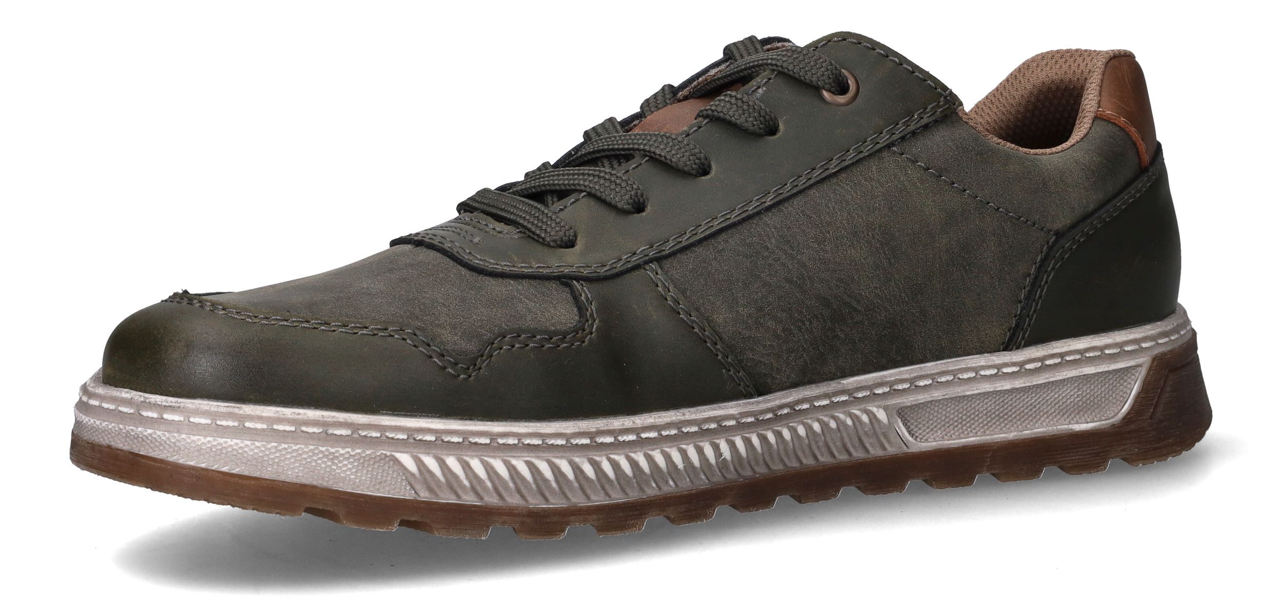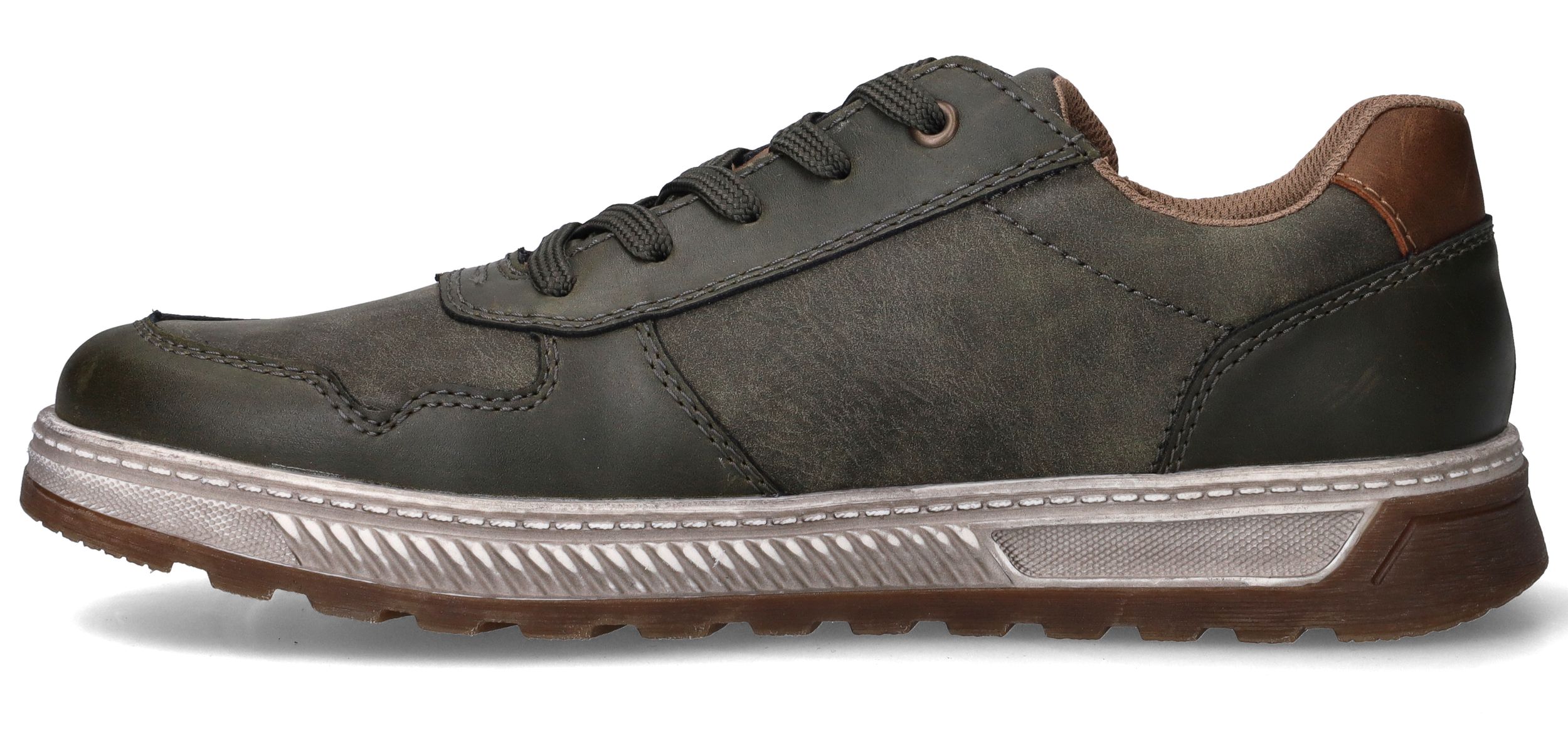 Deze olijfgroene sneakers van Rieker combineren een stoere look met praktisch comfort. Het stevige kunstleer is afgewerkt met vintage details en een functionele rits voor extra gemak. Dankzij de bredere pasvorm zitten deze heren schoenen heerlijk, ook wanneer je wat meer ruimte nodig hebt rond de voorvoet.