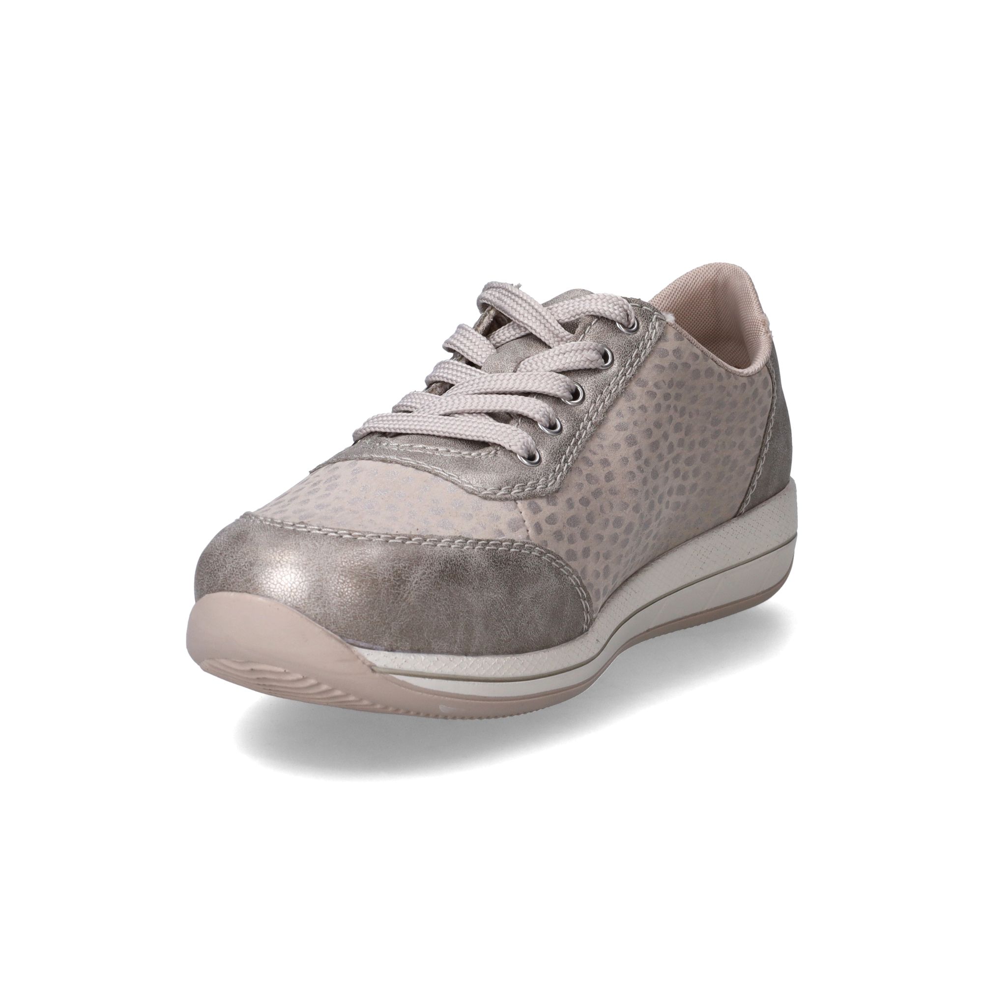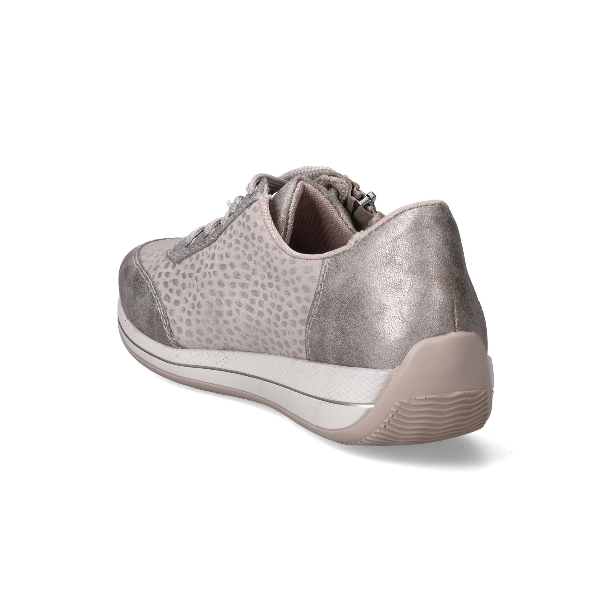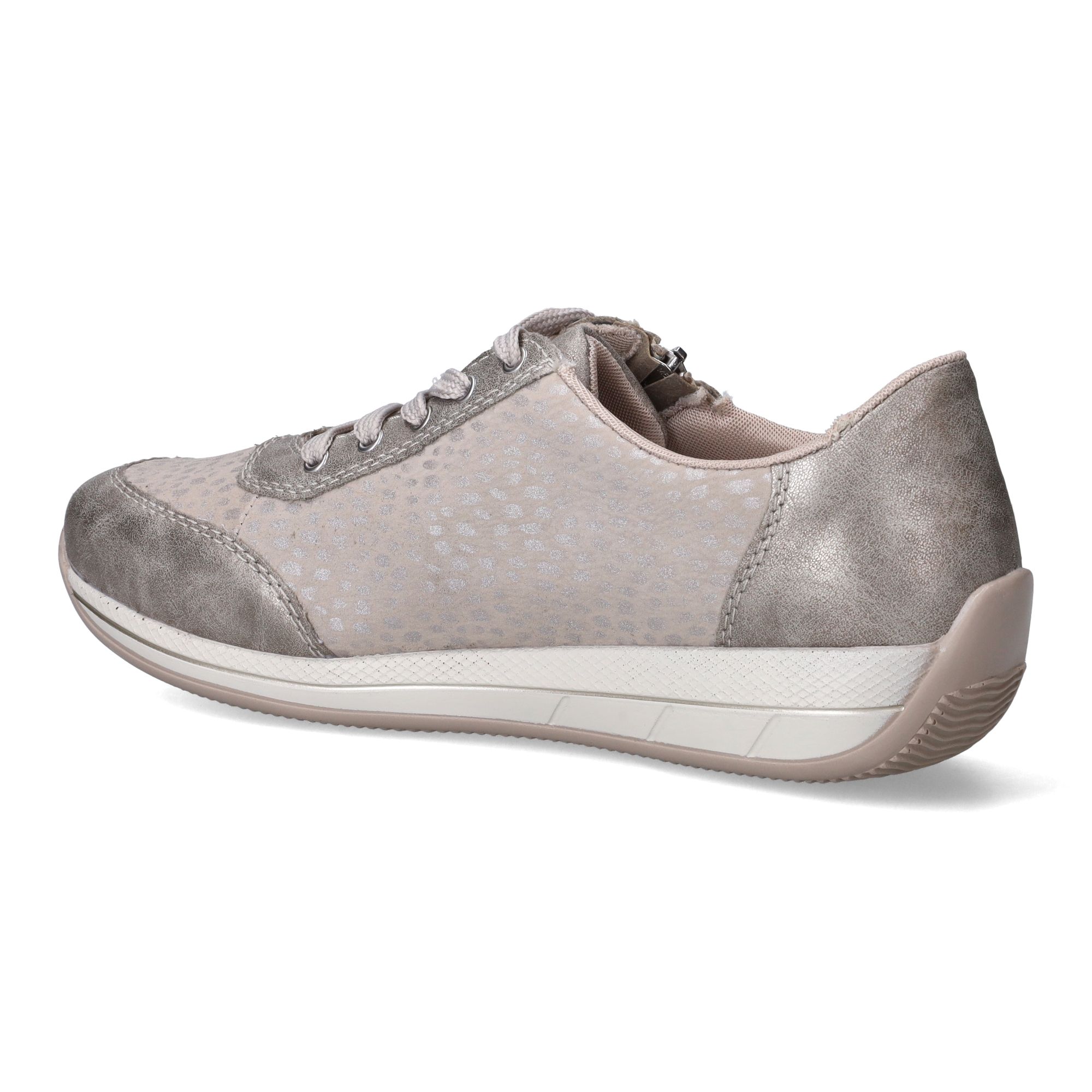 Deze glanzende zilverkleurige dames sneakers van Rieker zijn een echte blikvanger. De subtiele details en het elegante design maken deze schoen perfect voor dames die zowel stijl als comfort waarderen. Stel je eens voor, je stapt de deur uit en voelt direct hoe de schoen zich naar je voet vormt, alsof hij speciaal voor jou gemaakt is. De materialen zorgen voor een goede drukverdeling, waardoor je voeten de hele dag ontspannen aanvoelen, zelfs na lange wandelingen. Het is een schoen die je met gemak combineert met diverse outfits, van een sportieve look tot een meer geklede stijl, en die je voeten een stabiel en prettig loopgevoel geeft.