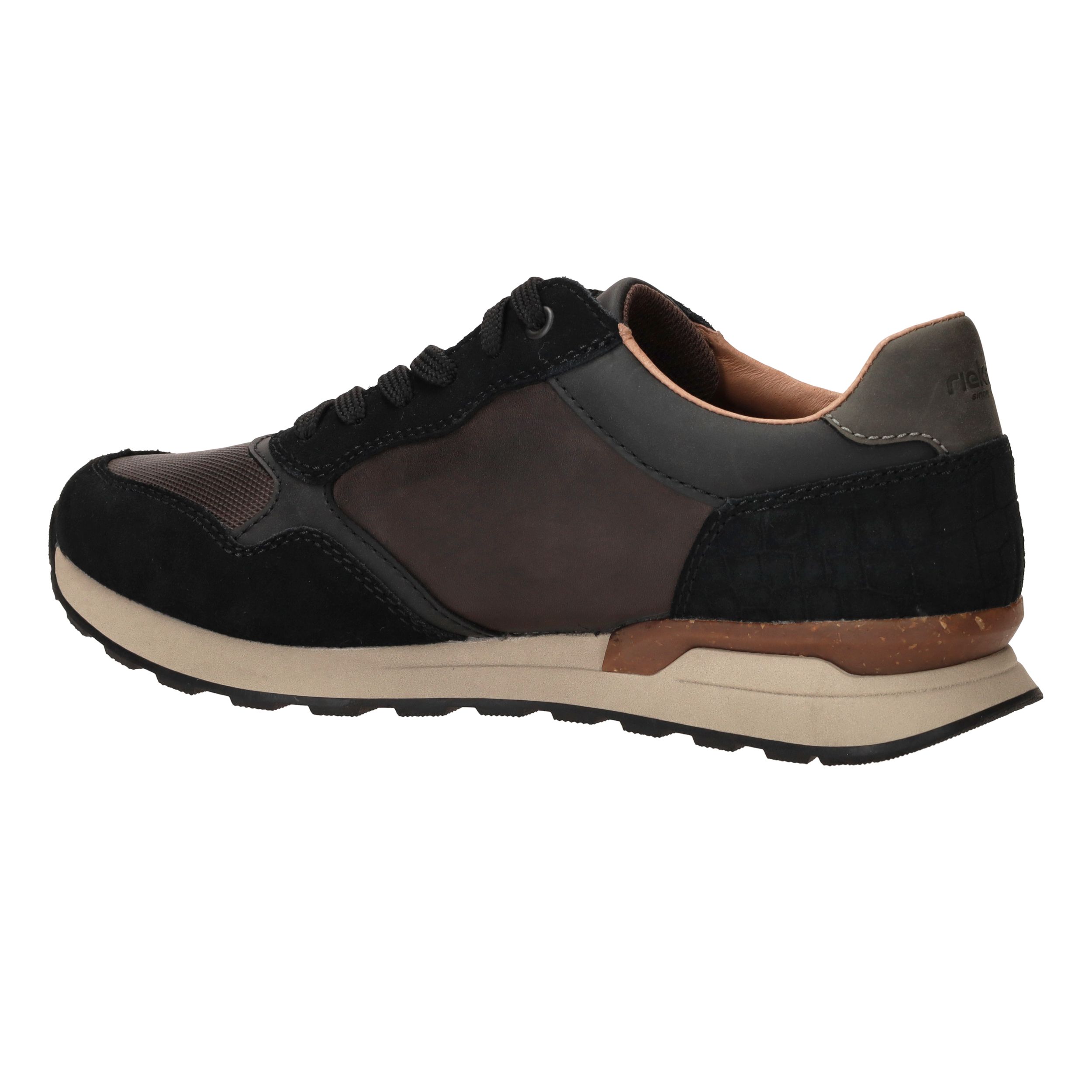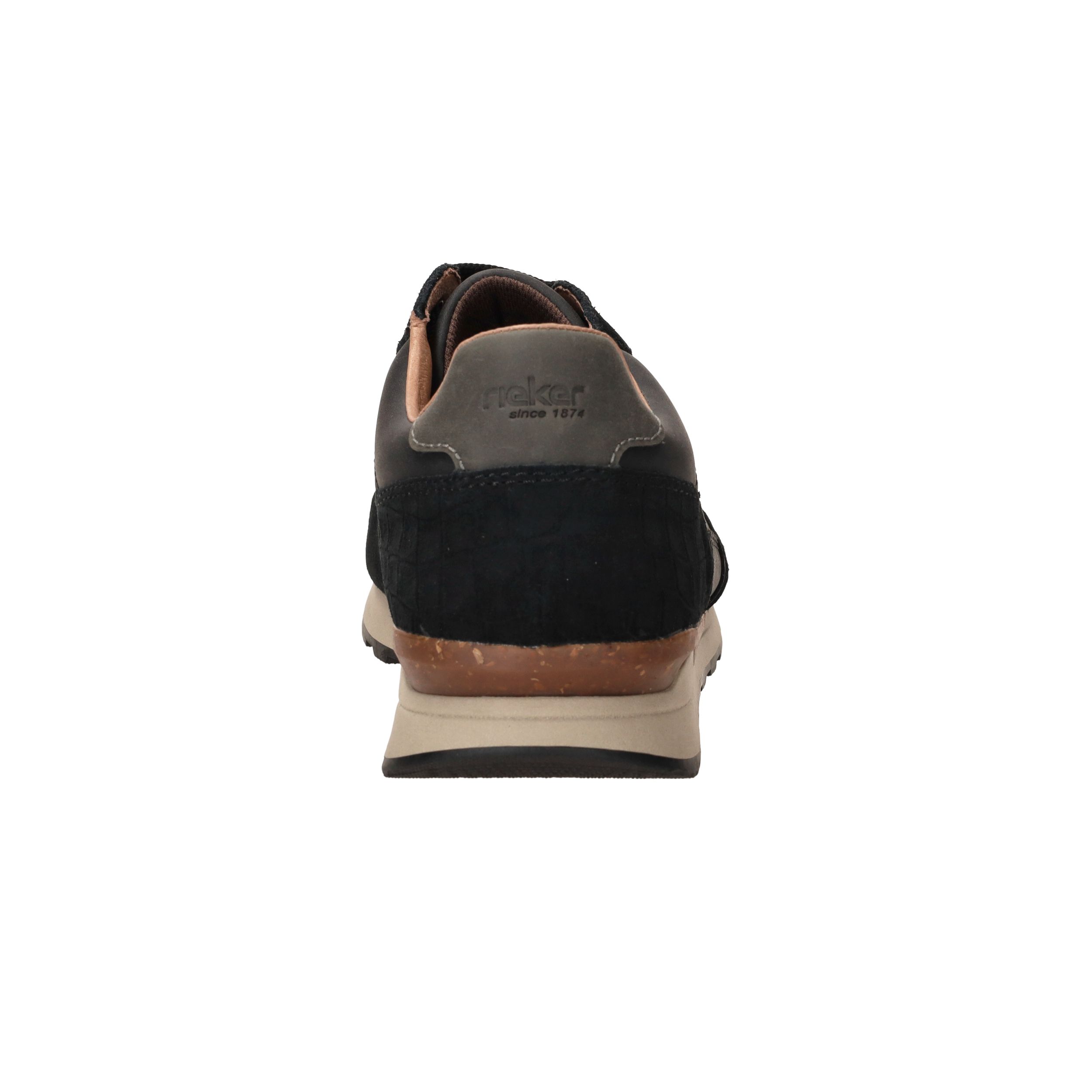 Deze stijlvolle sneaker van Rieker is perfect voor wie houdt van comfort én uitstraling. Het zwarte design met leer en synthetische materialen geeft de herensneaker een sportieve en moderne uitstraling. Dankzij het uitneembare voetbed is dit model ideaal voor wie steunzolen gebruikt of extra comfort zoekt.