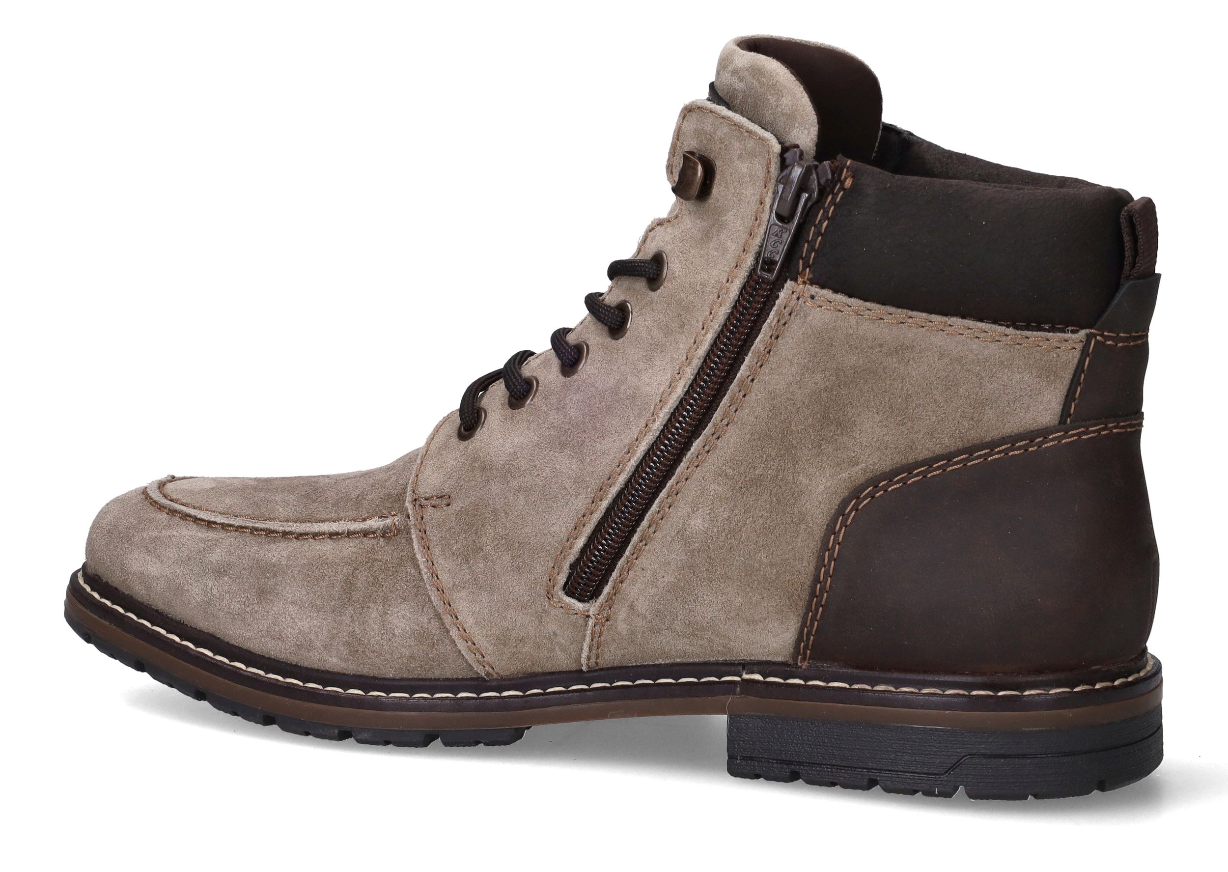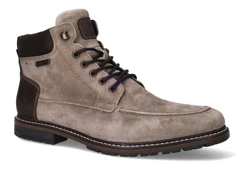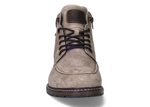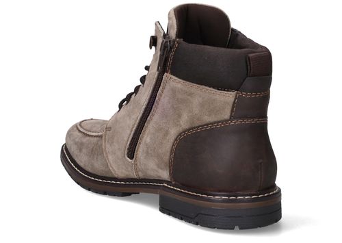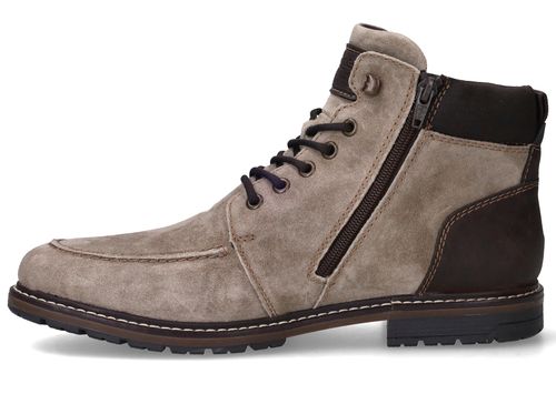 Deze stoere Rieker heren boots combineren het luxe gevoel van zacht suède met de duurzaamheid van kunstleer. Dankzij voetbreedte G bieden ze extra ruimte en comfort, ideaal voor mannen die net wat bredere schoenen nodig hebben. Het tijdloze ontwerp in taupe met donkerbruine accenten maakt ze perfect voor zowel casual als nette gelegenheden.