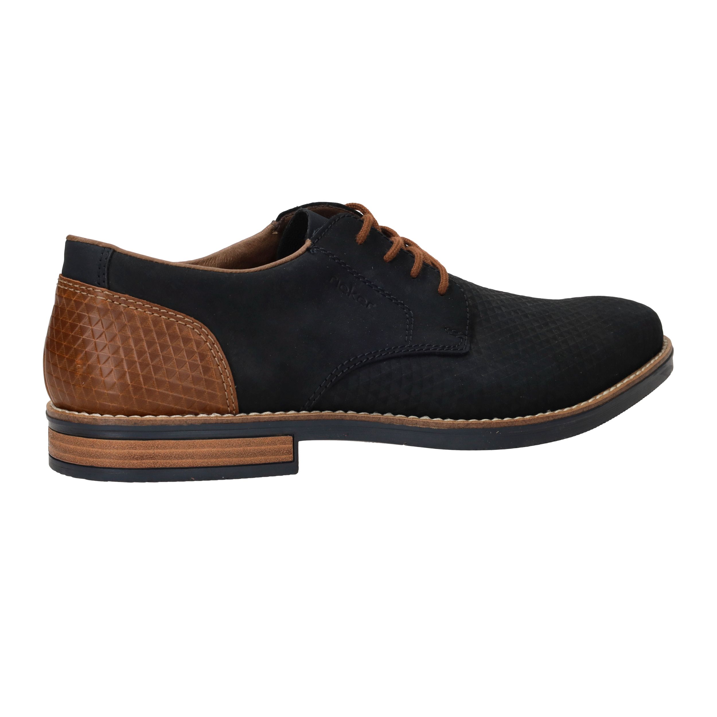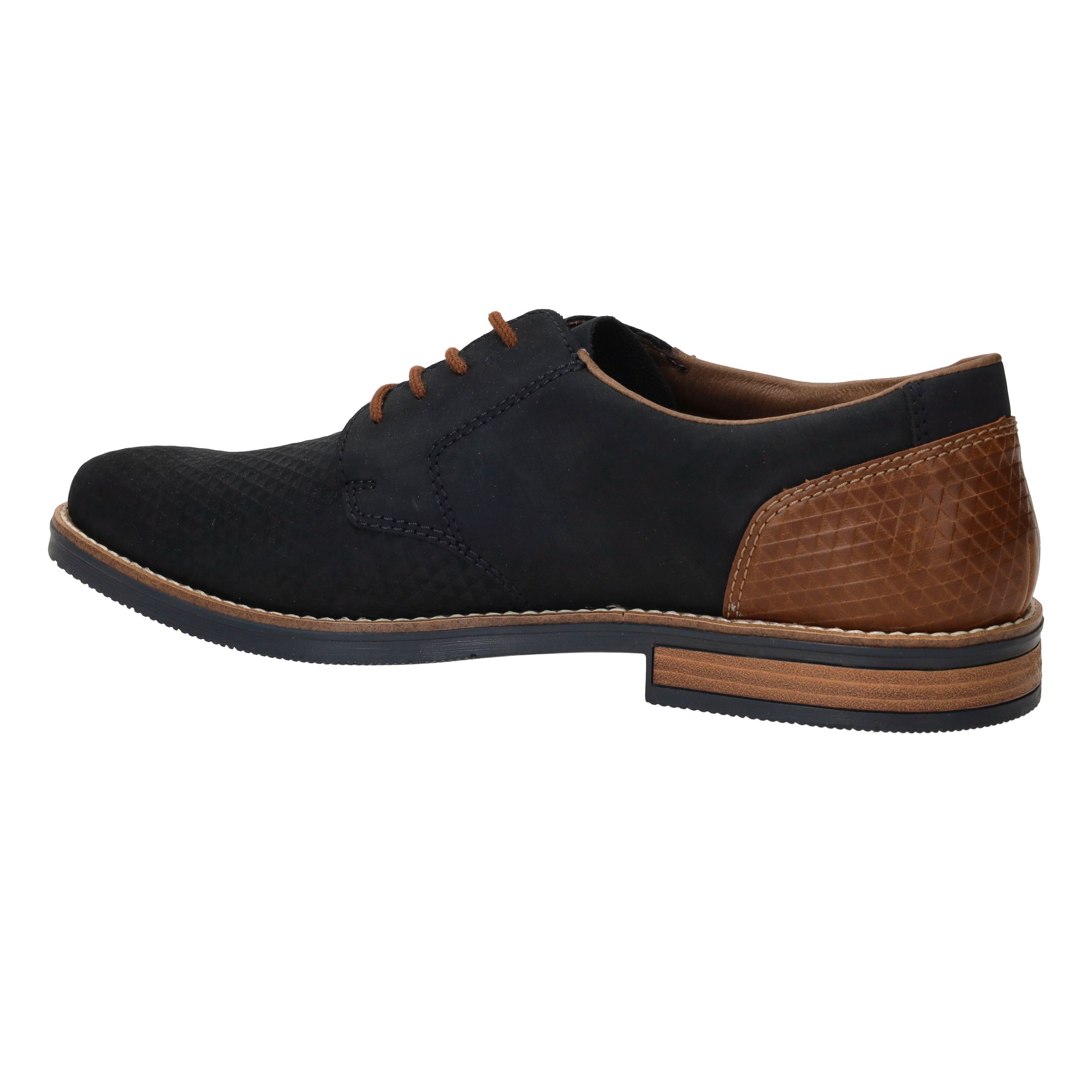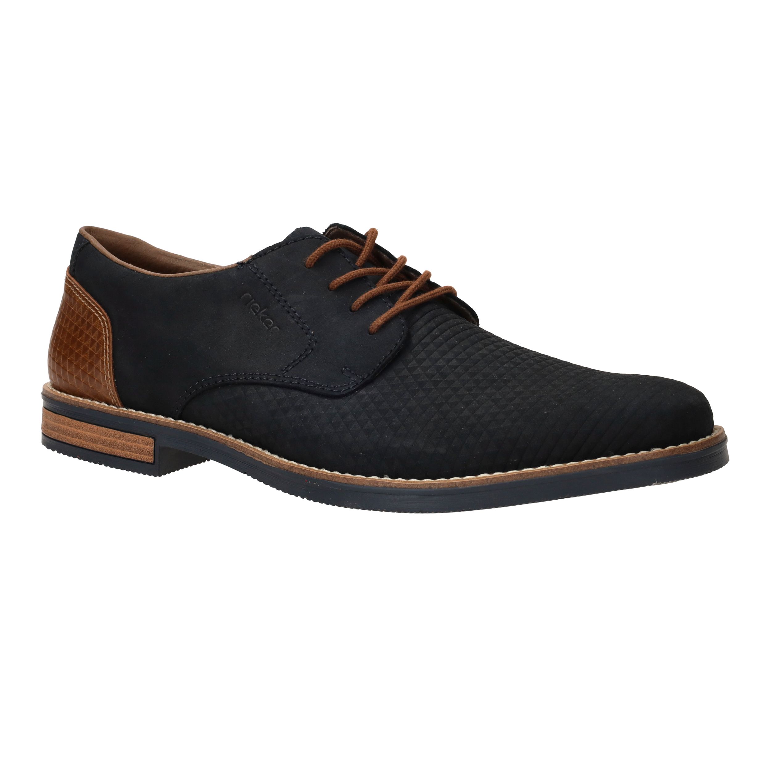 Deze fraaie blauwe Rieker veterschoen draag je het hele jaar door. De mooie cognac accenten maken de schoen helemaal af.