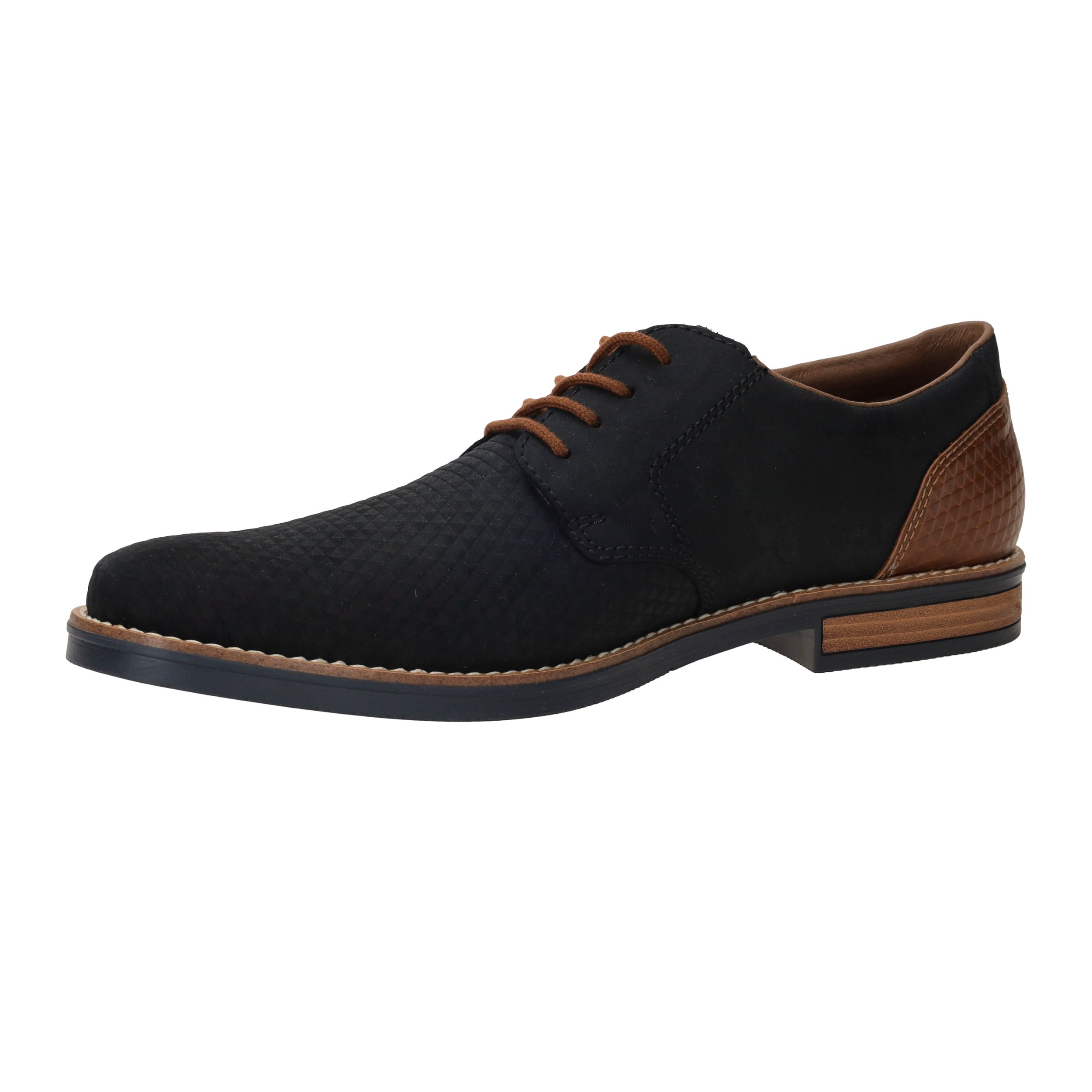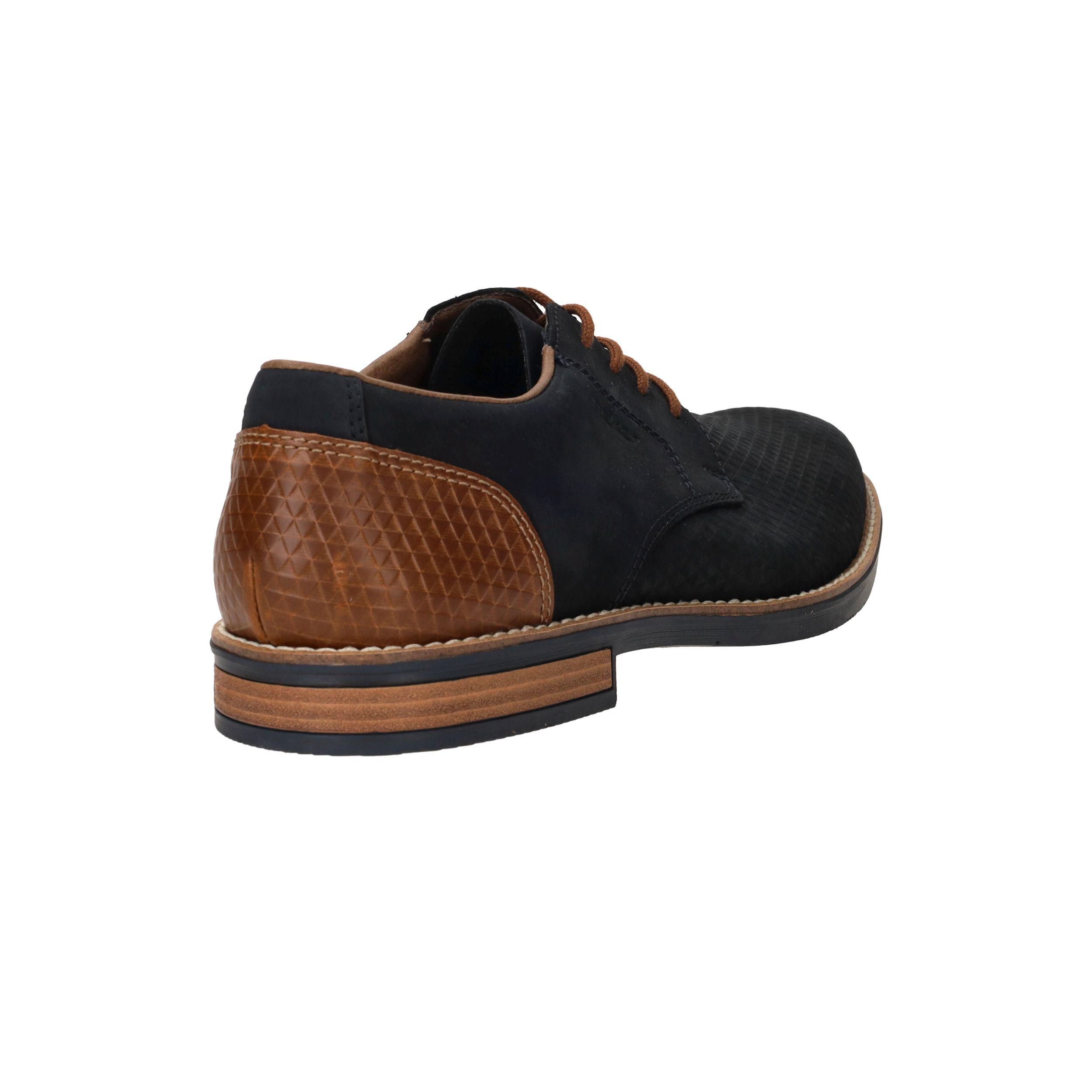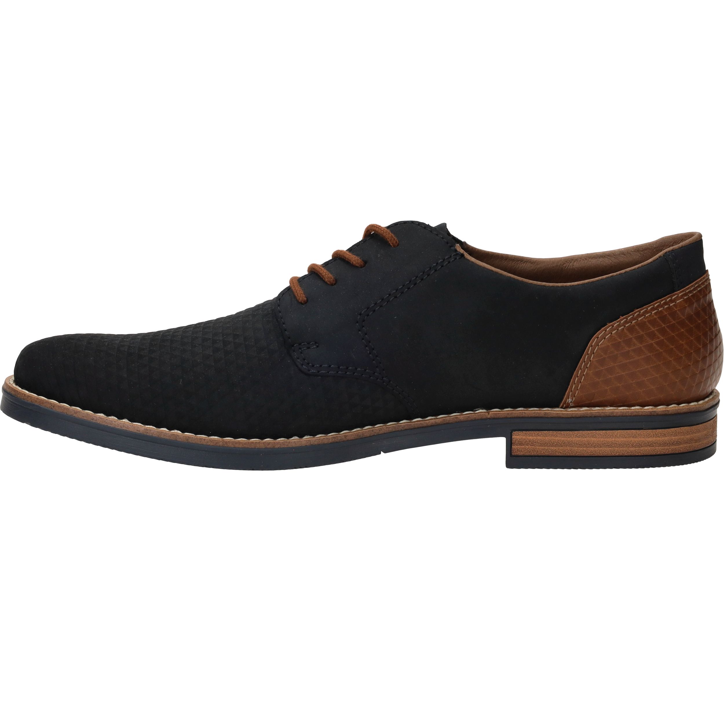 Deze fraaie blauwe Rieker veterschoen draag je het hele jaar door. De mooie cognac accenten maken de schoen helemaal af.