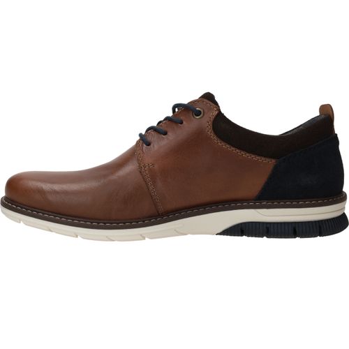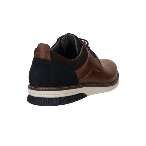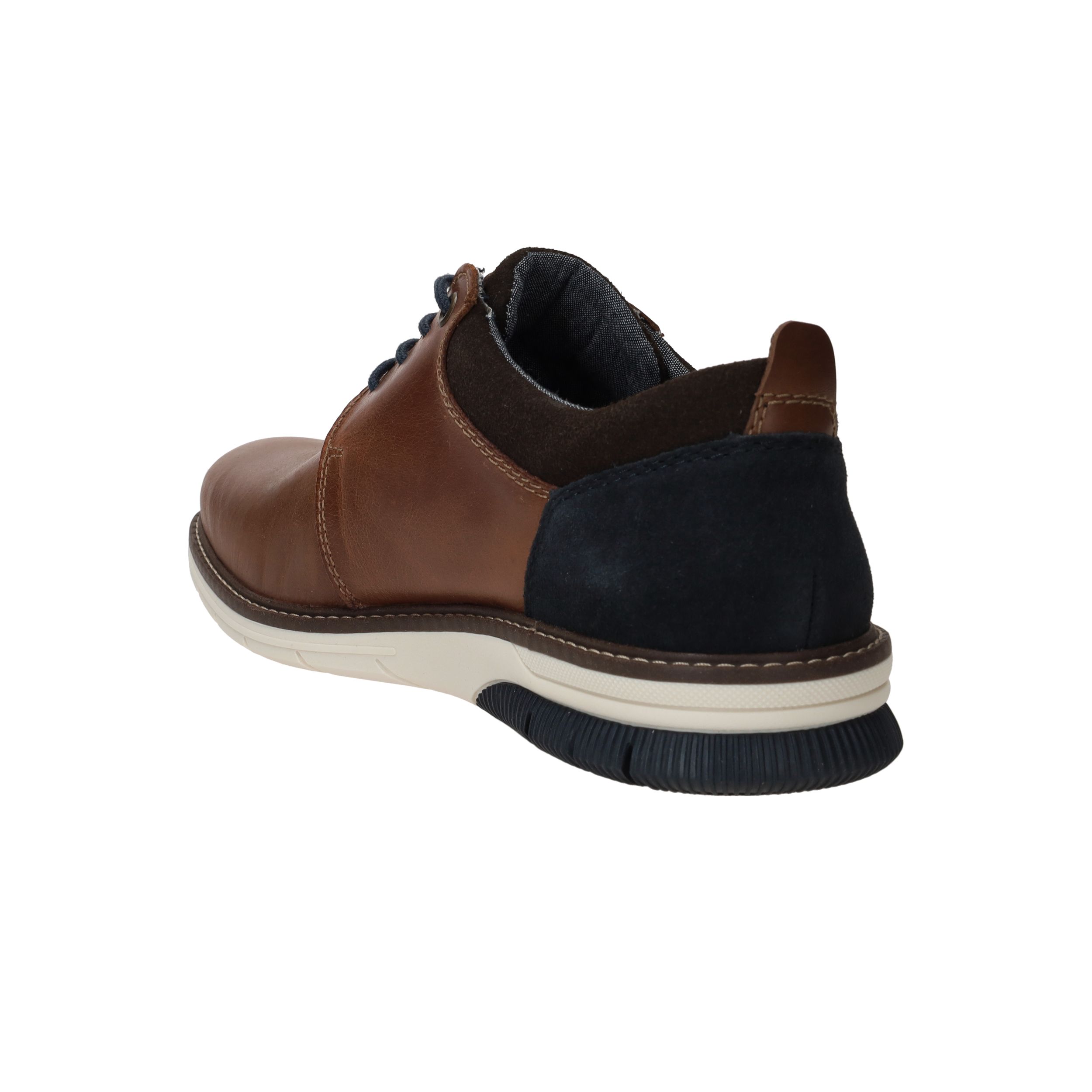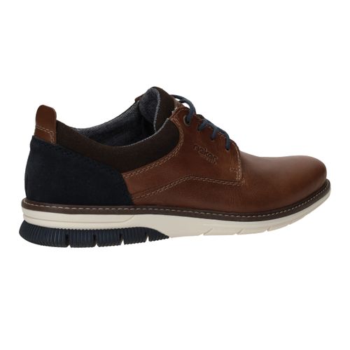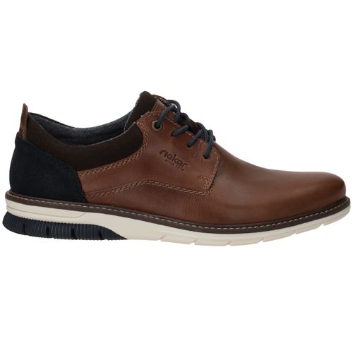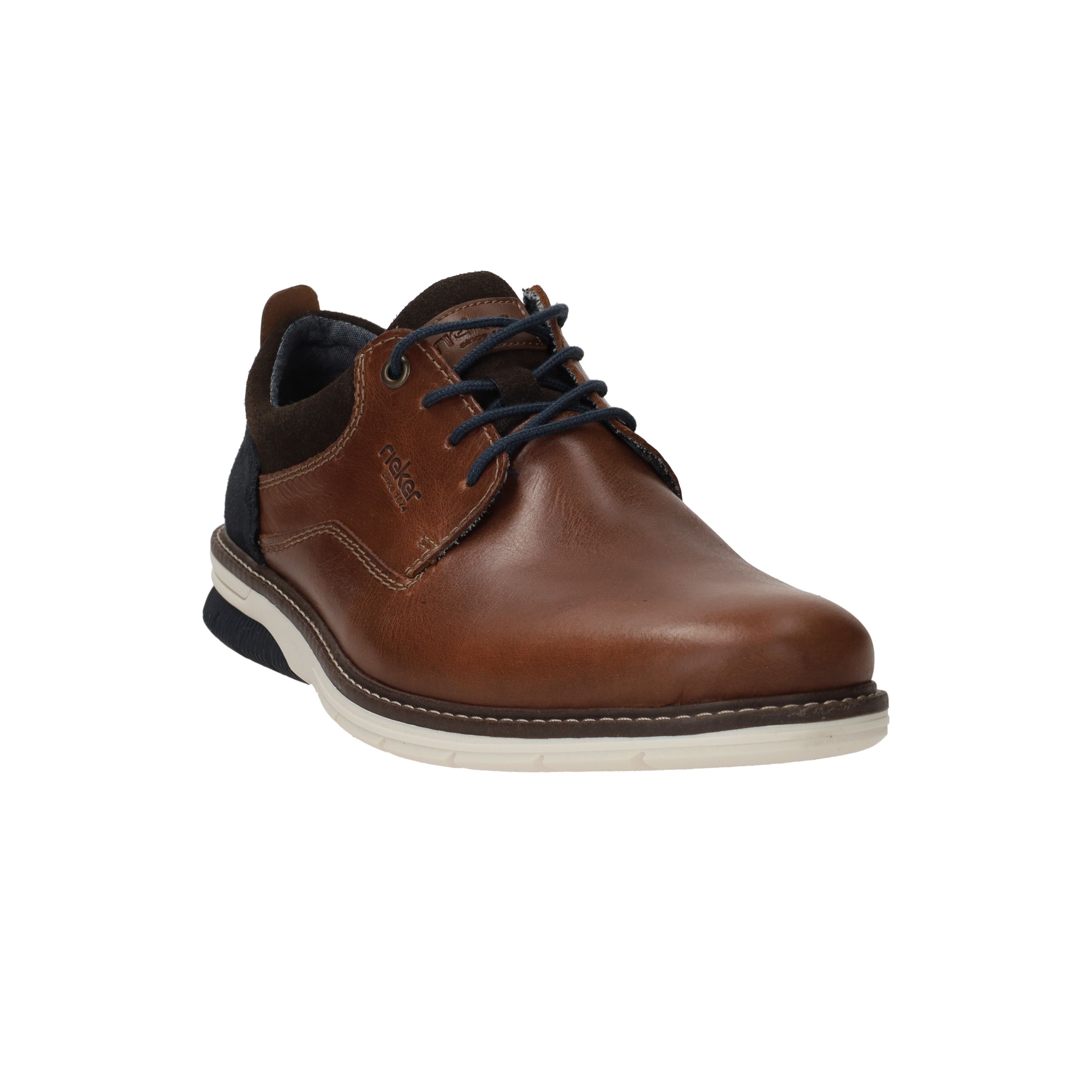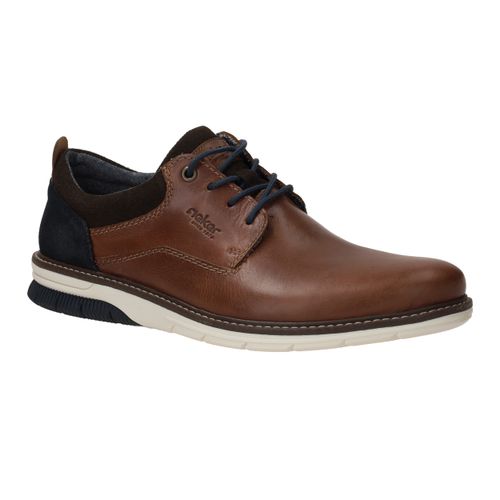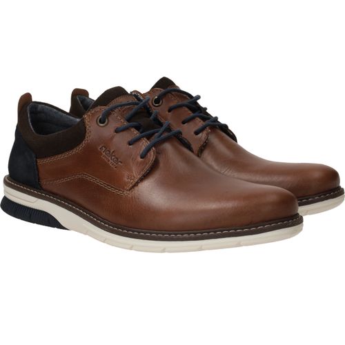 Deze Rieker veterschoen heeft een sportieve look maar is ook heel geschikt om te dragen bij je nette kleding. De schoen heeft een warme bruine kleur en is afgewerkt met blauwe accenten.