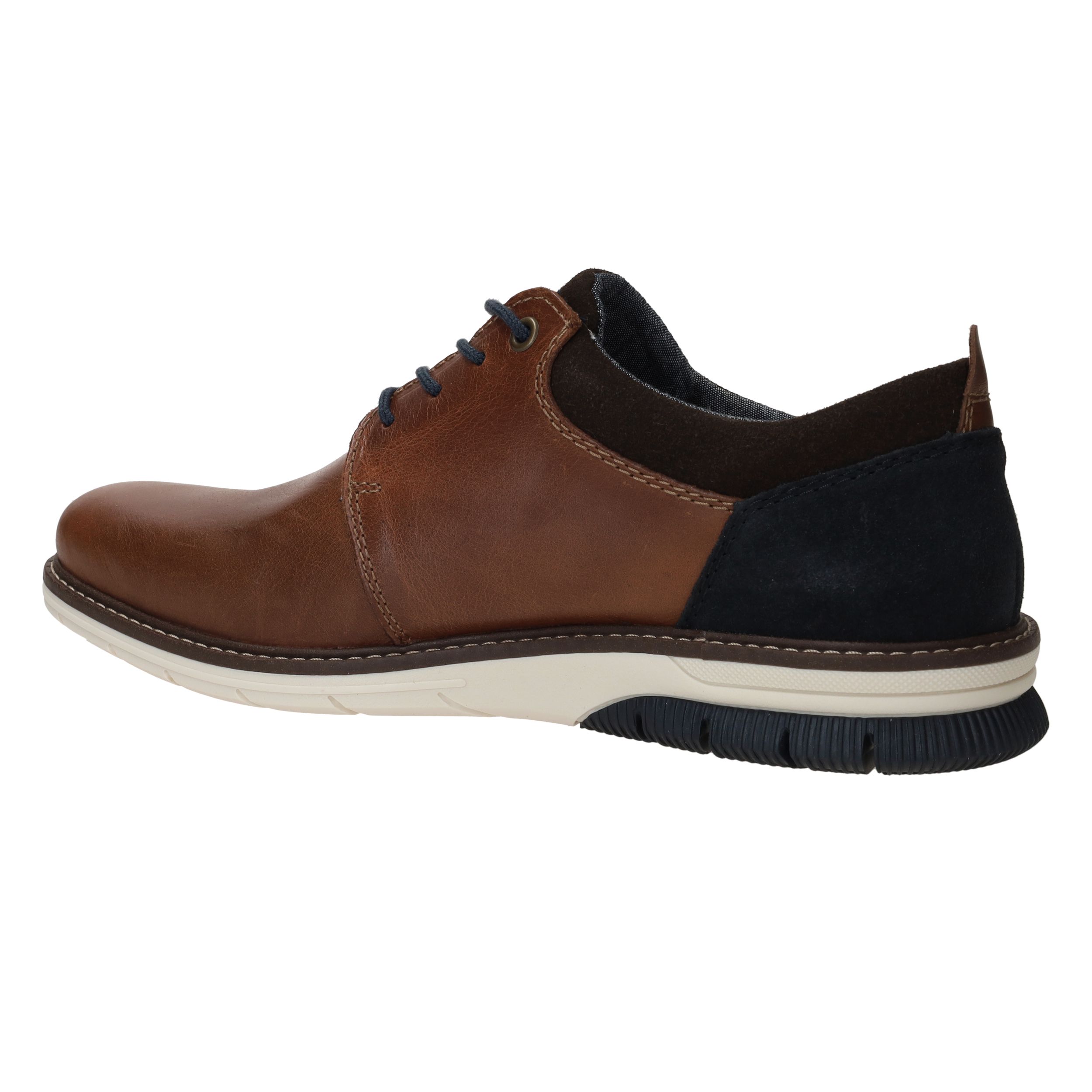 - De veterschoenen zijn gemaakt van een combinatie van leer en kunstsuède.