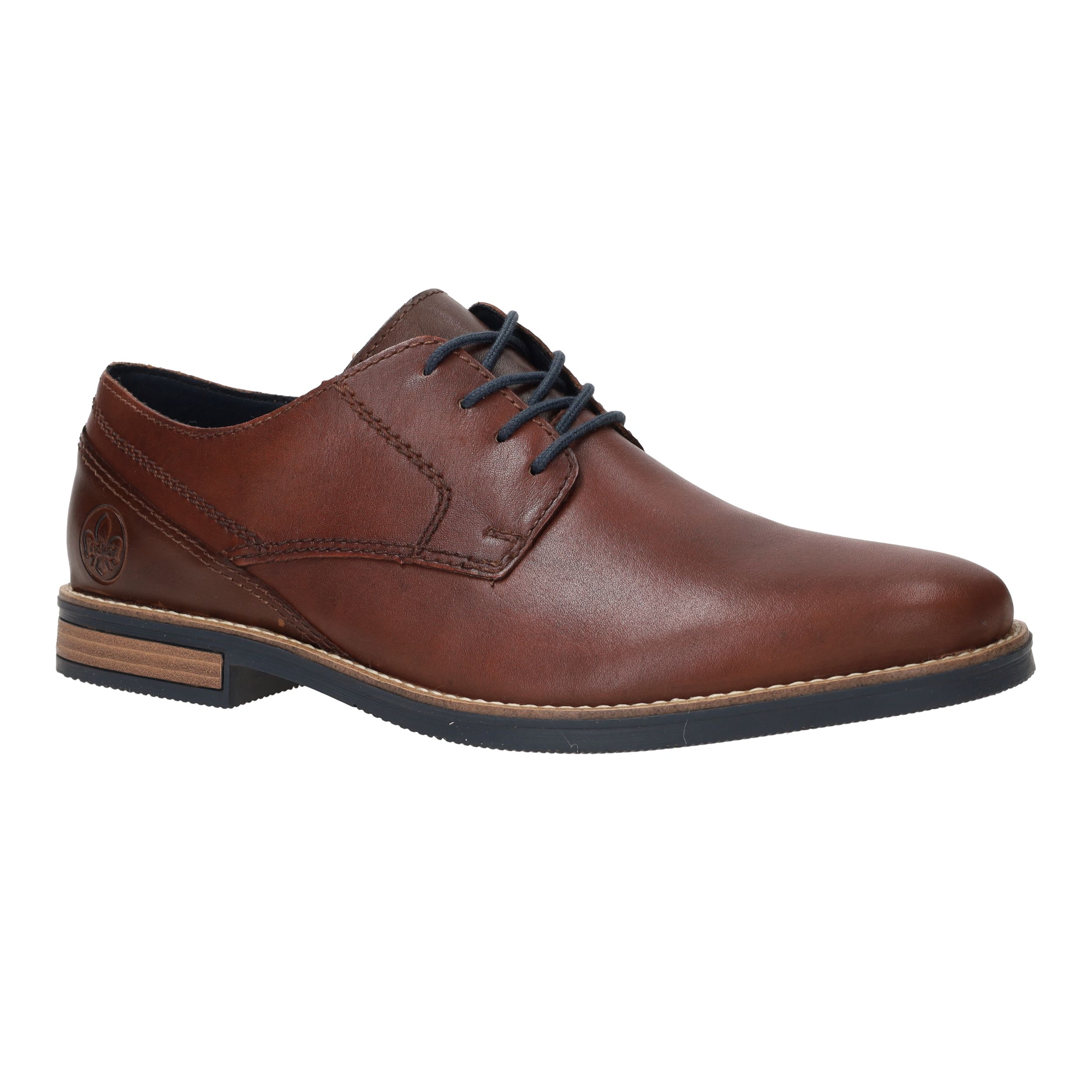 Klassieke leren veterschoen van Rieker. De herenschoen heeft een warme bruine kleur.
