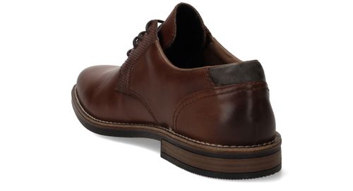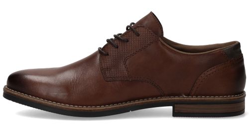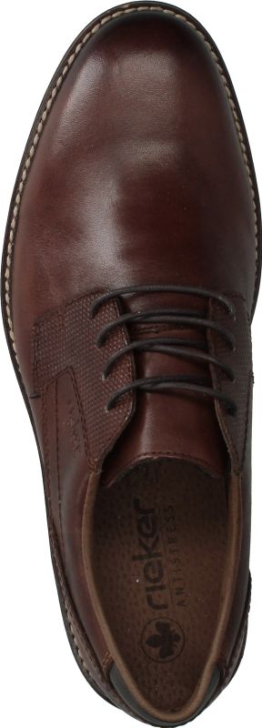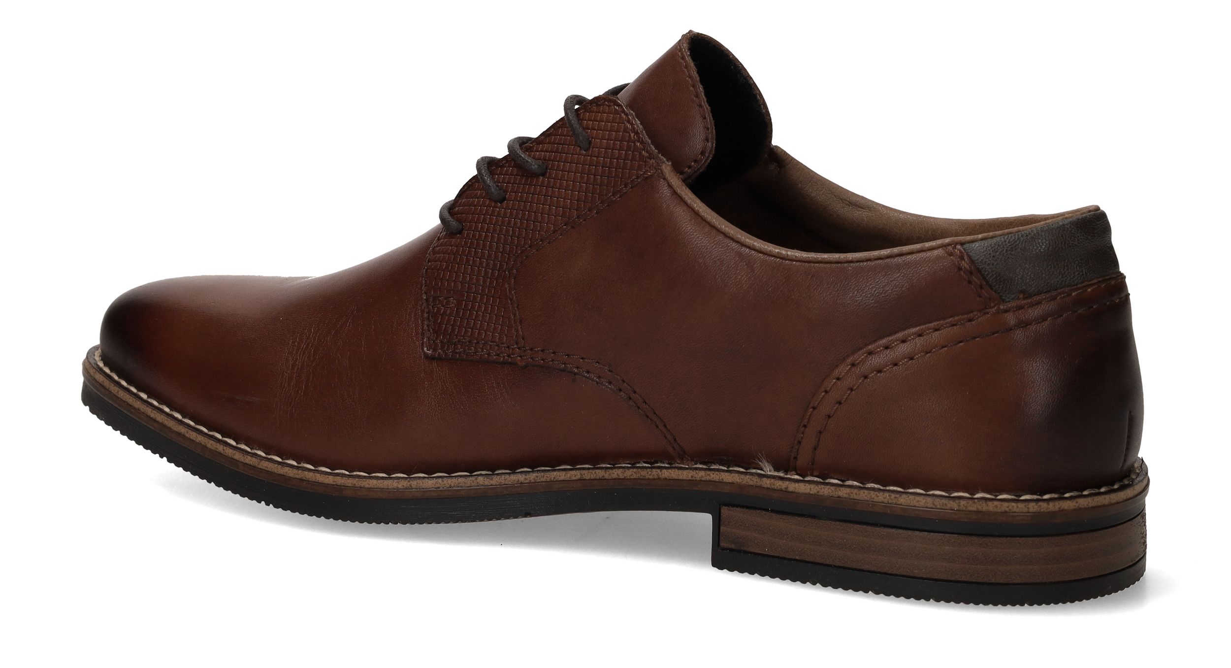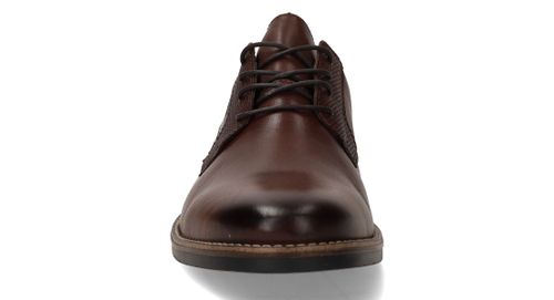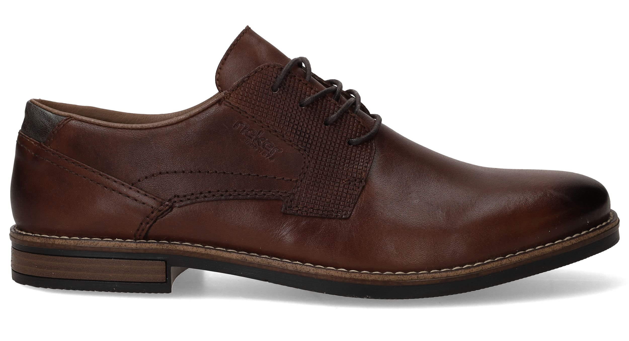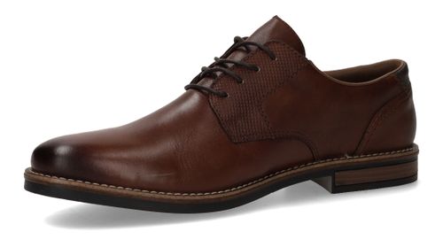 Deze nette veterschoenen van Rieker zijn een stijlvolle keuze voor heren die houden van tijdloos design met een moderne twist. Het hoogwaardige leren bovenwerk geeft de schoen een elegante uitstraling, perfect voor op kantoor of bij een nettere gelegenheid. Dankzij de comfortabele voetbreedte G 1/2 loopt deze schoen prettig, ook bij een wat bredere voet. De cognacbruine kleur zorgt voor een warme, verzorgde look die makkelijk te combineren is.