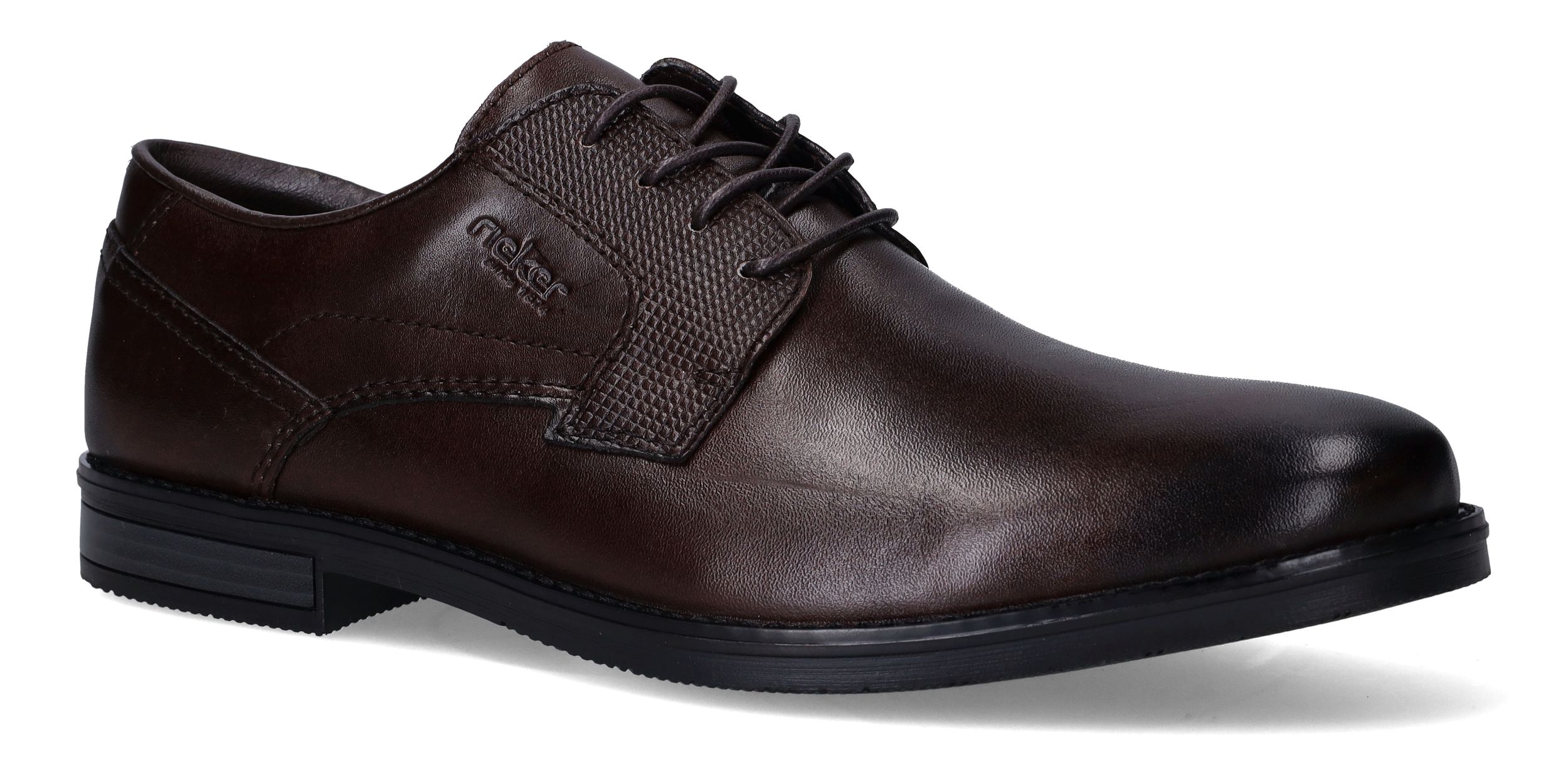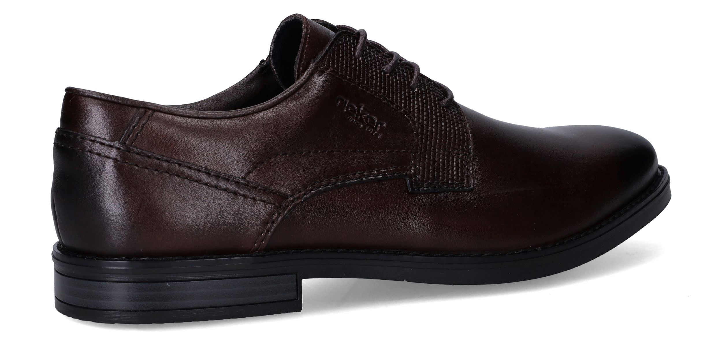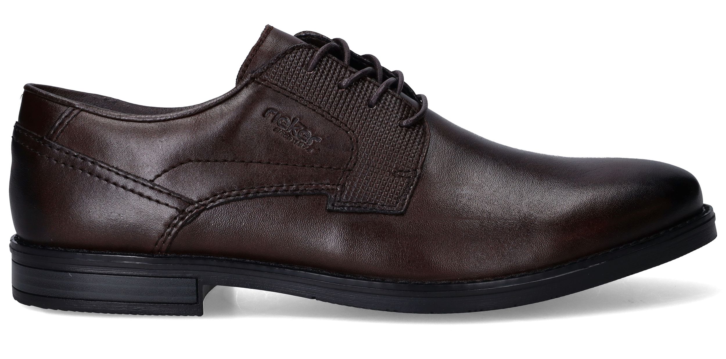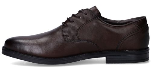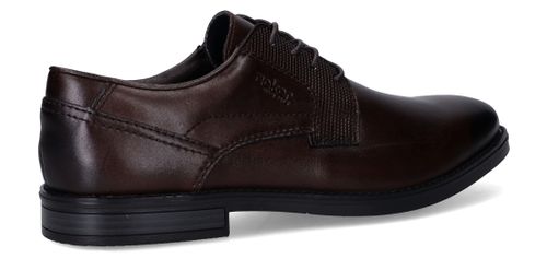 Deze stijlvolle veterschoenen van Rieker combineren een klassieke uitstraling met modern comfort. Het gladde synthetische materiaal en textiel zorgen samen voor een nette, verzorgde look die perfect past bij formele gelegenheden of een zakelijke outfit. Dankzij de voetbreedte G 1/2 geniet je van een comfortabele pasvorm voor normale tot iets bredere voeten. Ideaal voor heren die stijl én gemak zoeken.