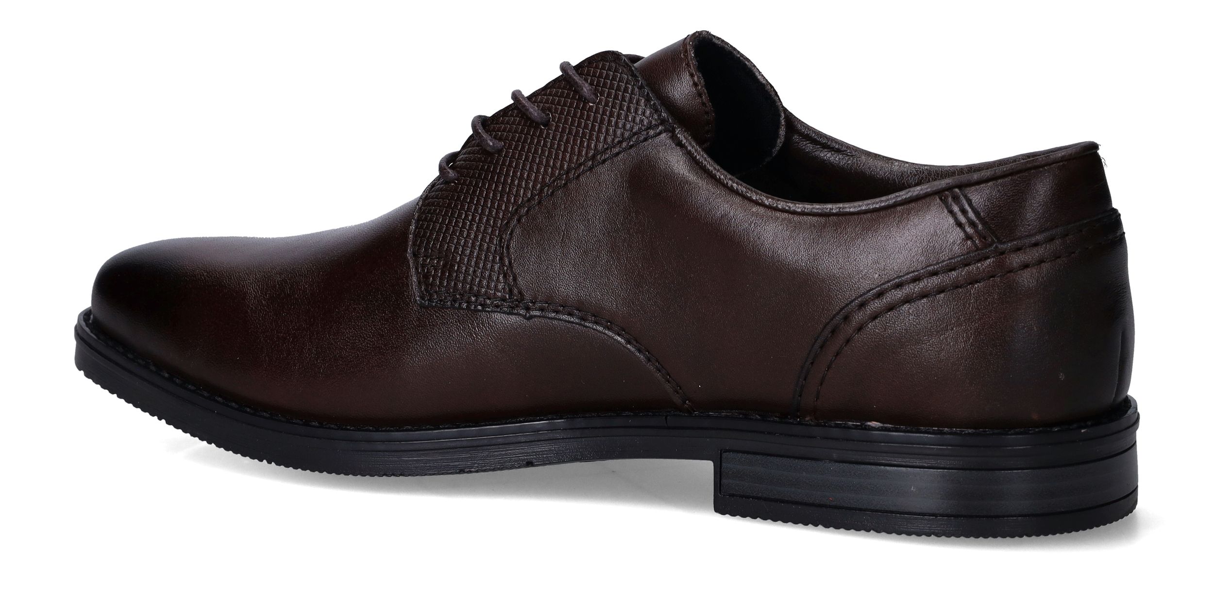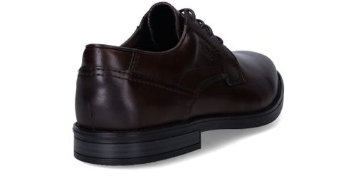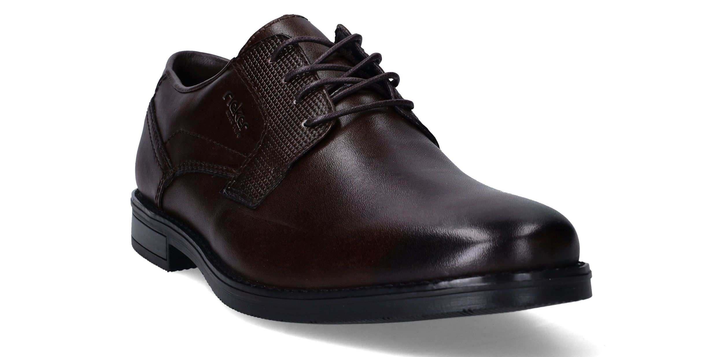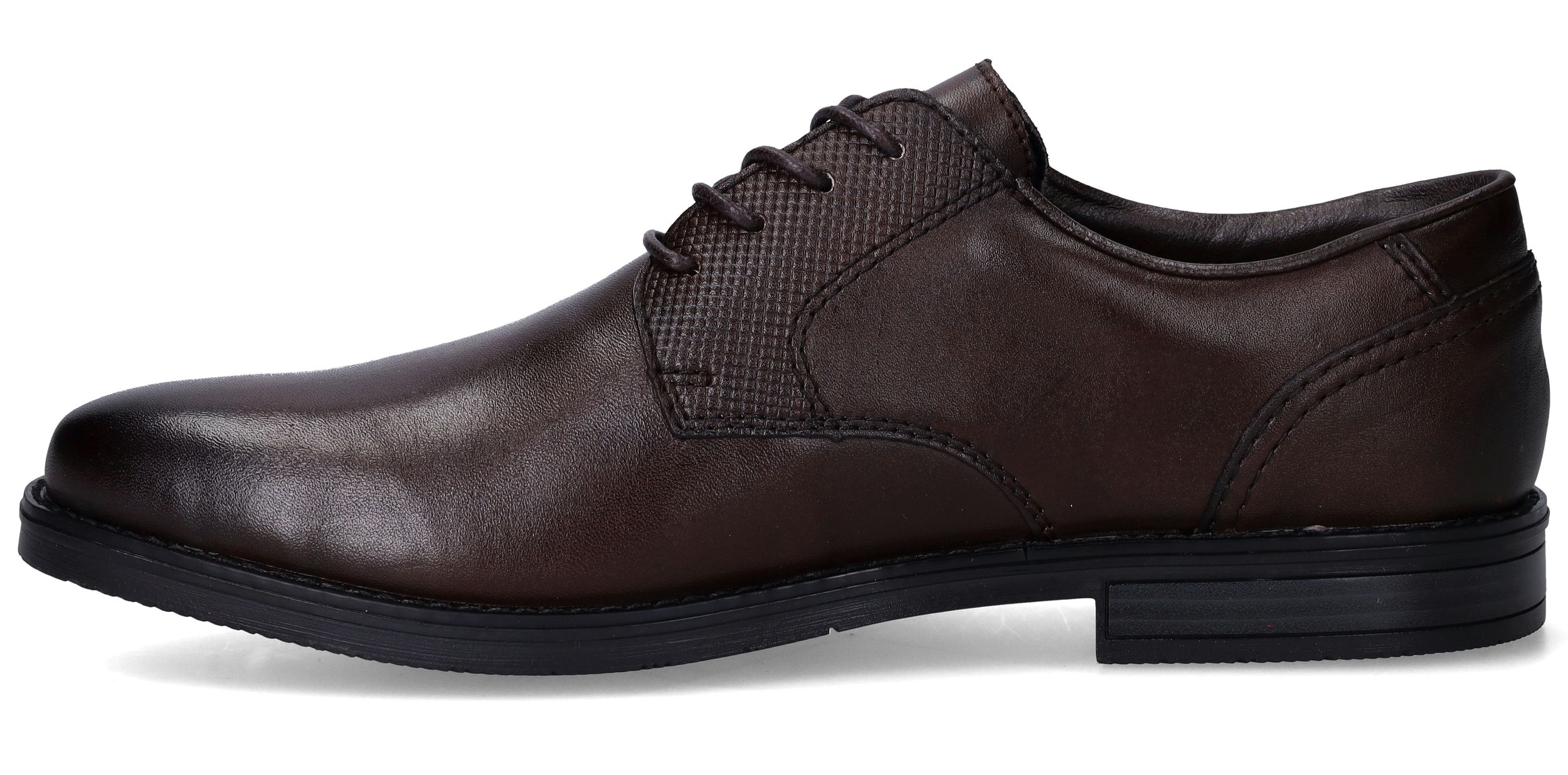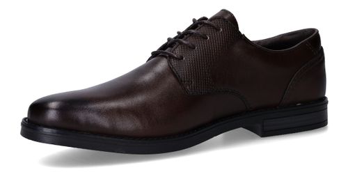 Deze stijlvolle veterschoenen van Rieker combineren een klassieke uitstraling met modern comfort. Het gladde synthetische materiaal en textiel zorgen samen voor een nette, verzorgde look die perfect past bij formele gelegenheden of een zakelijke outfit. Dankzij de voetbreedte G 1/2 geniet je van een comfortabele pasvorm voor normale tot iets bredere voeten. Ideaal voor heren die stijl én gemak zoeken.